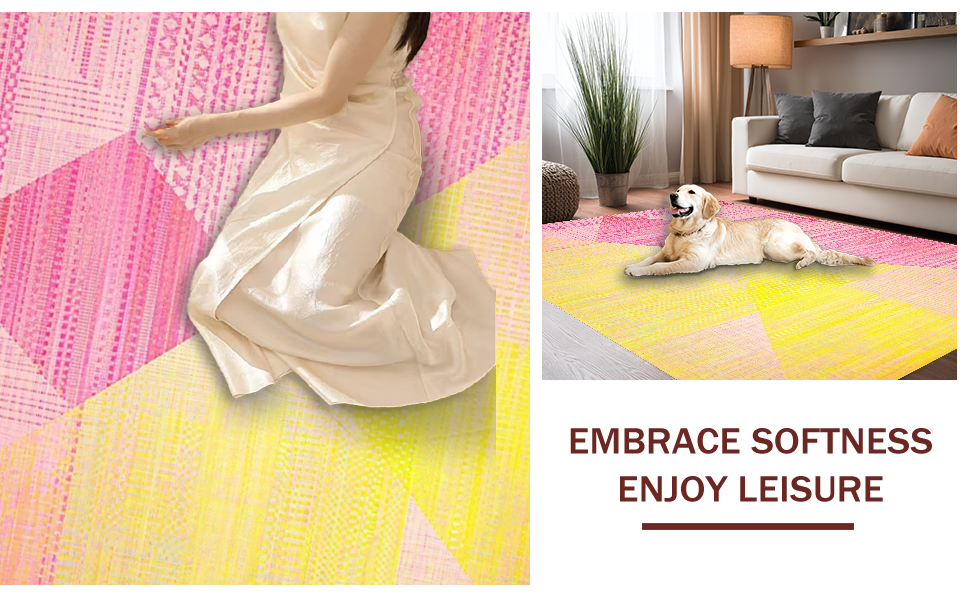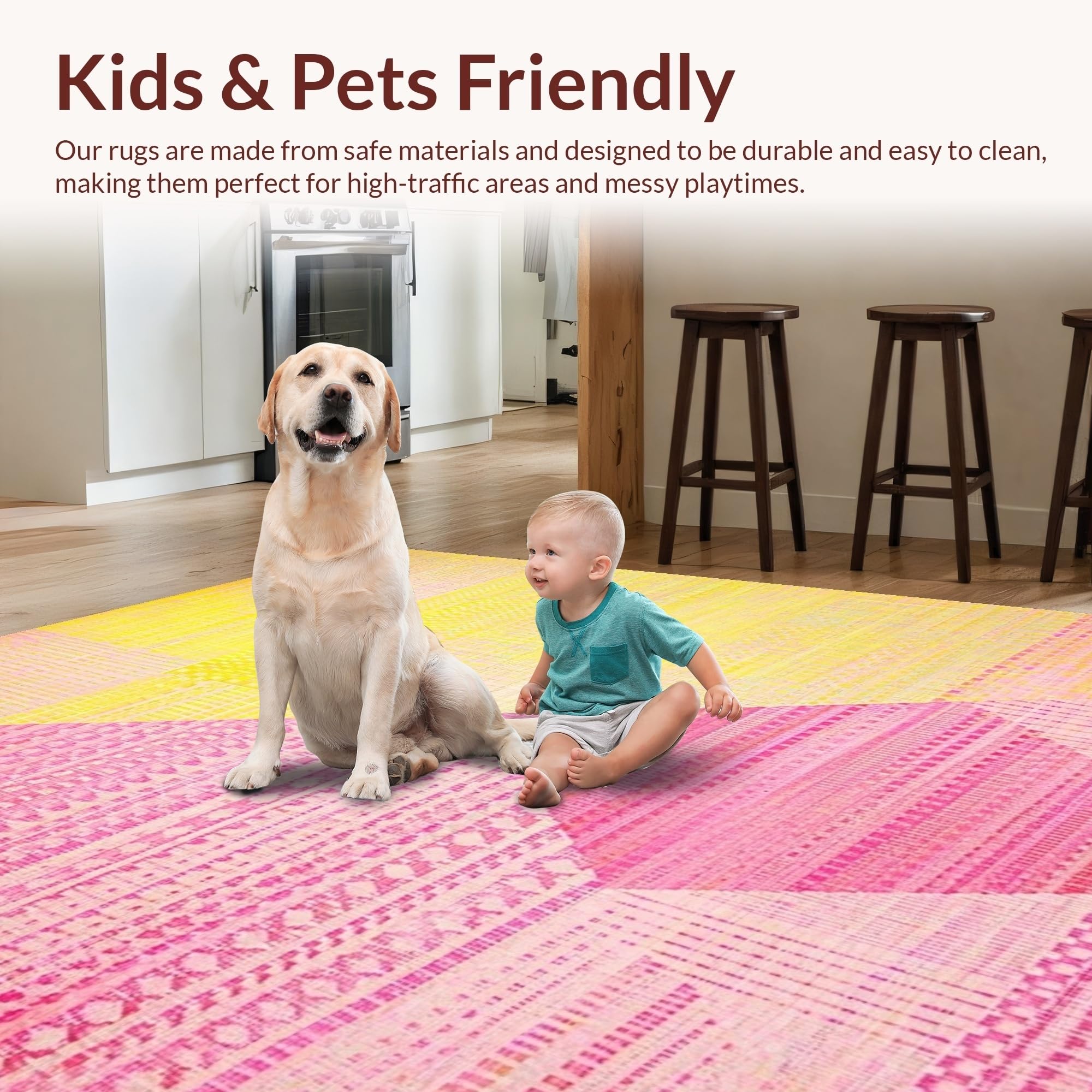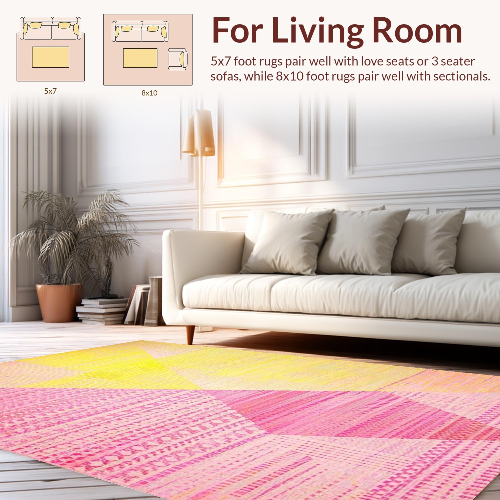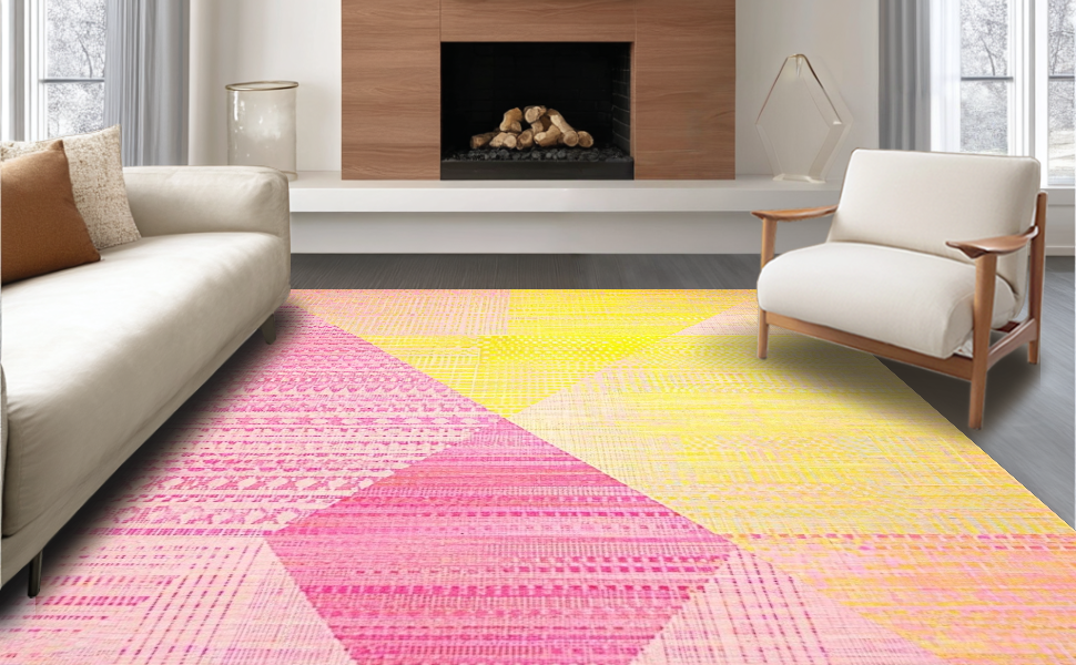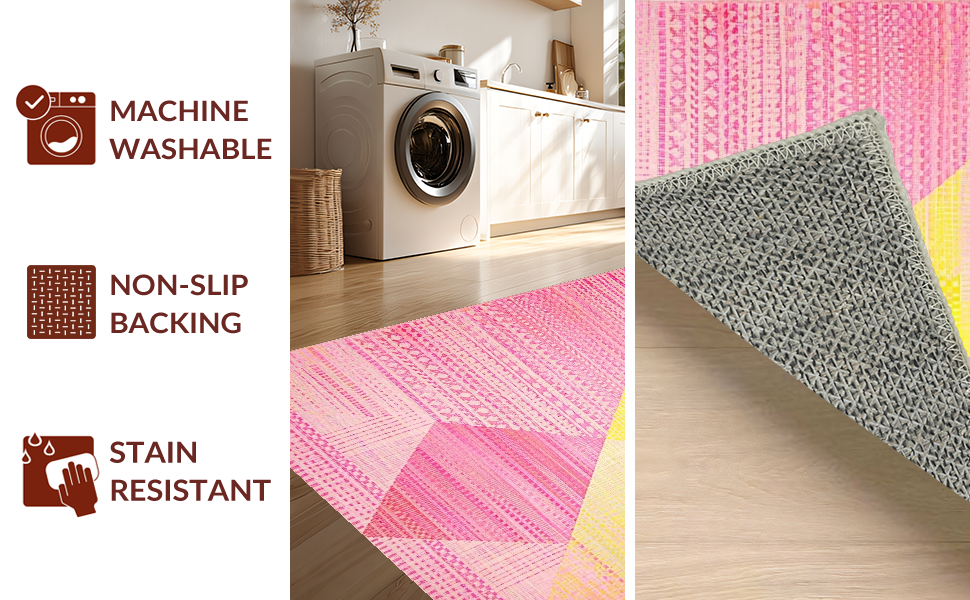 Ultra Soft Area Rug, Non Slip, Stain Resistant, Washable Area Rugs for Living Room, Bedroom, Charming Ombre Diamond Motif(Pink) Overview: