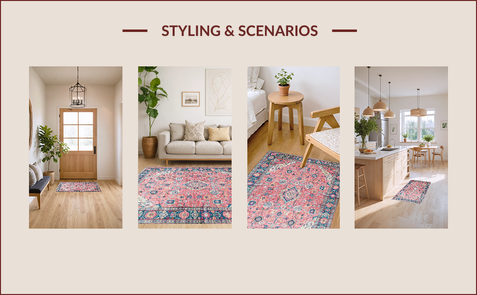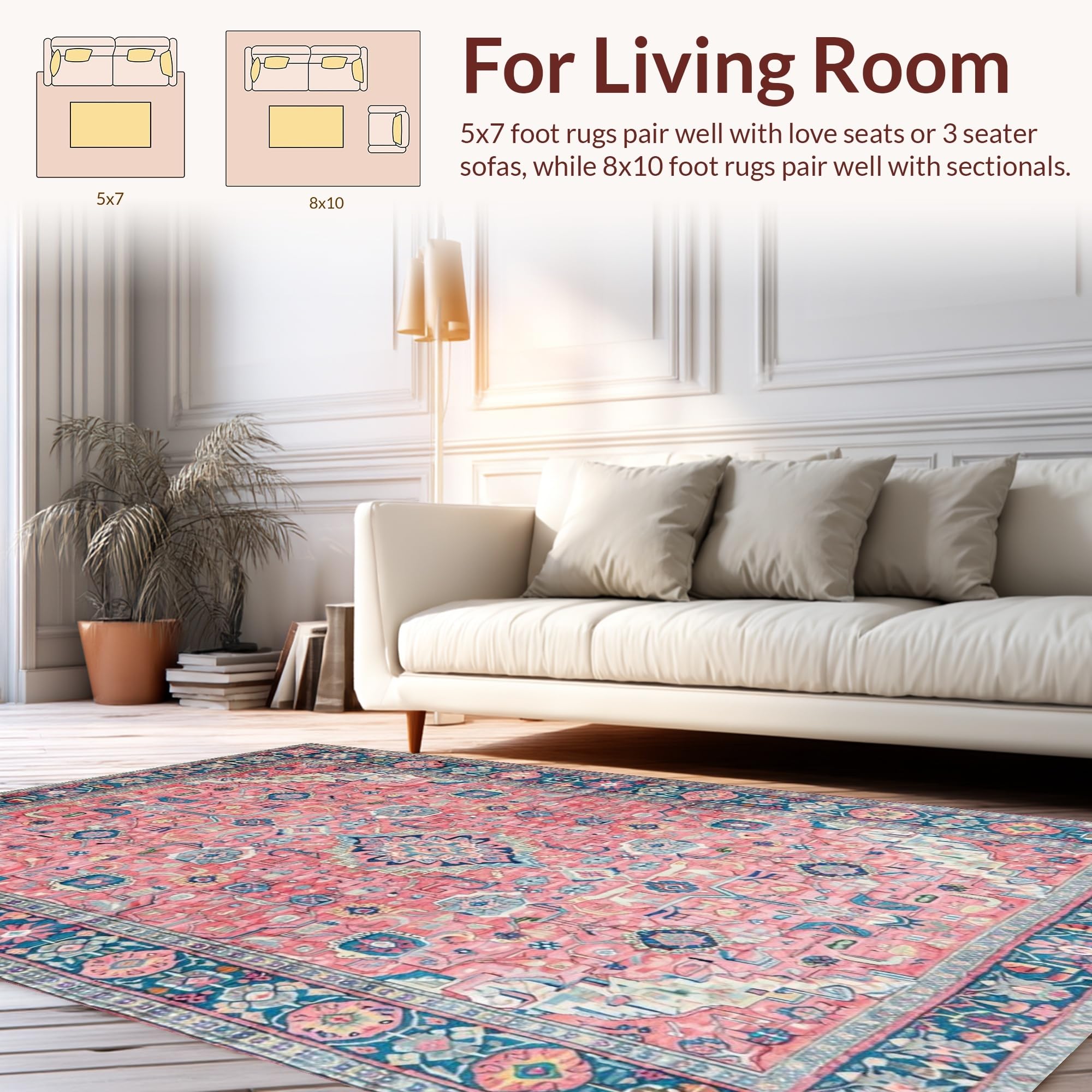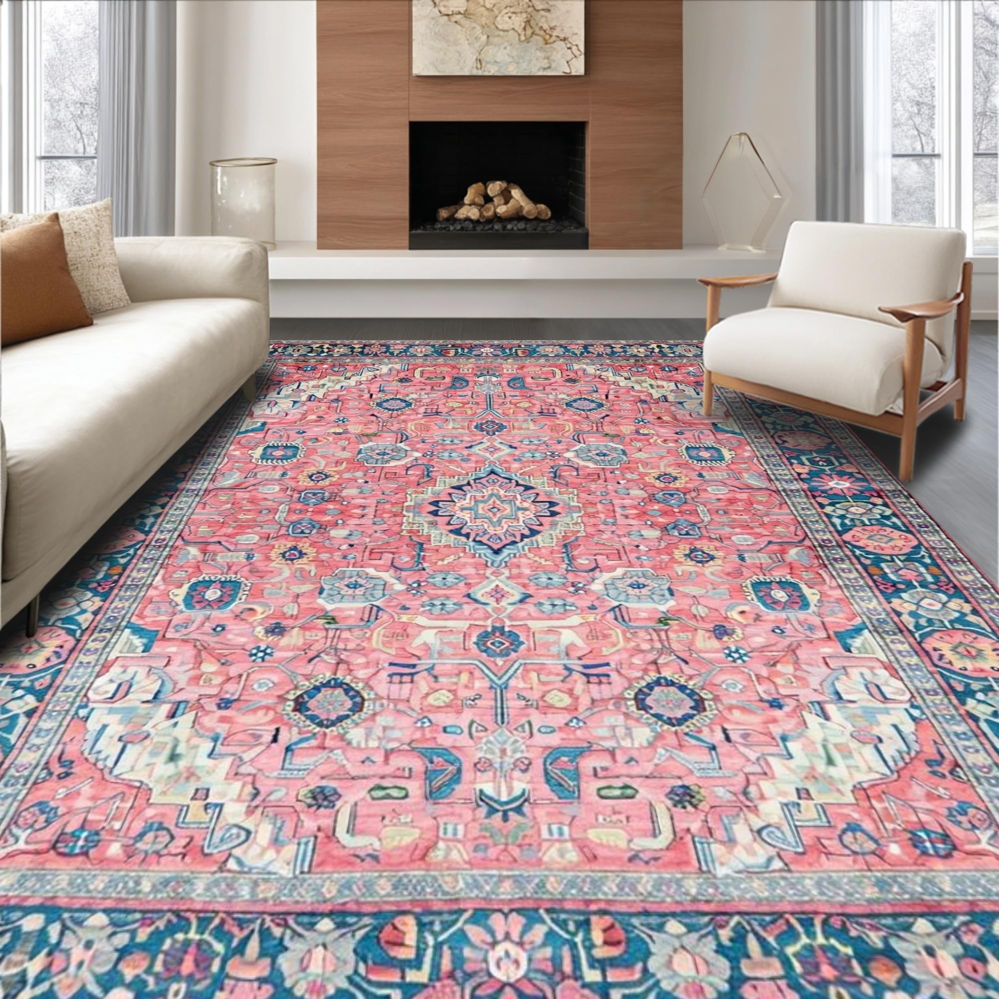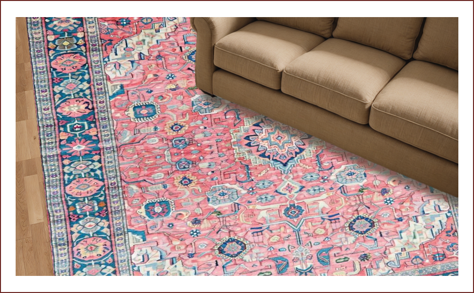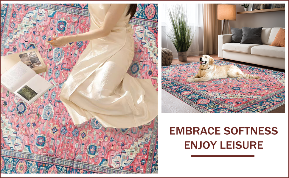 Ultra Soft Area Rug, Non Slip, Stain Resistant, Washable Area Rugs for Living Room, Bedroom, Charming Pastel Floral Motif(Pink) Overview: