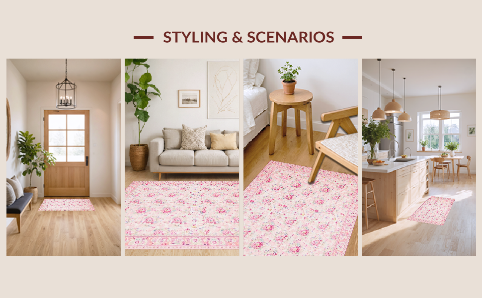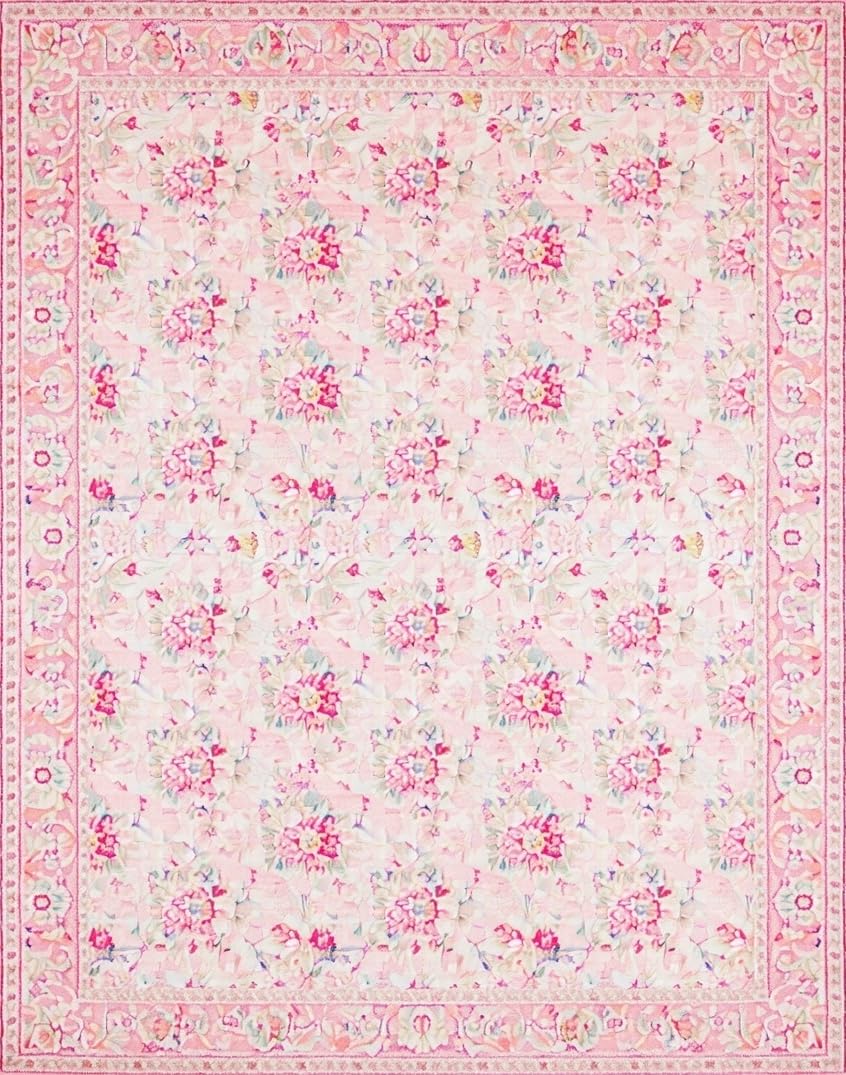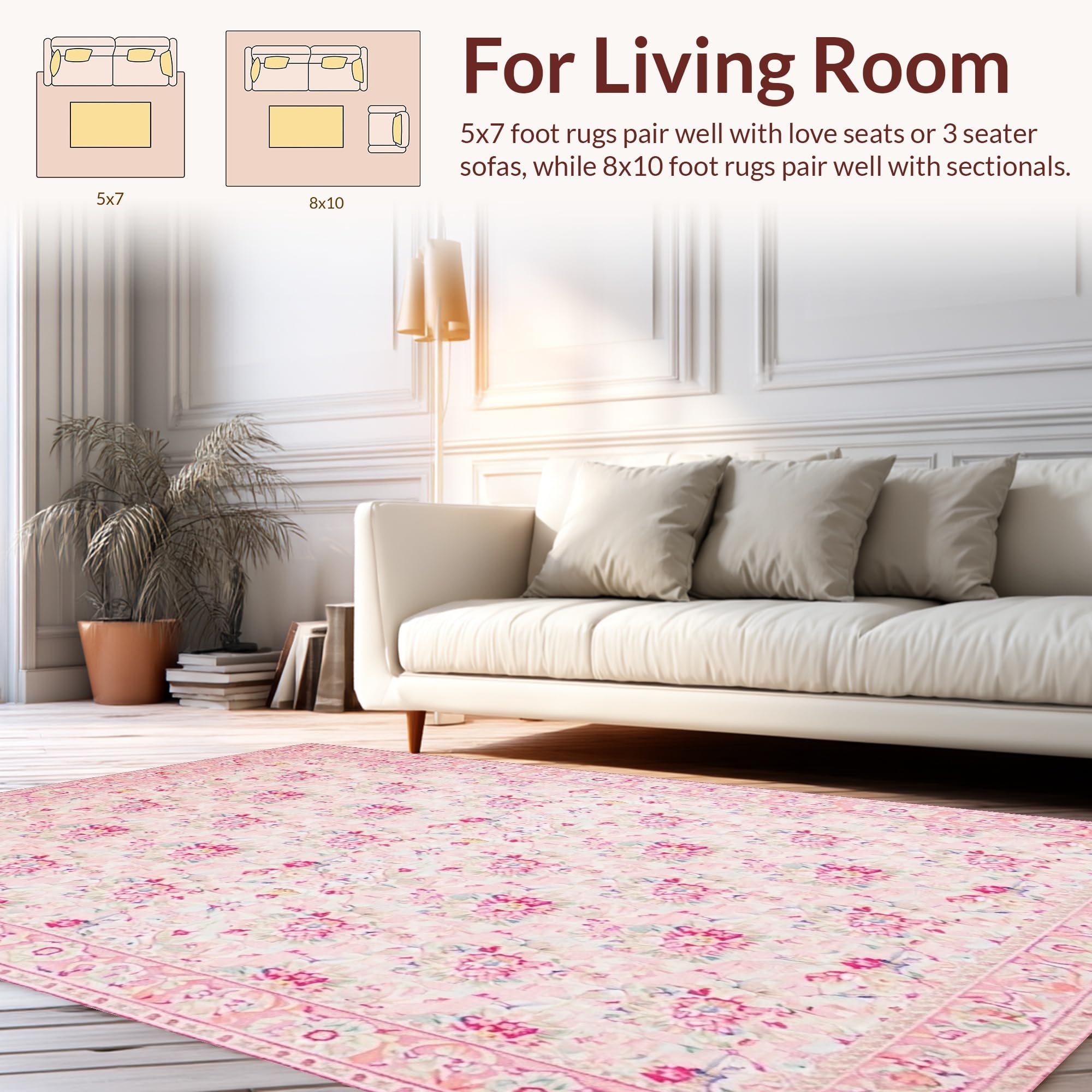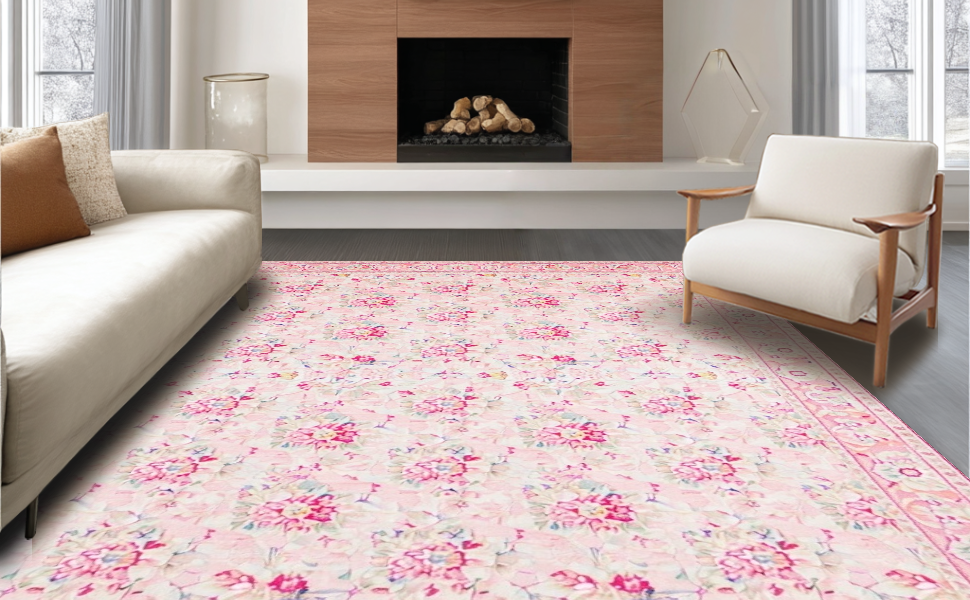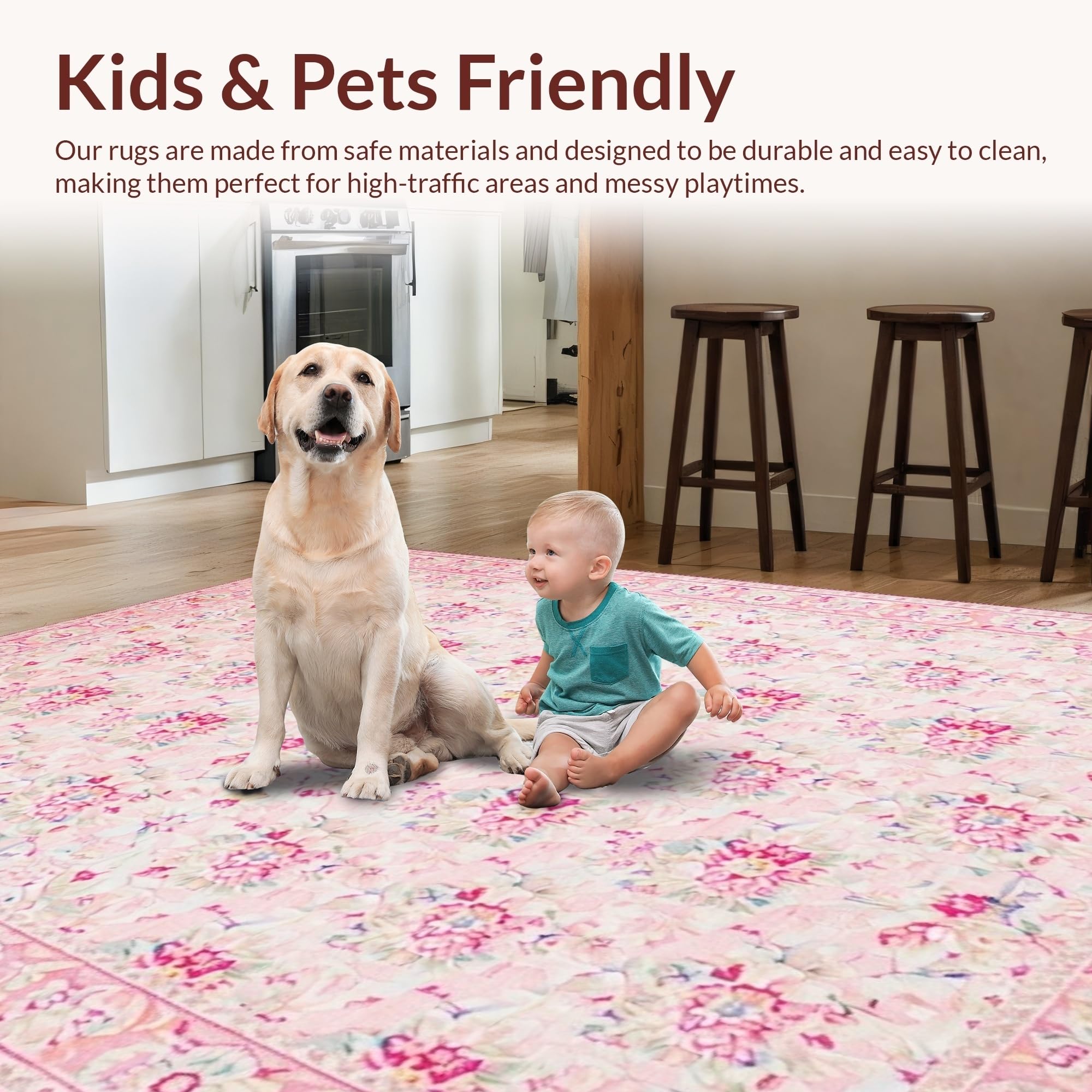 Ultra Soft Area Rug, Non Slip, Stain Resistant, Washable Area Rugs for Living Room, Bedroom, Charming Pastel Striped Aesthetic(Pink) Overview: