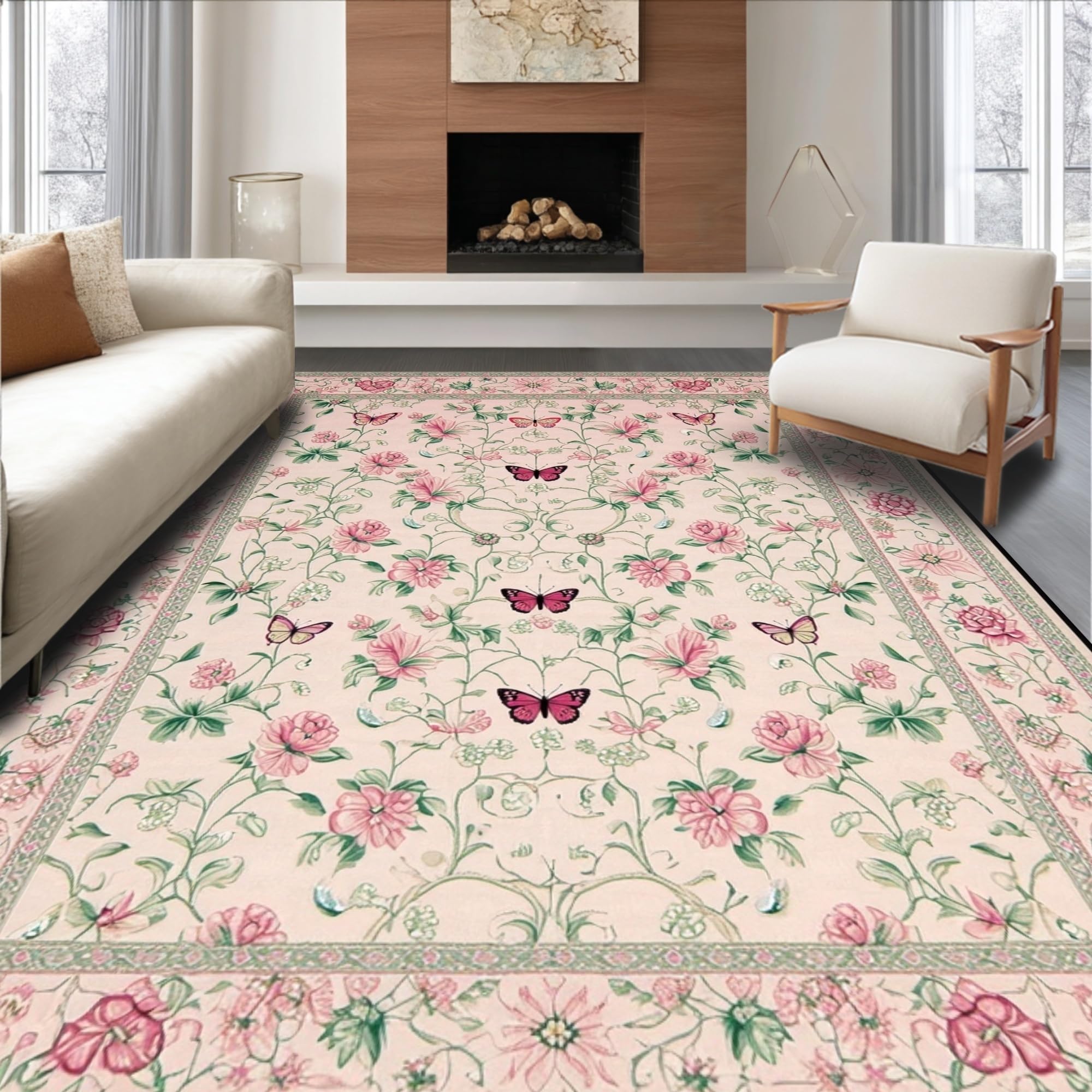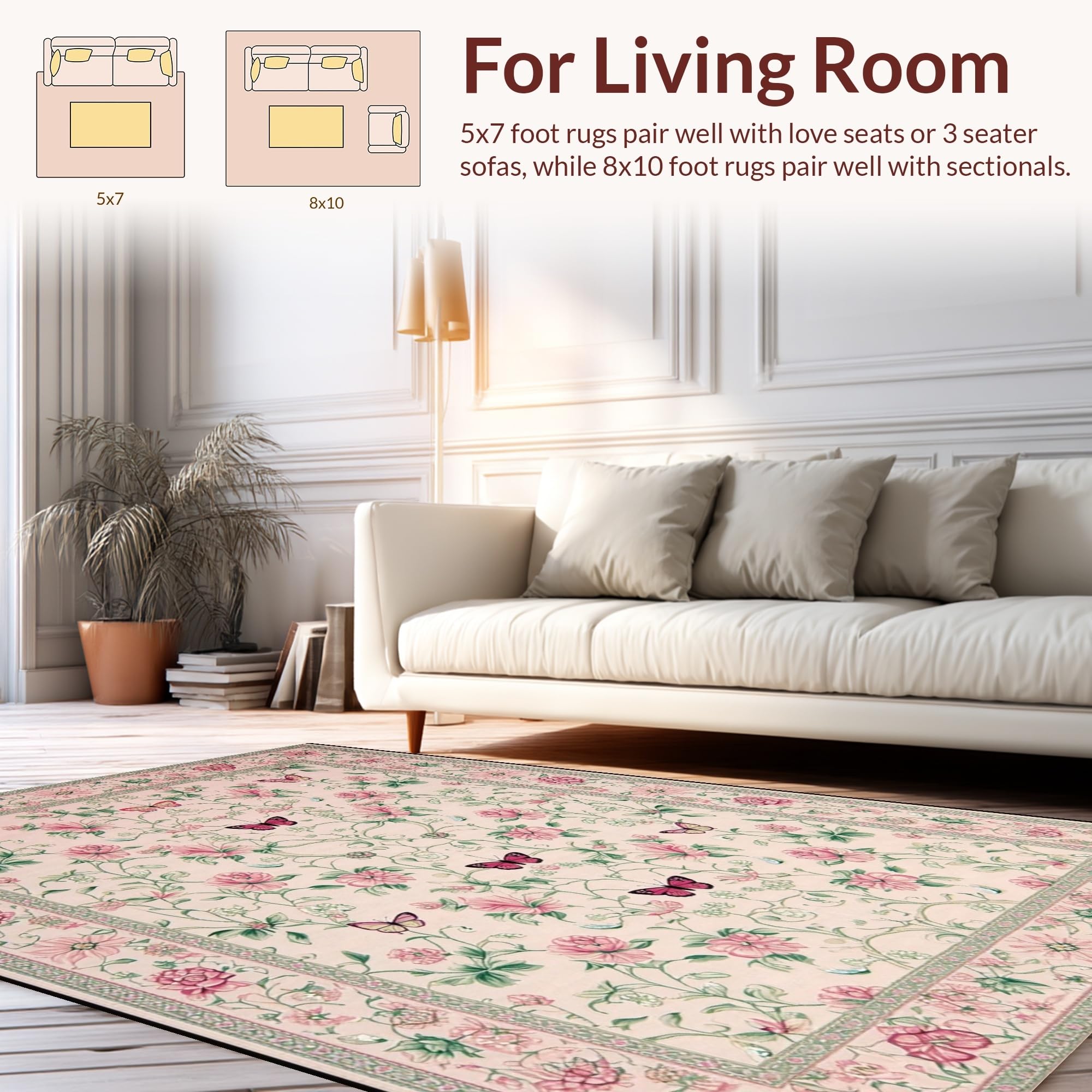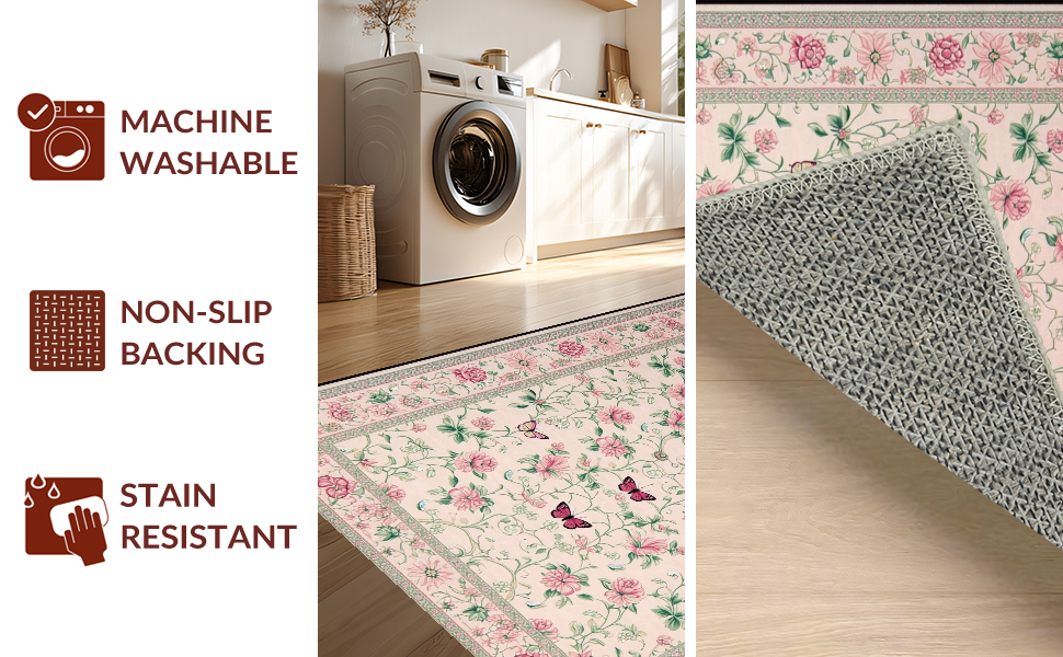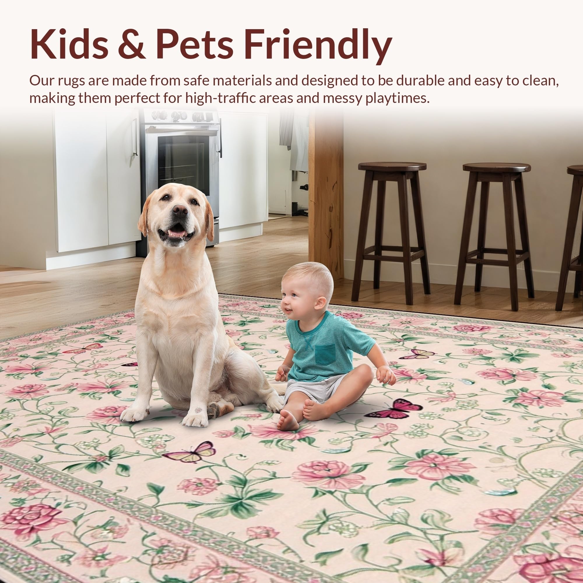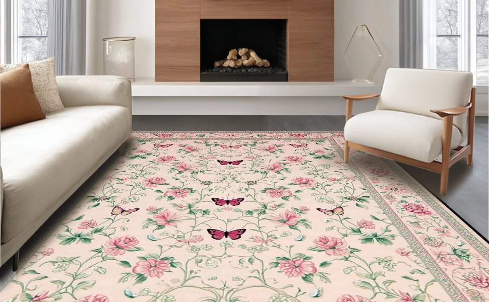 Ultra Soft Area Rug, Non Slip, Stain Resistant, Washable Area Rugs for Living Room, Bedroom, Charming Pink Floral Whirl Patterns(Pink) Overview: