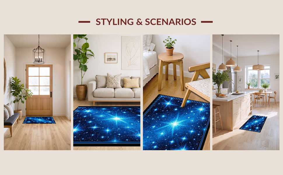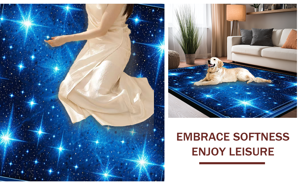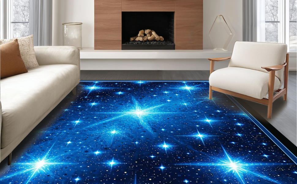 Ultra Soft Area Rug, Non Slip, Stain Resistant, Washable Area Rugs for Living Room, Bedroom, Charming Radiant 3D Starburst Design(Blue) Overview: