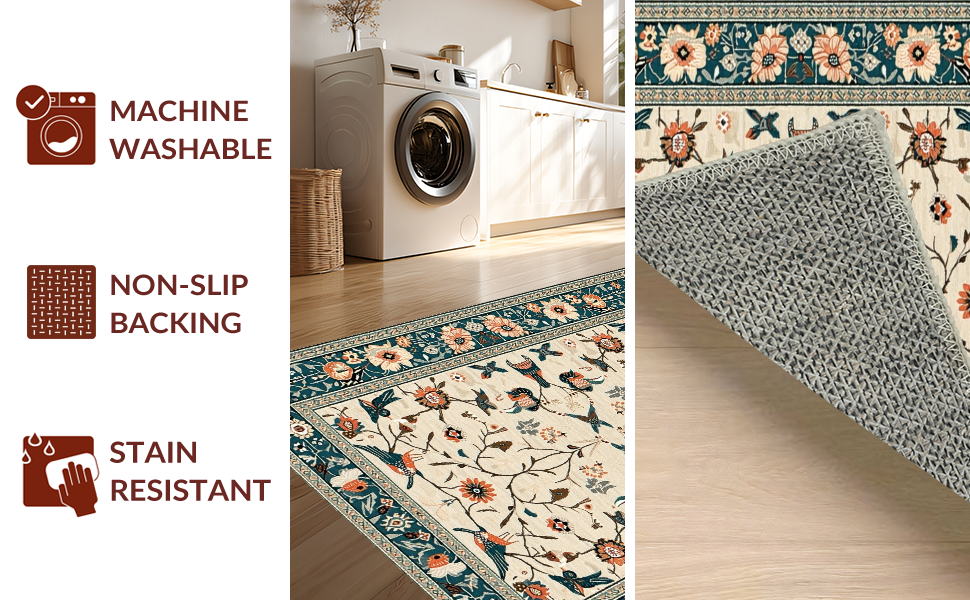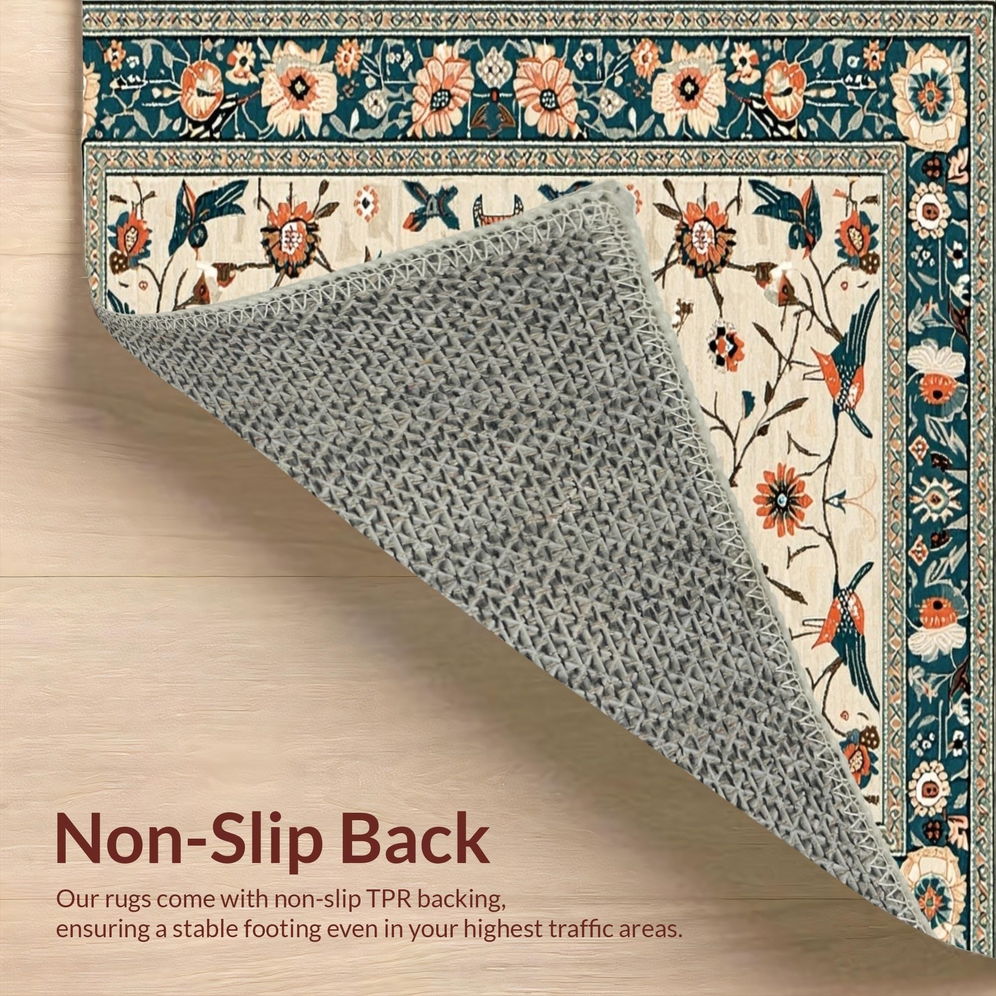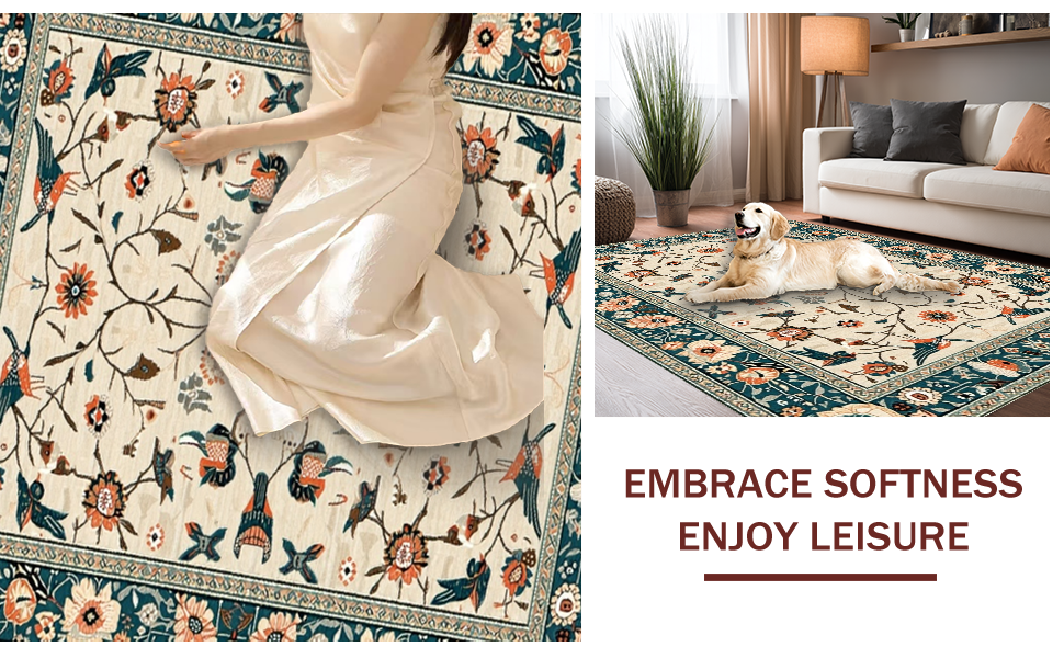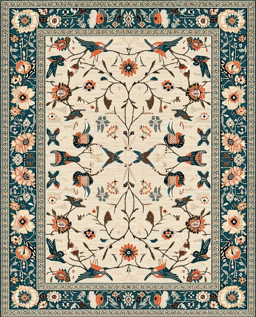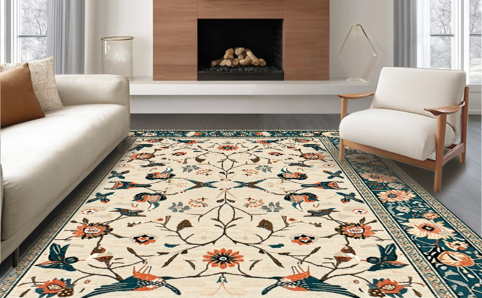 Ultra Soft Area Rug, Non Slip, Stain Resistant, Washable Area Rugs for Living Room, Bedroom, Charming Rustic Bird Motif(Beige) Overview:
