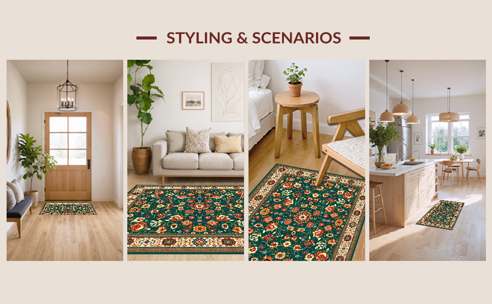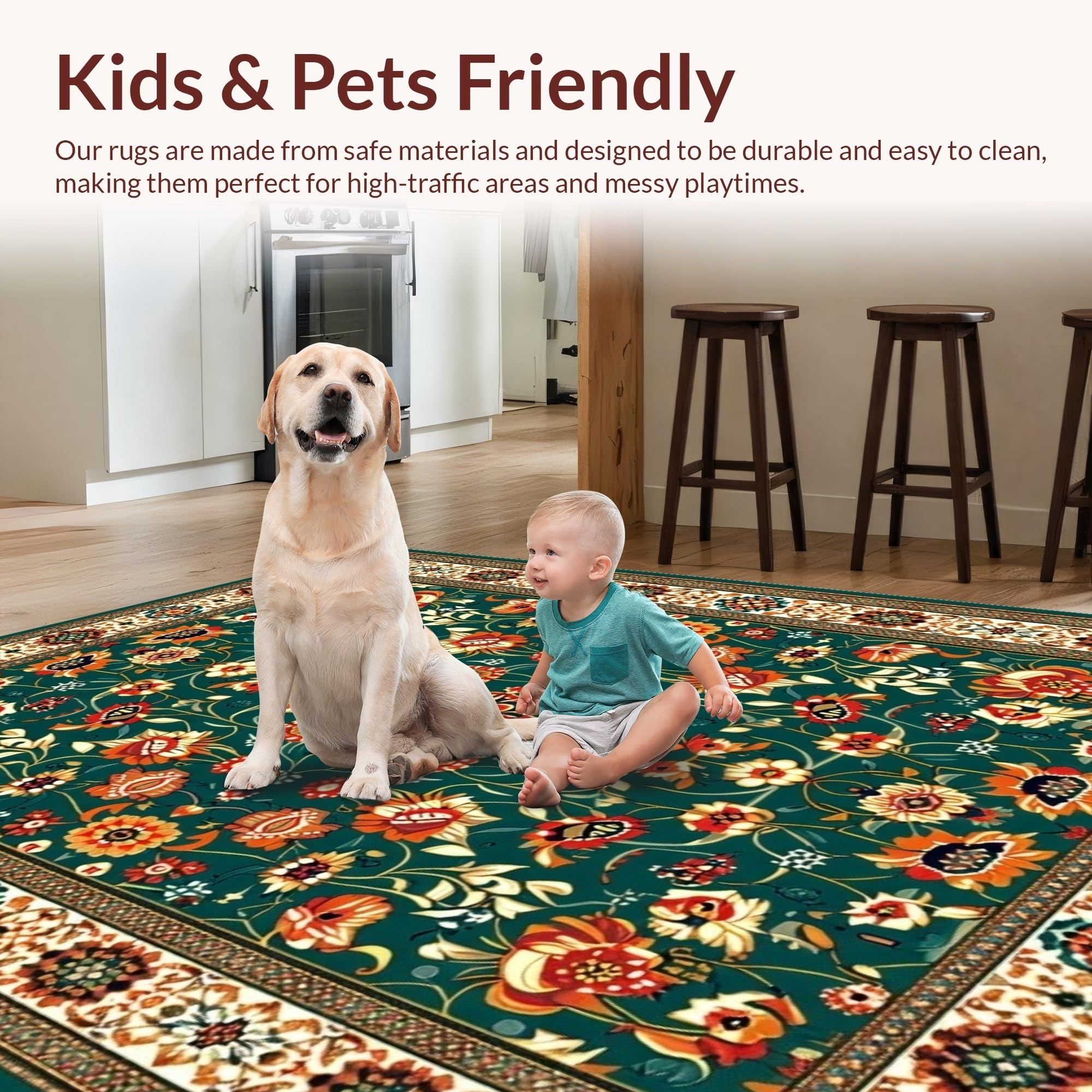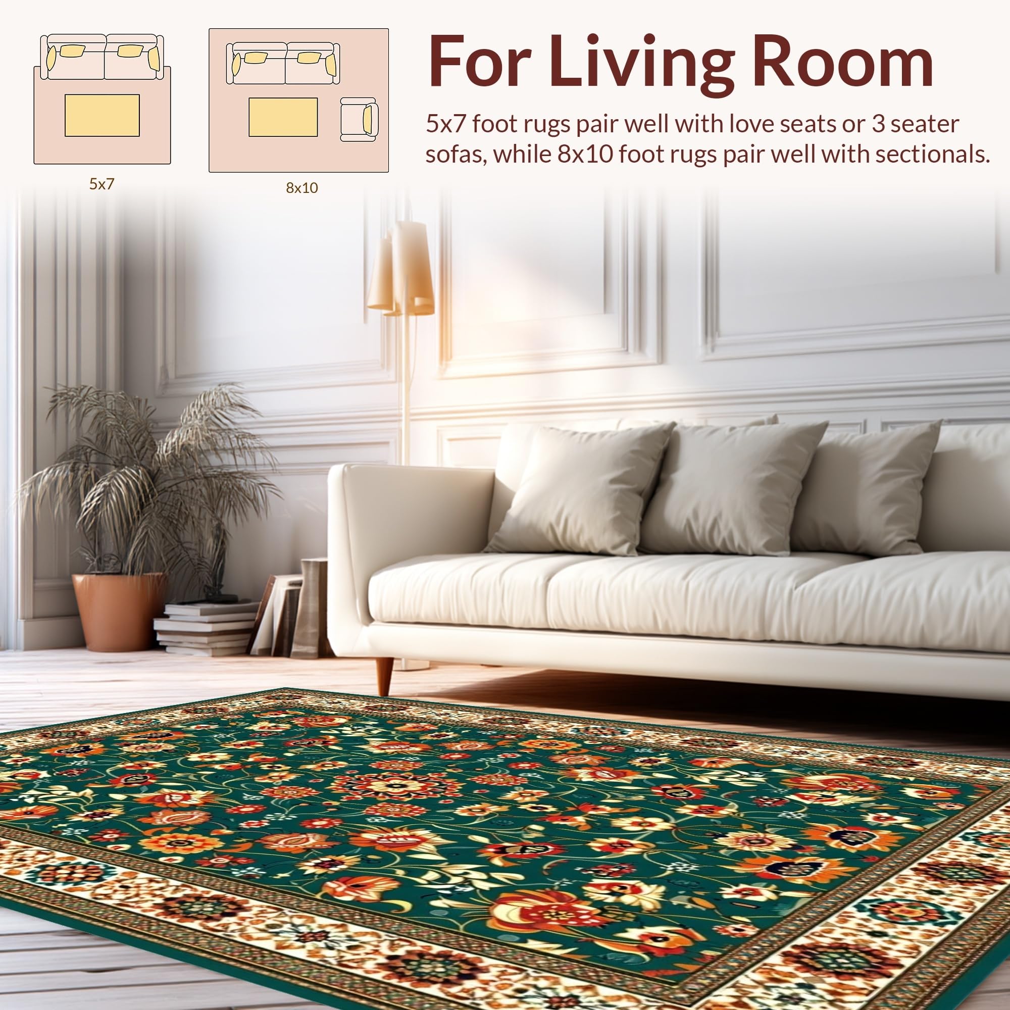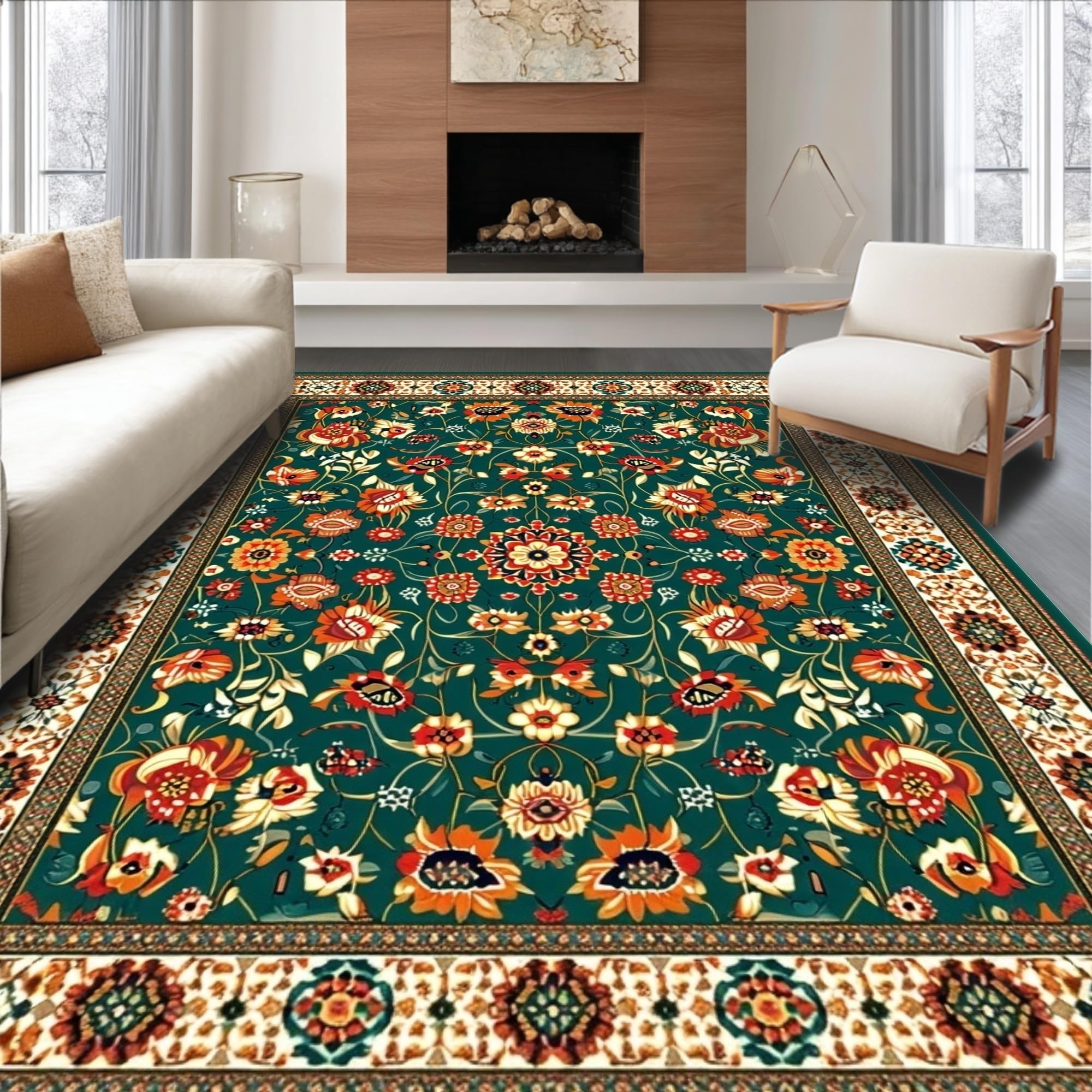 Ultra Soft Area Rug, Non Slip, Stain Resistant, Washable Area Rugs for Living Room, Bedroom, Charming Rustic Floral Tapestry(Green) Overview: