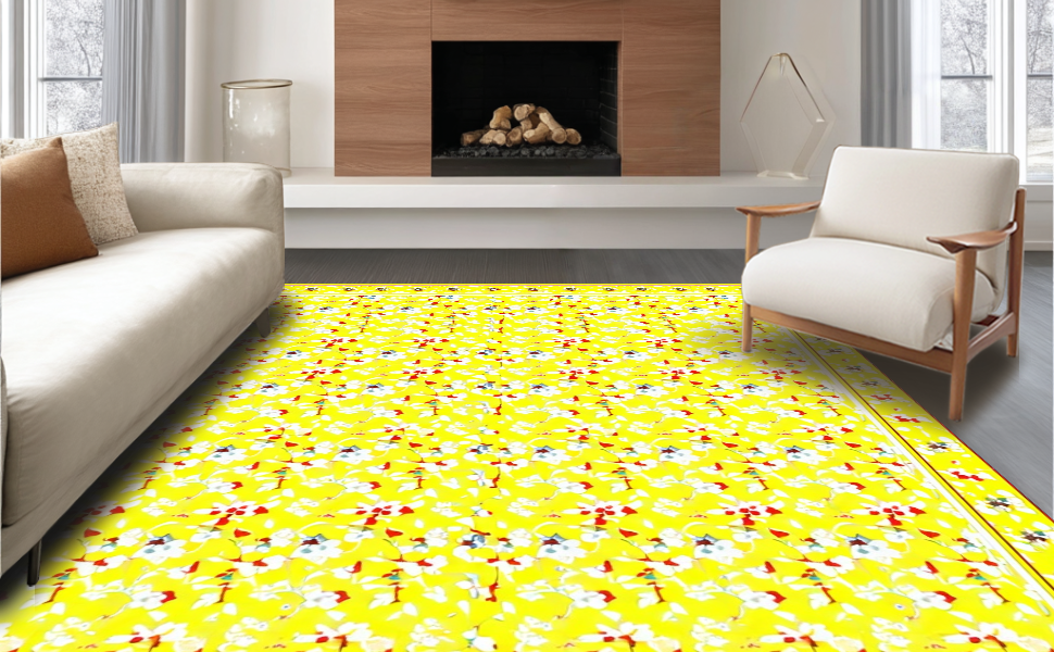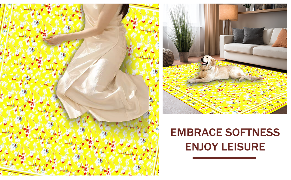 Ultra Soft Area Rug, Non Slip, Stain Resistant, Washable Area Rugs for Living Room, Bedroom, Charming Rustic Spring Garden Motif(Yellow) Overview: