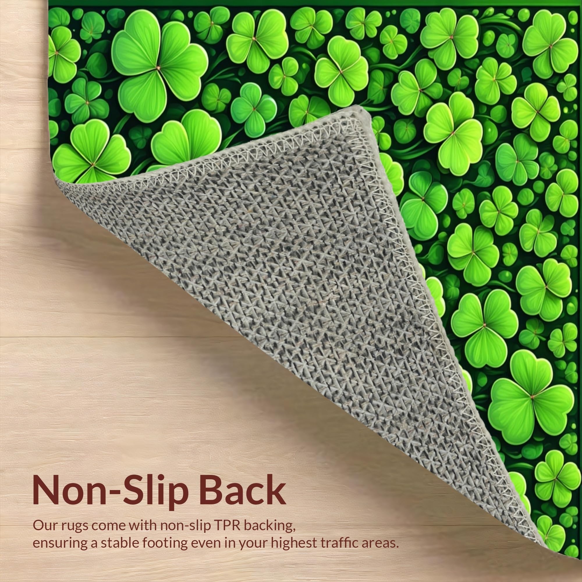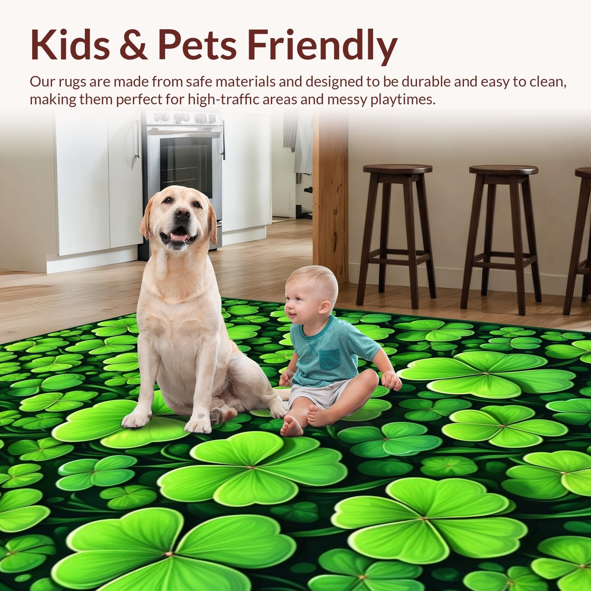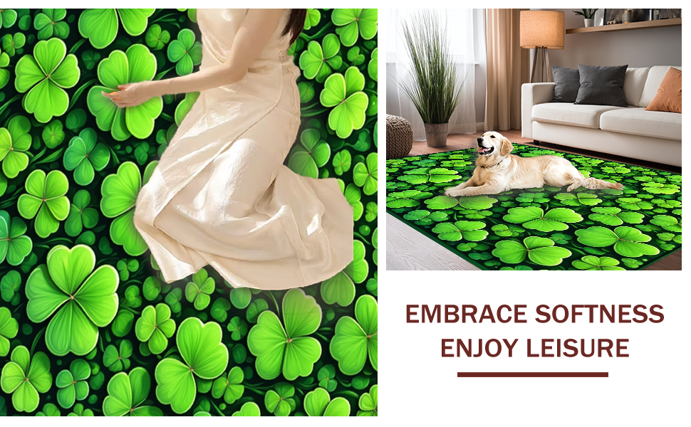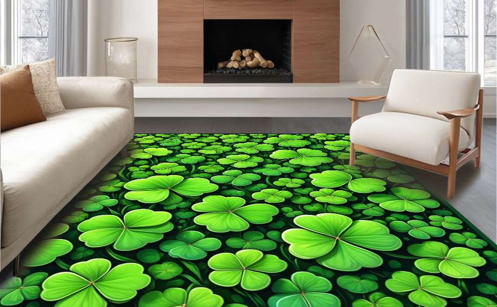 Ultra Soft Area Rug, Non Slip, Stain Resistant, Washable Area Rugs for Living Room, Bedroom, Charming Seasonal Clover Design(Green) Overview: