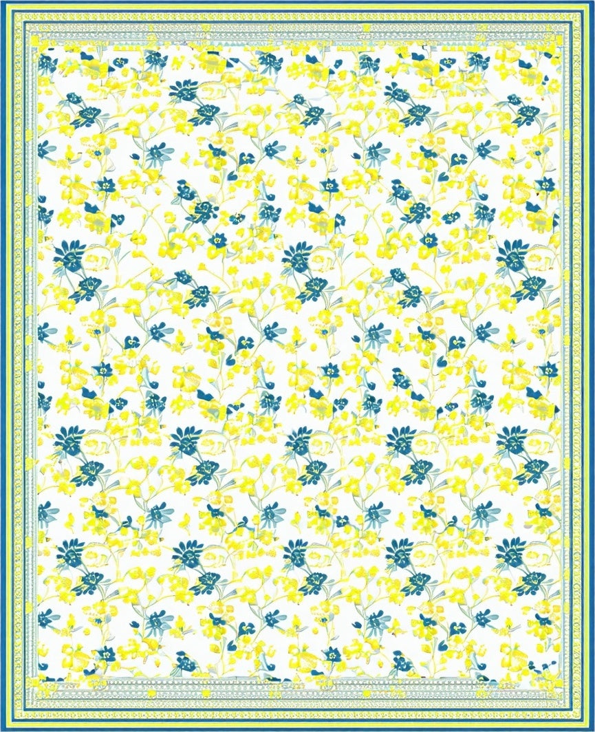 Charming Small Carpet Displaying Whimsical Floral Motifs(Yellow)