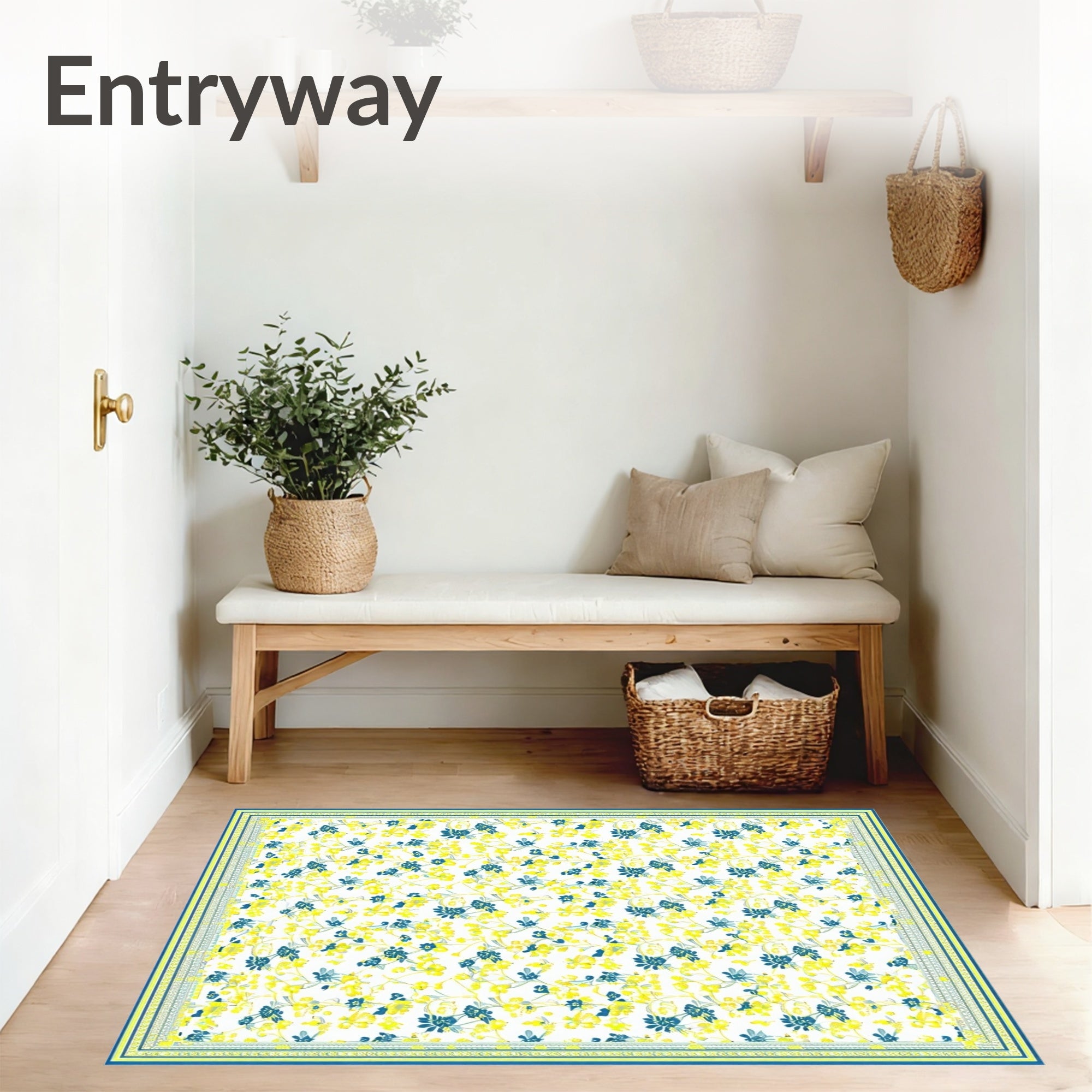 Ultra Soft Area Rug, Non Slip, Stain Resistant, Washable Area Rugs for Living Room, Bedroom, Charming Small Carpet Displaying Whimsical Floral Motifs(Yellow) Overview: