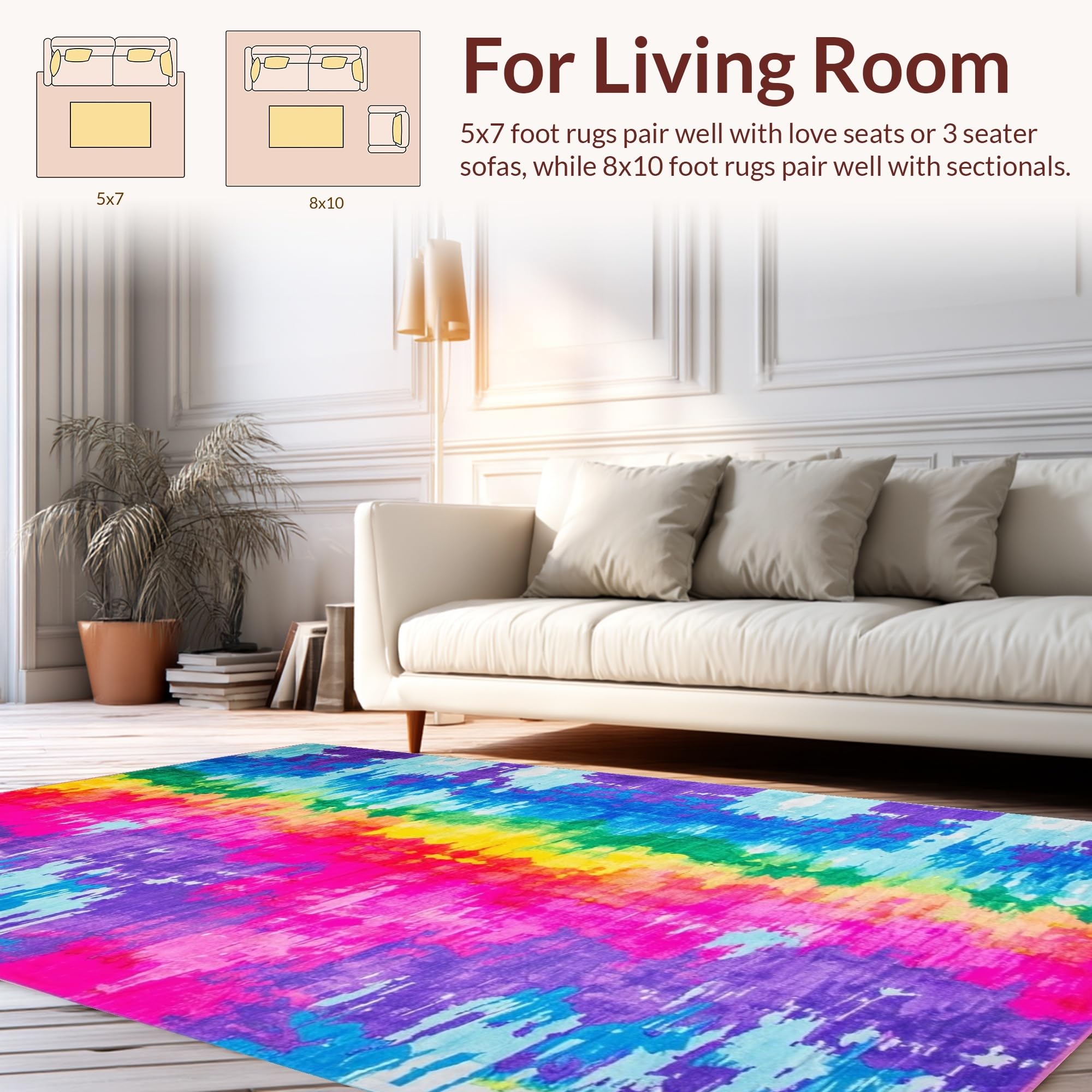 Ultra Soft Area Rug, Non Slip, Stain Resistant, Washable Area Rugs for Living Room, Bedroom, Charming Soft Color Splash Pattern(Purple) Overview: