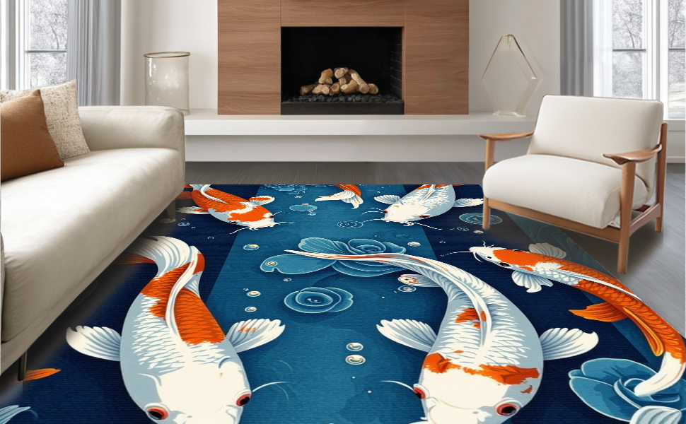 Ultra Soft Area Rug, Non Slip, Stain Resistant, Washable Area Rugs for Living Room, Bedroom, Charming Soft Oceanic Design(Blue) Overview: