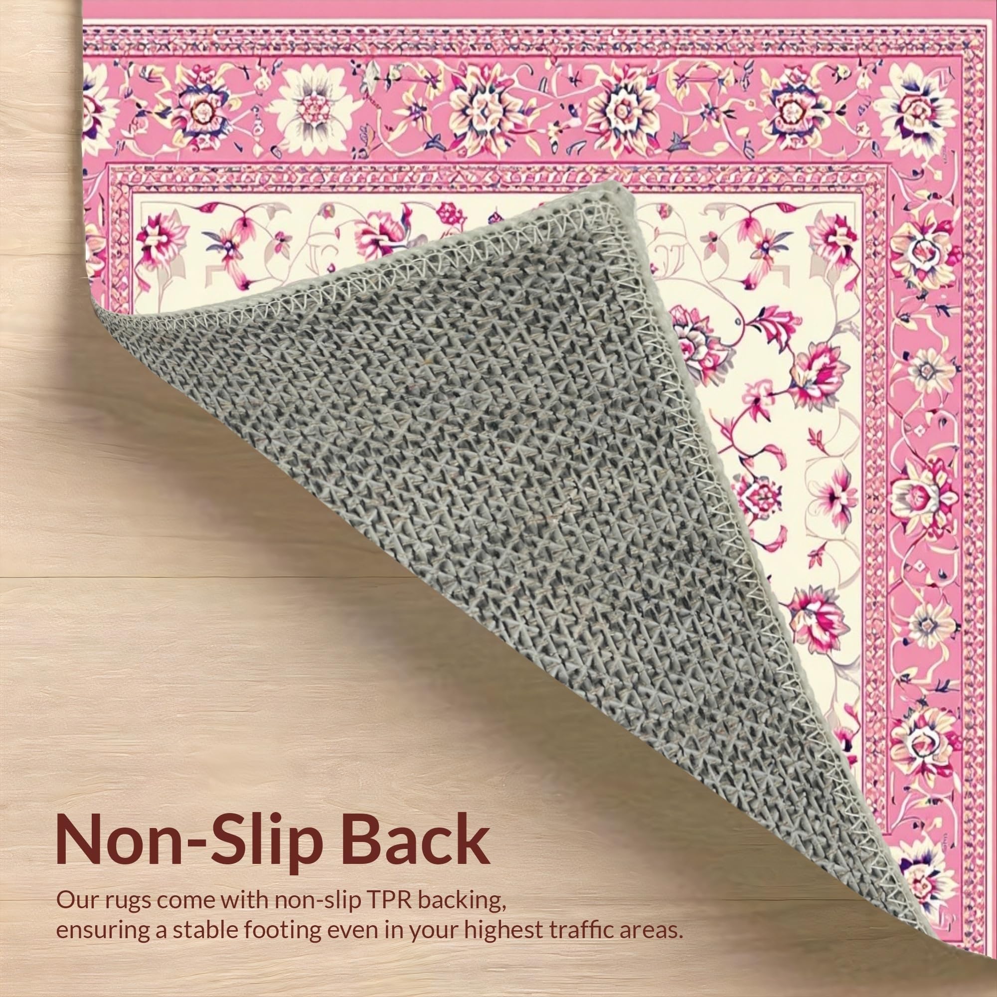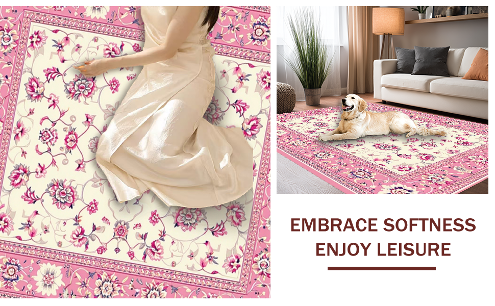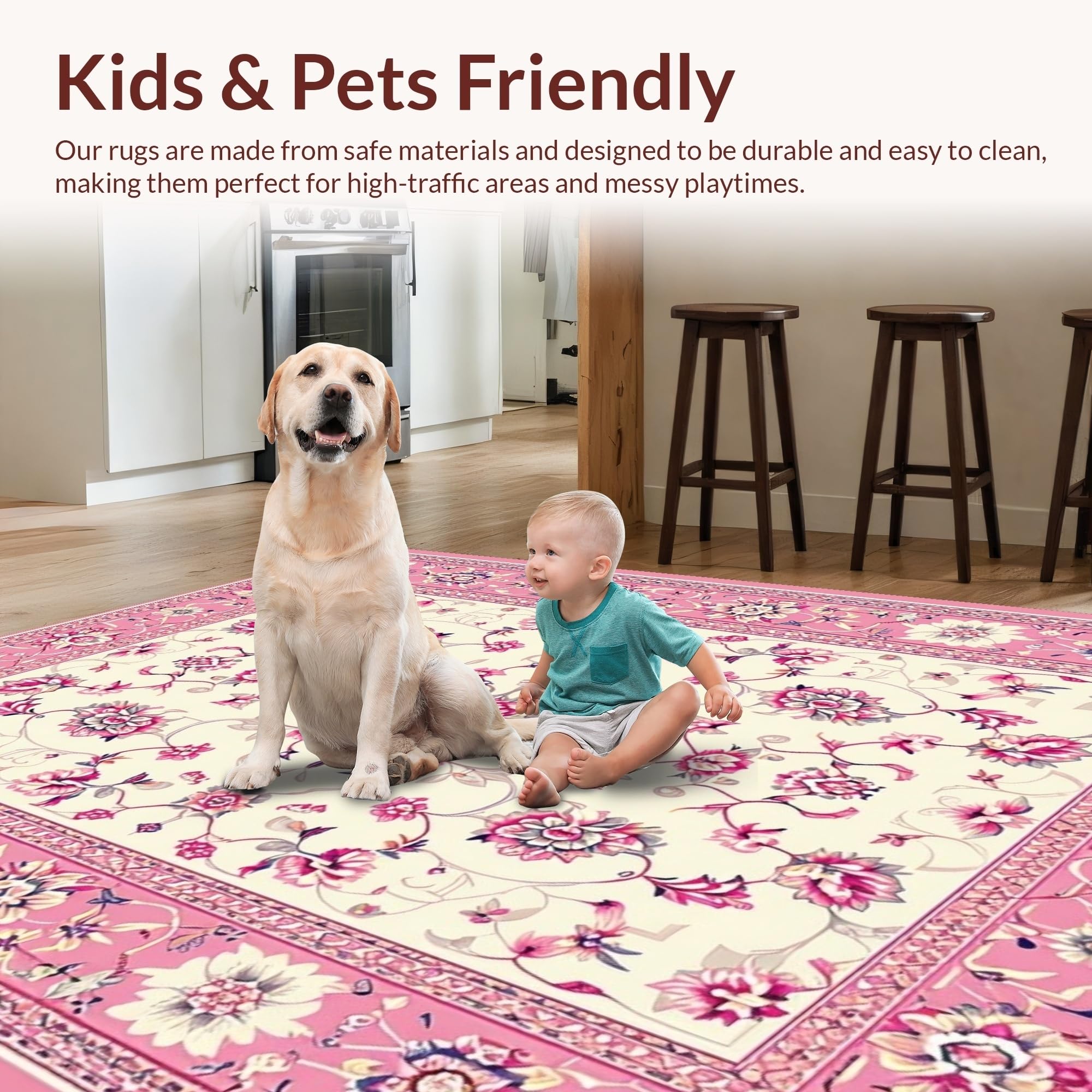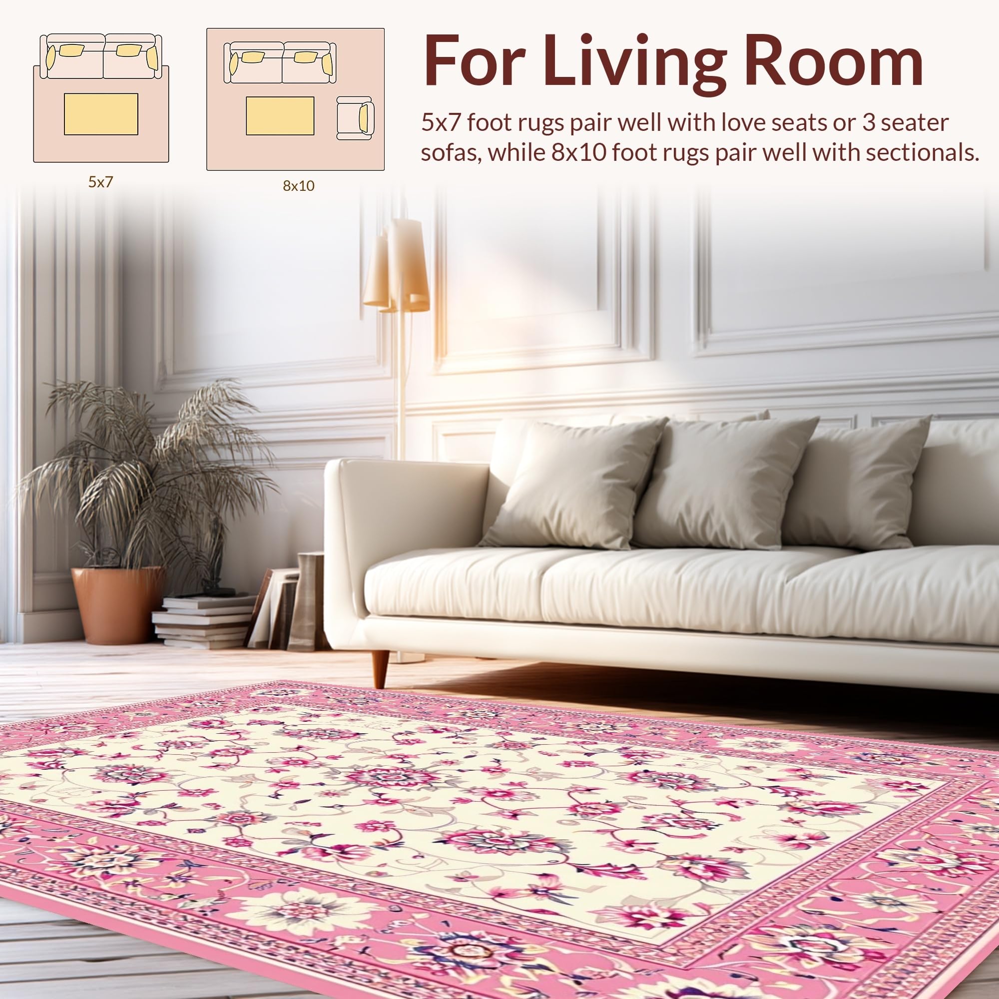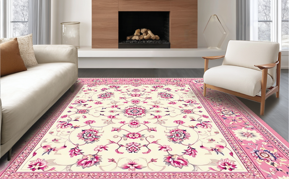 Ultra Soft Area Rug, Non Slip, Stain Resistant, Washable Area Rugs for Living Room, Bedroom, Charming Vintage Blooming Motif(Ivory) Overview: