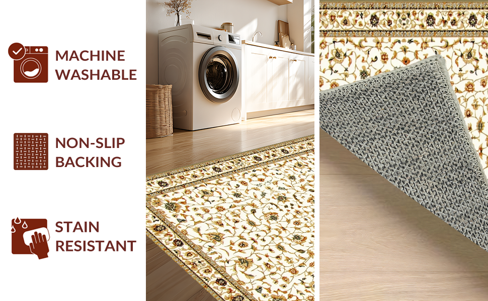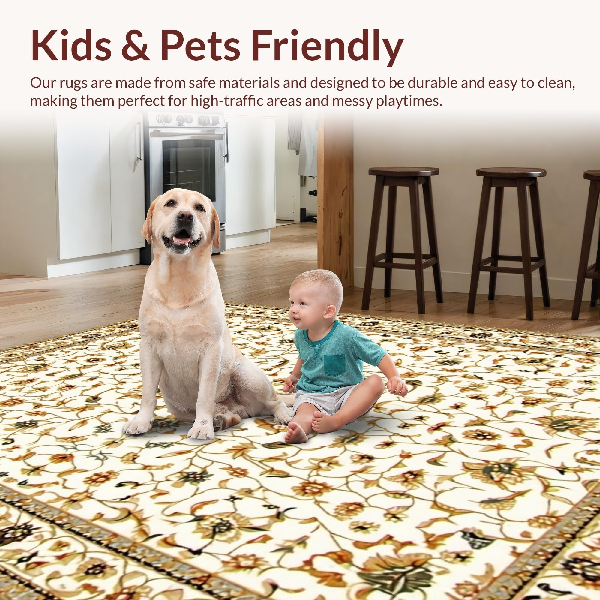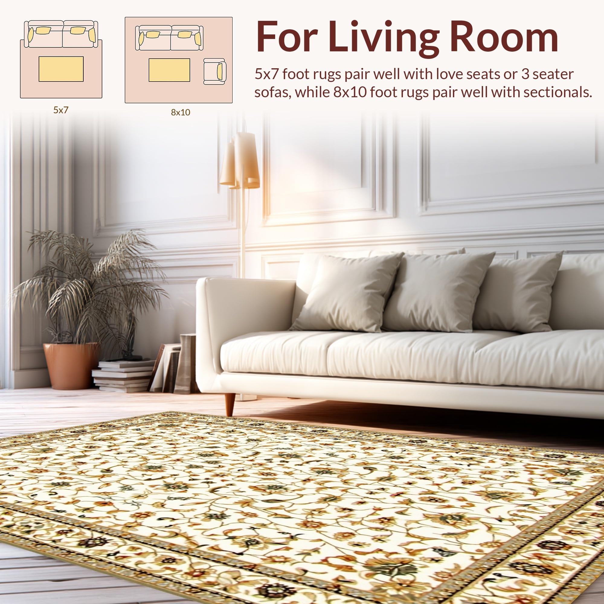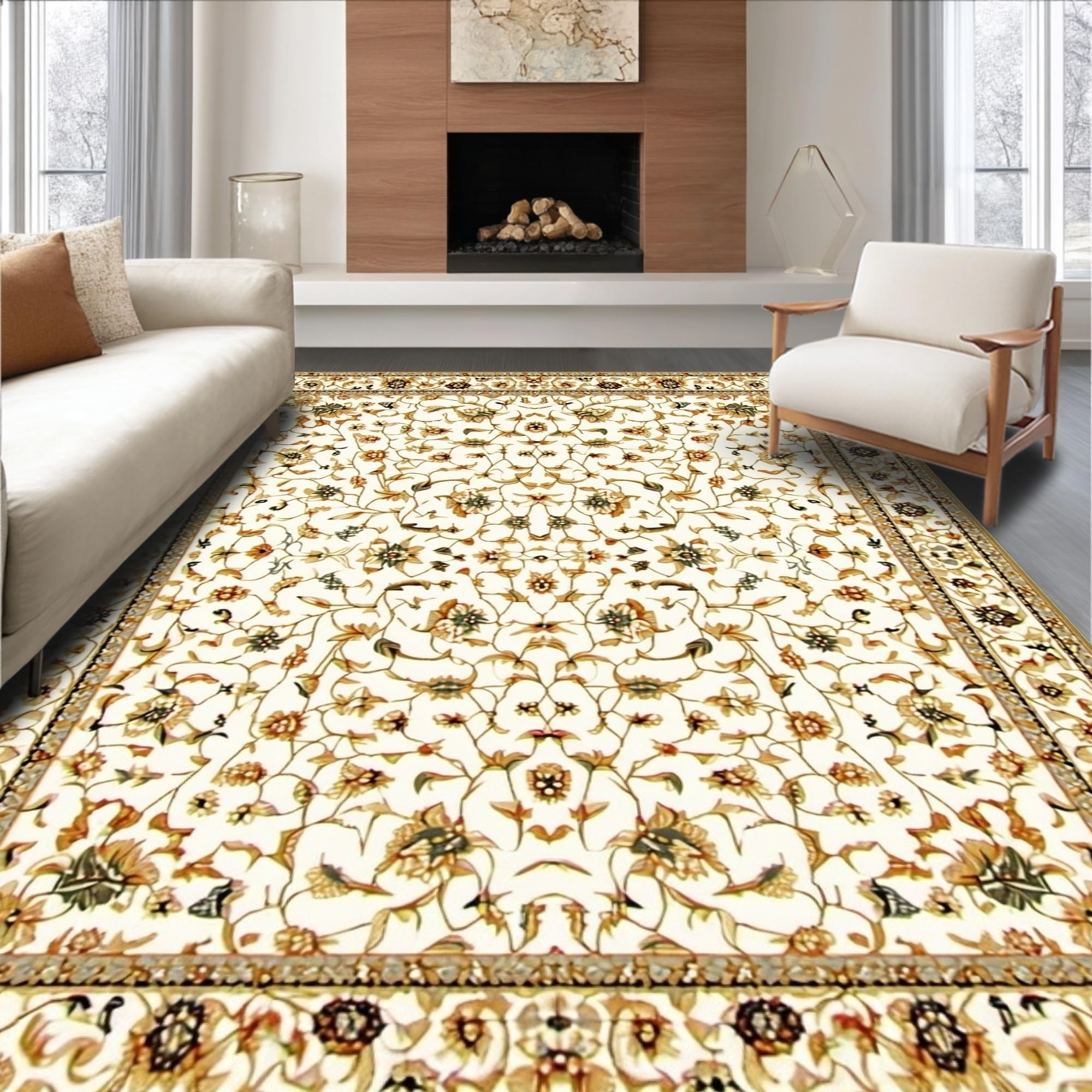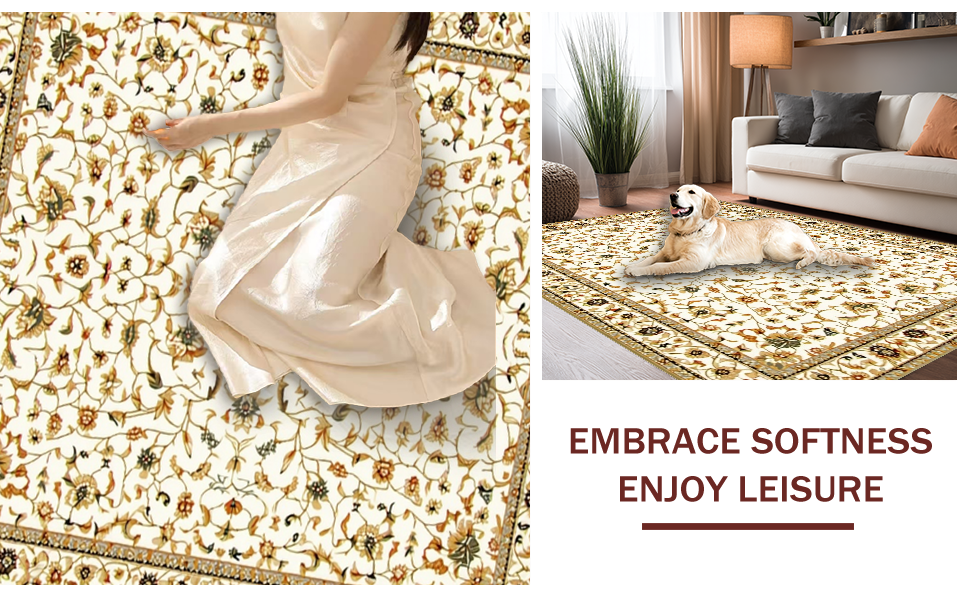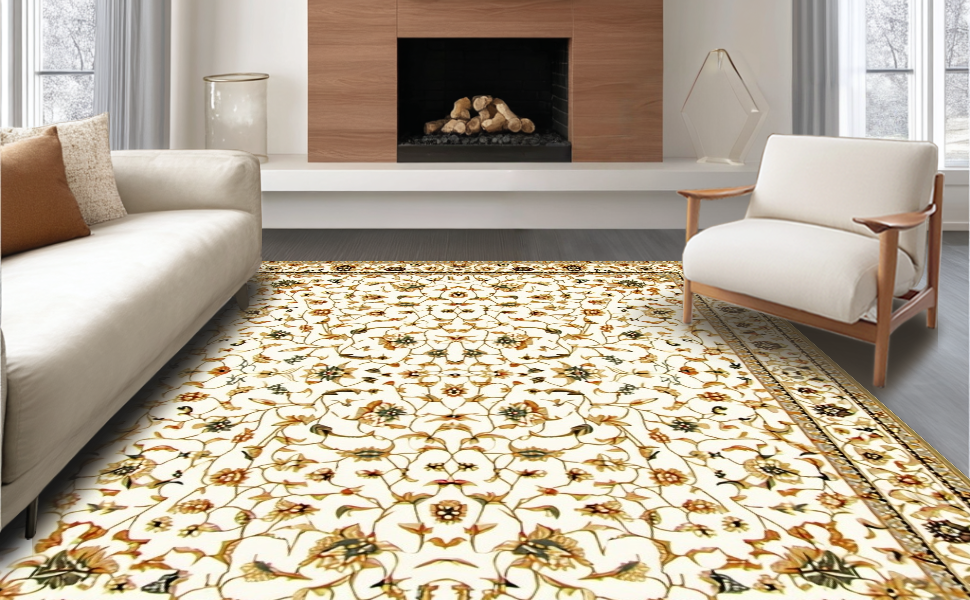 Ultra Soft Area Rug, Non Slip, Stain Resistant, Washable Area Rugs for Living Room, Bedroom, Charming Vintage Floral Design(Beige) Overview: