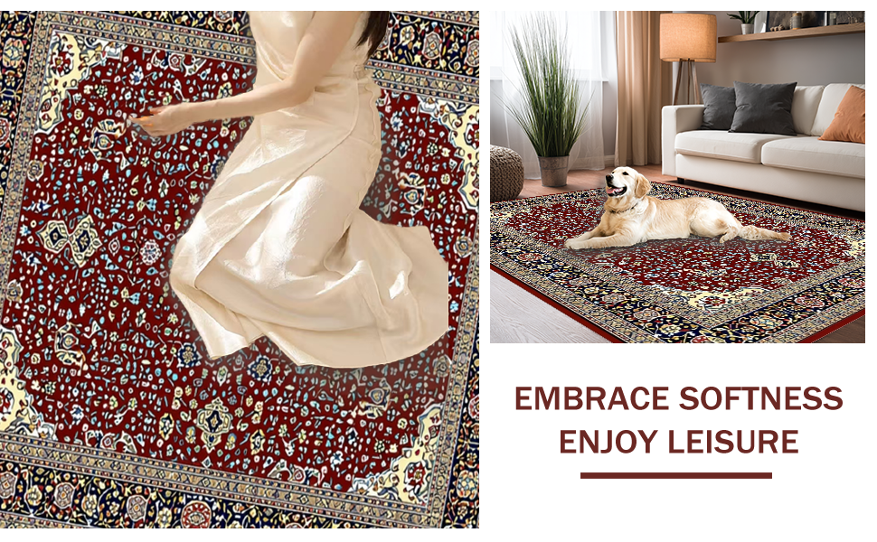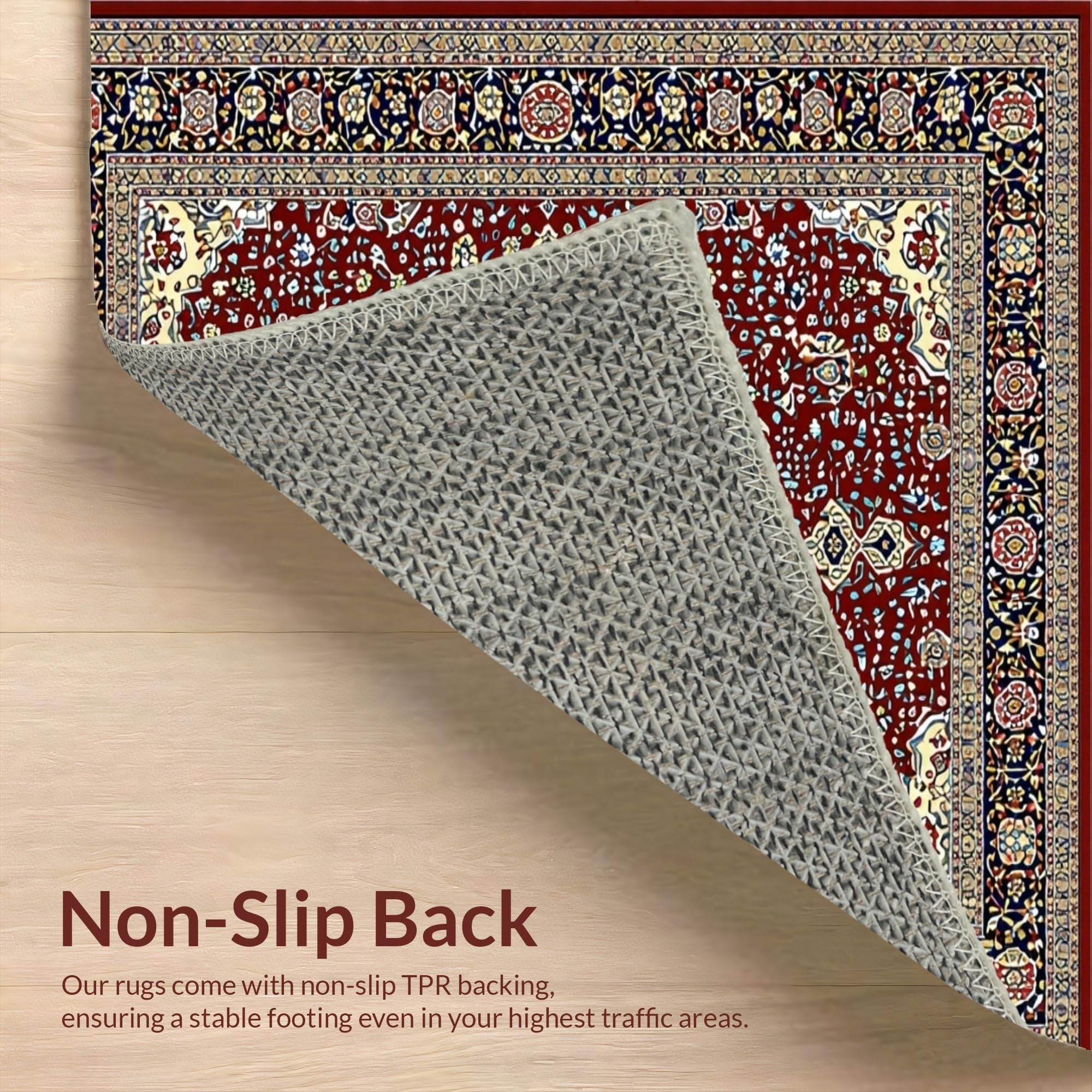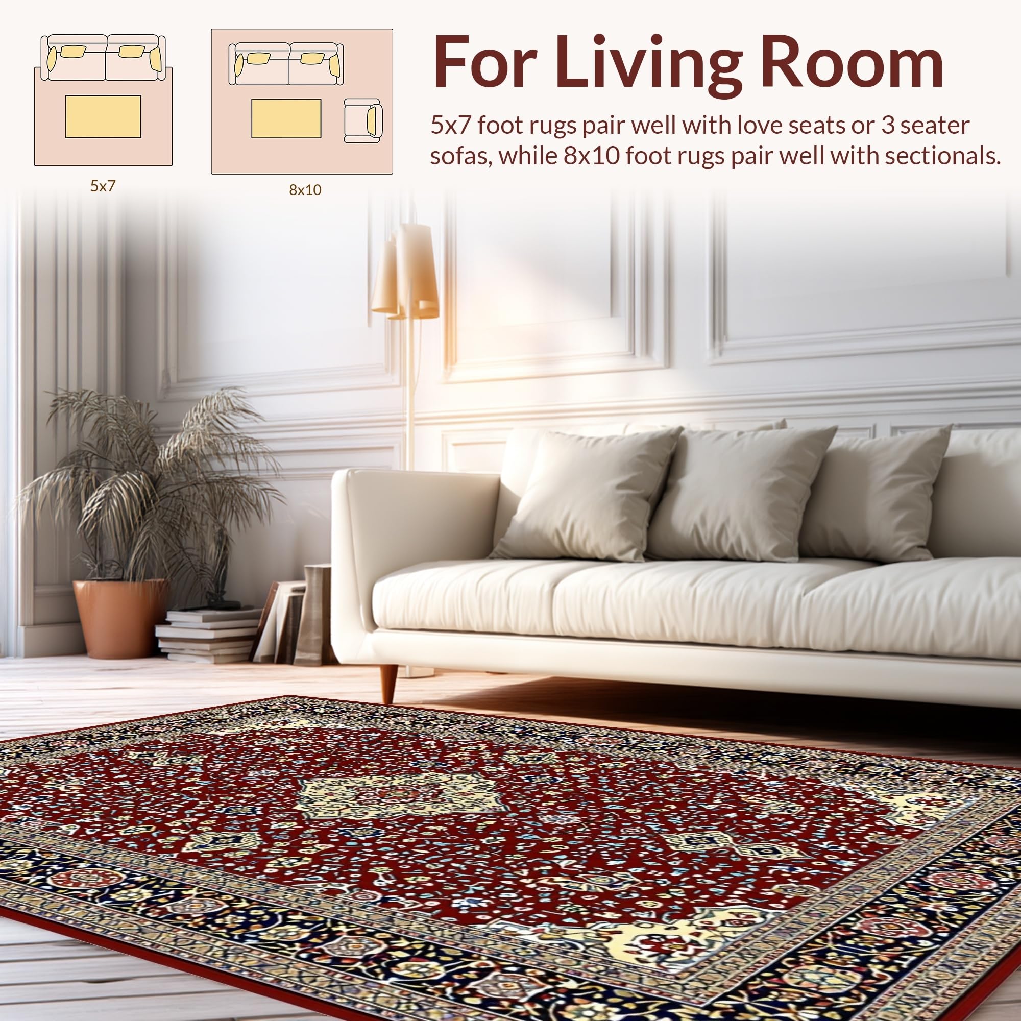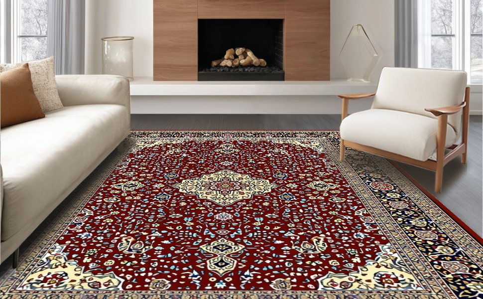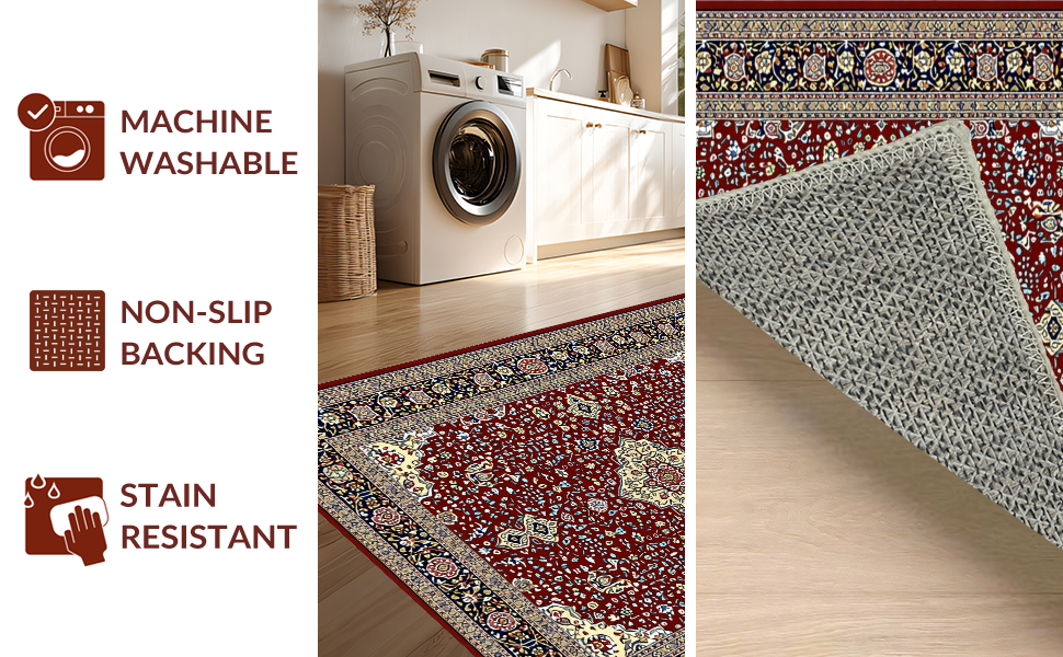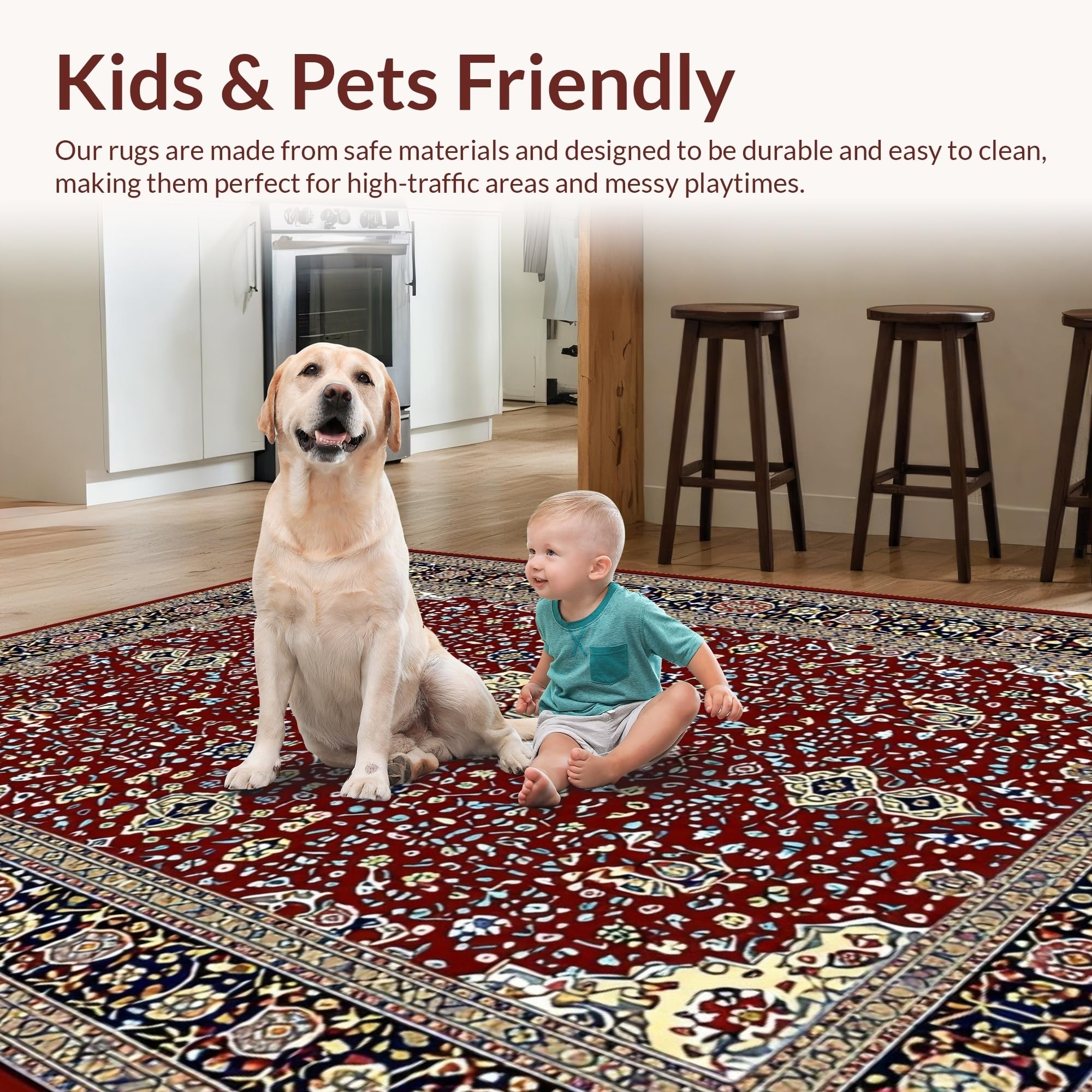 Ultra Soft Area Rug, Non Slip, Stain Resistant, Washable Area Rugs for Living Room, Bedroom, Charming Vintage-Inspired Ornate Style(Red) Overview: