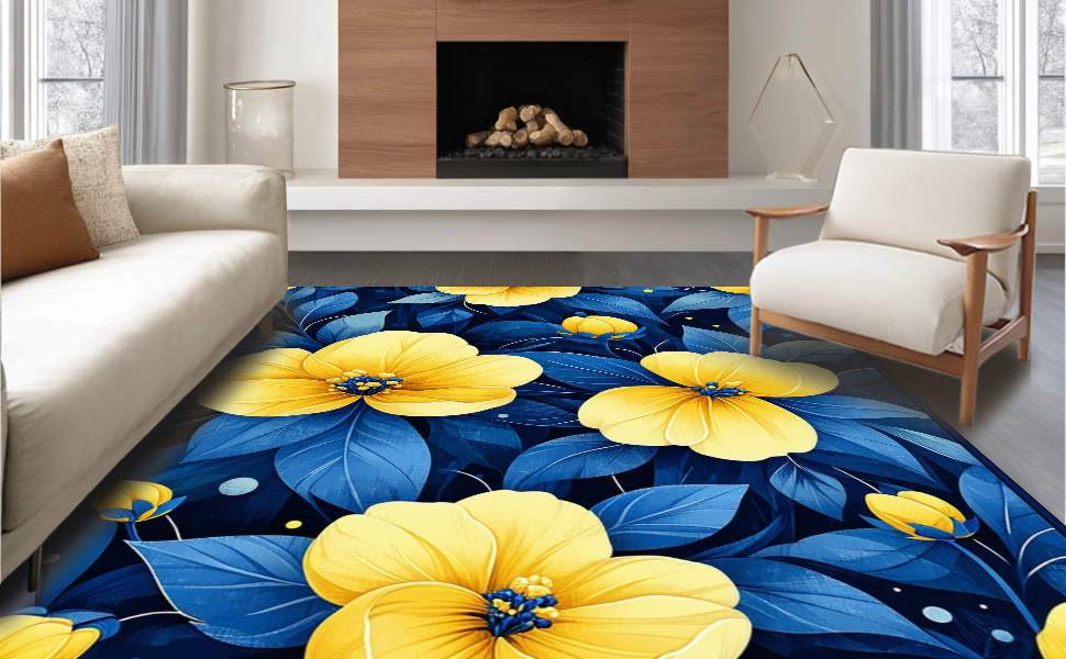 Ultra Soft Area Rug, Non Slip, Stain Resistant, Washable Area Rugs for Living Room, Bedroom, Charming Vintage Patterned Flourish(Yellow) Overview: