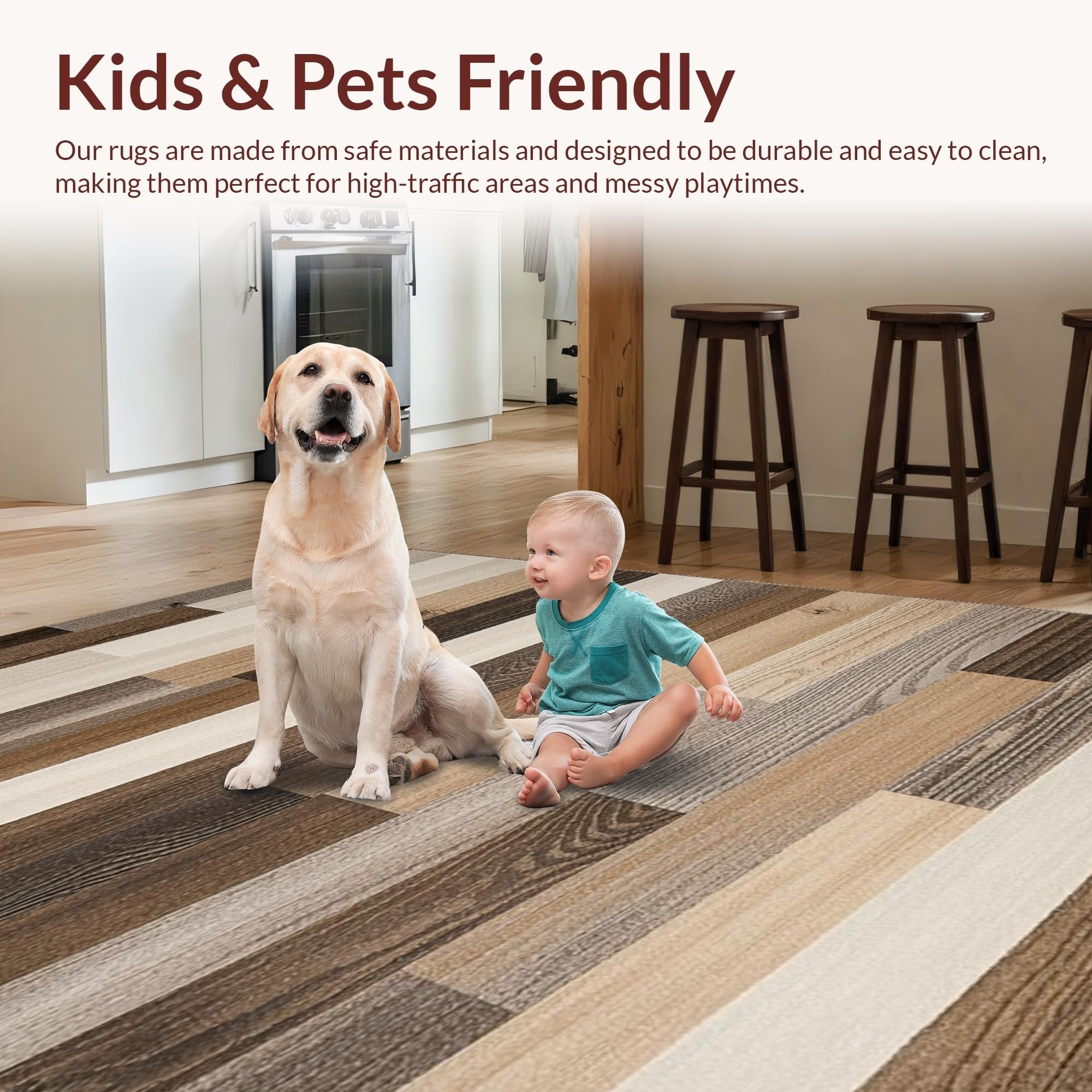 - Kid & Pet Friendly: Ideal for high-traffic indoor areas, this flooring is designed to withstand life's unpredictable messes caused by children or pets.