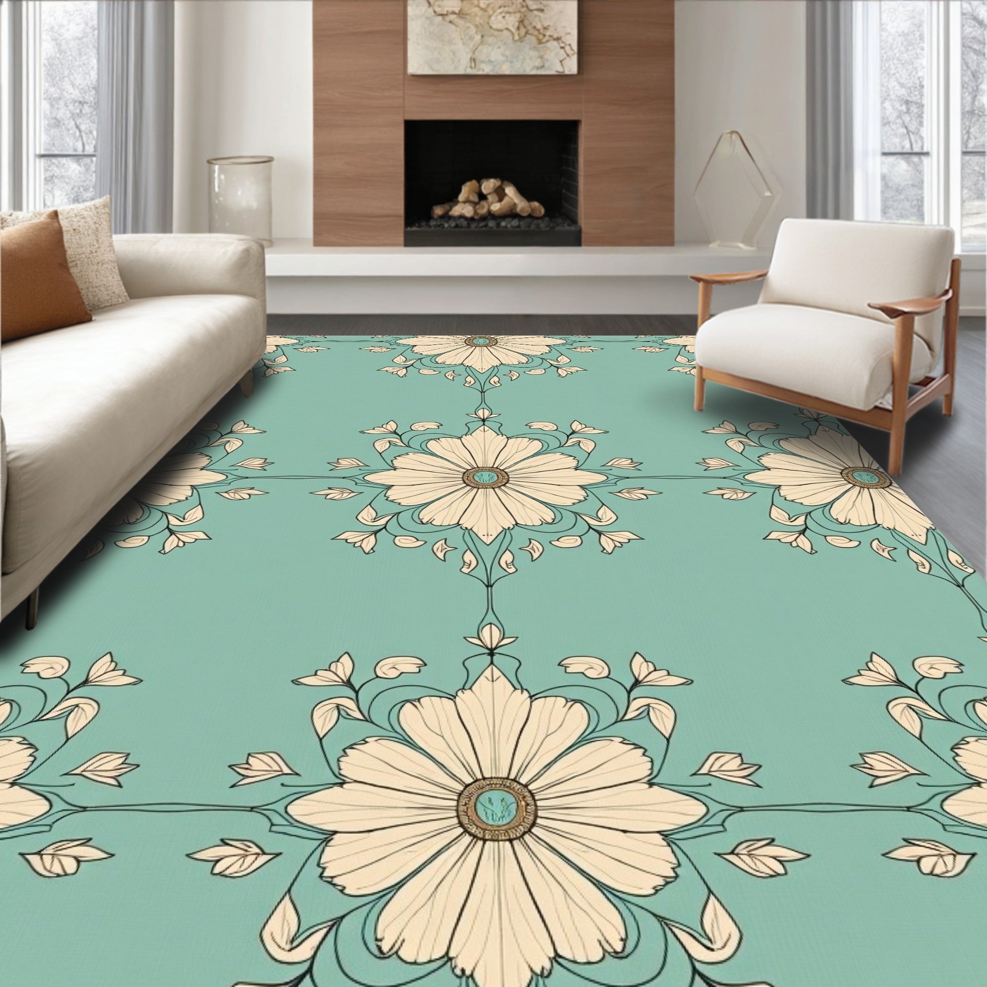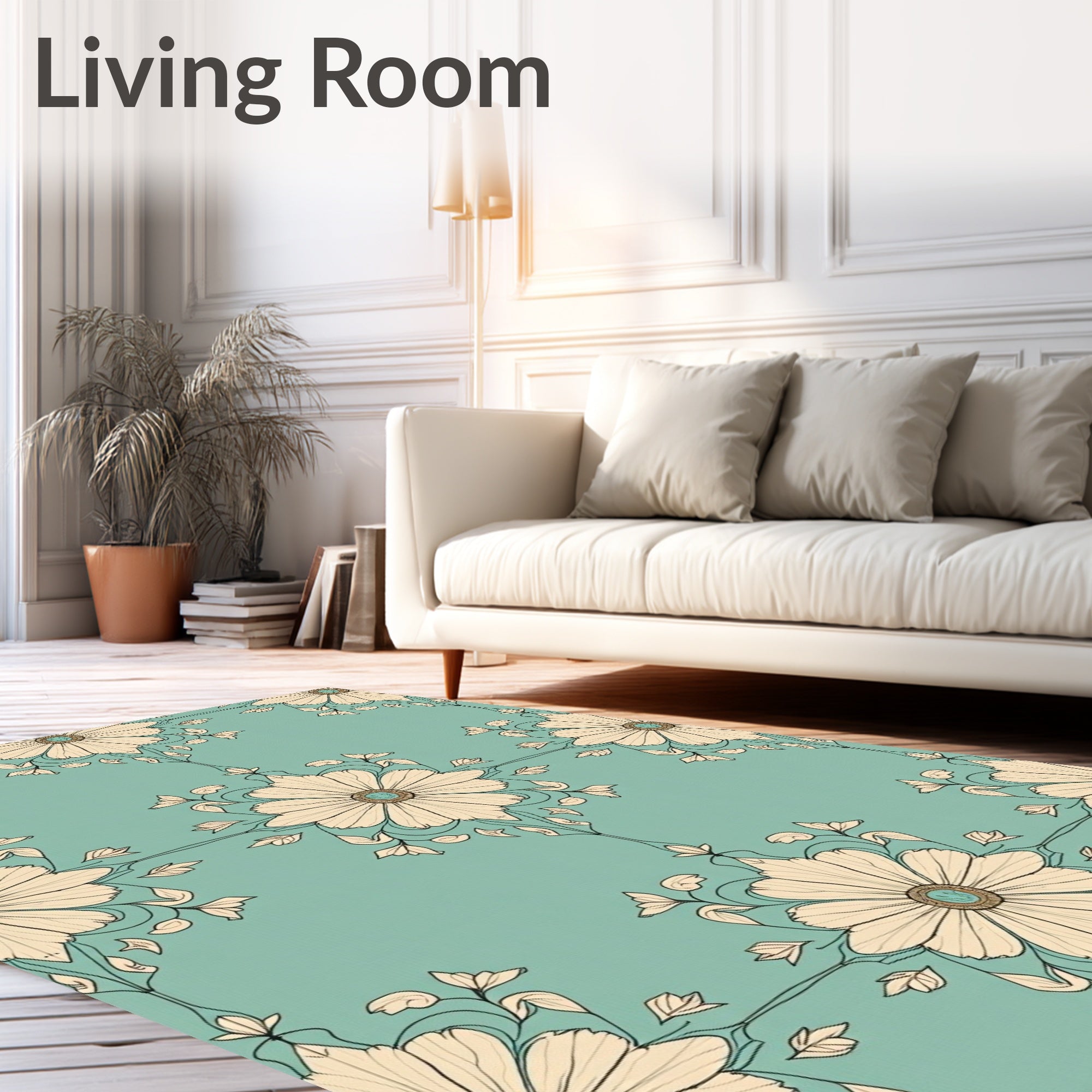 Ultra Soft Area Rug, Non Slip, Stain Resistant, Washable Area Rugs for Living Room, Bedroom, Chateau Botanical Illustration(Teal) Overview: