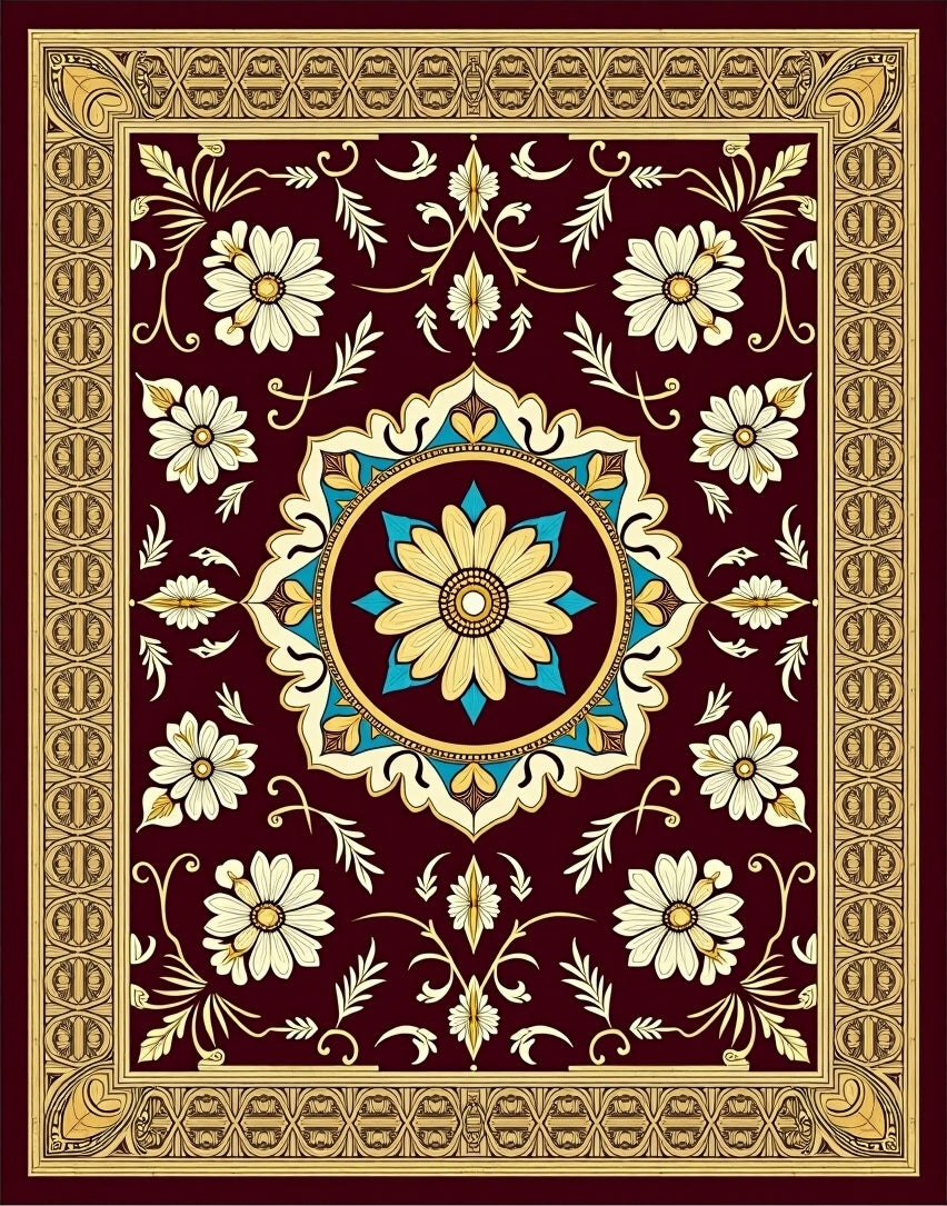 Chateau Floral Medallion Arrangement with Classic Vine Detailing(Burgundy)