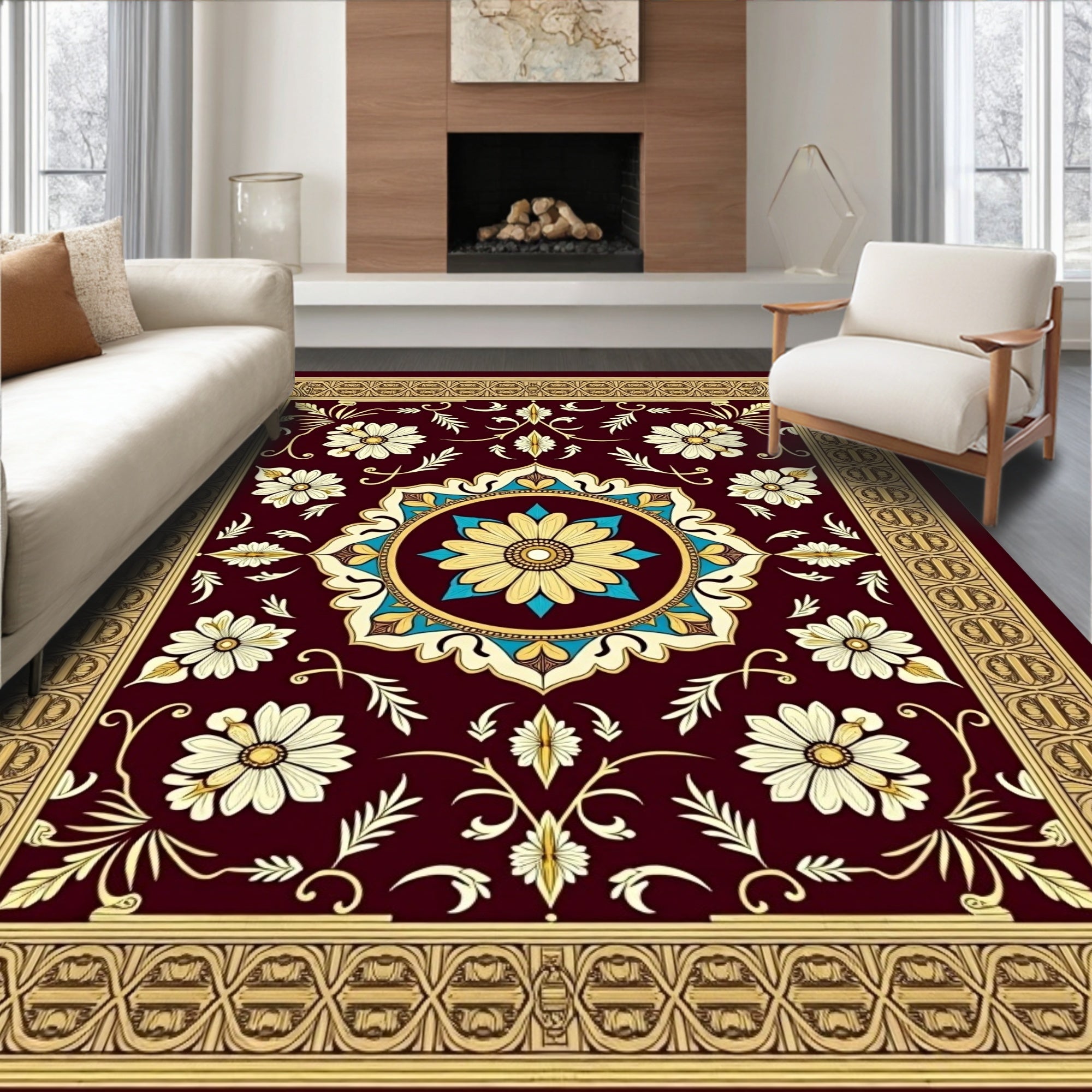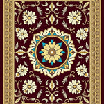 Flatwoven High Traffic Area Rug, Chateau Floral Medallion Arrangement with Classic Vine Detailing, Non Slip, Stain Resistant, Washable Area Rugs for Living Room, Bedroom (Burgundy) Overview: