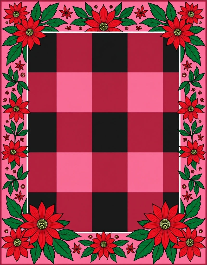 Checked with Poinsettia Floral Borders(Pink)