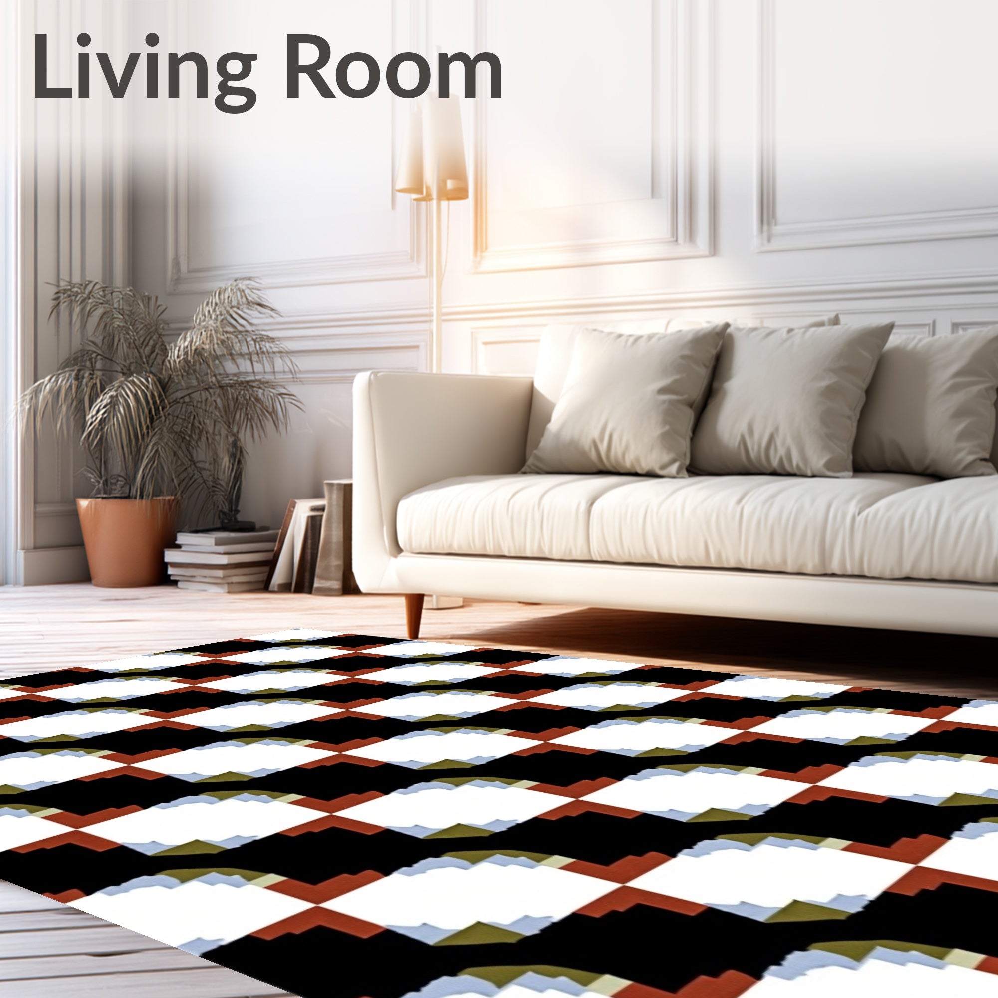 Flatwoven High Traffic Area Rug, Checkerboard Motif Festive Season Floor Accent, Non Slip, Stain Resistant, Washable Area Rugs for Living Room, Bedroom (Black) Overview: