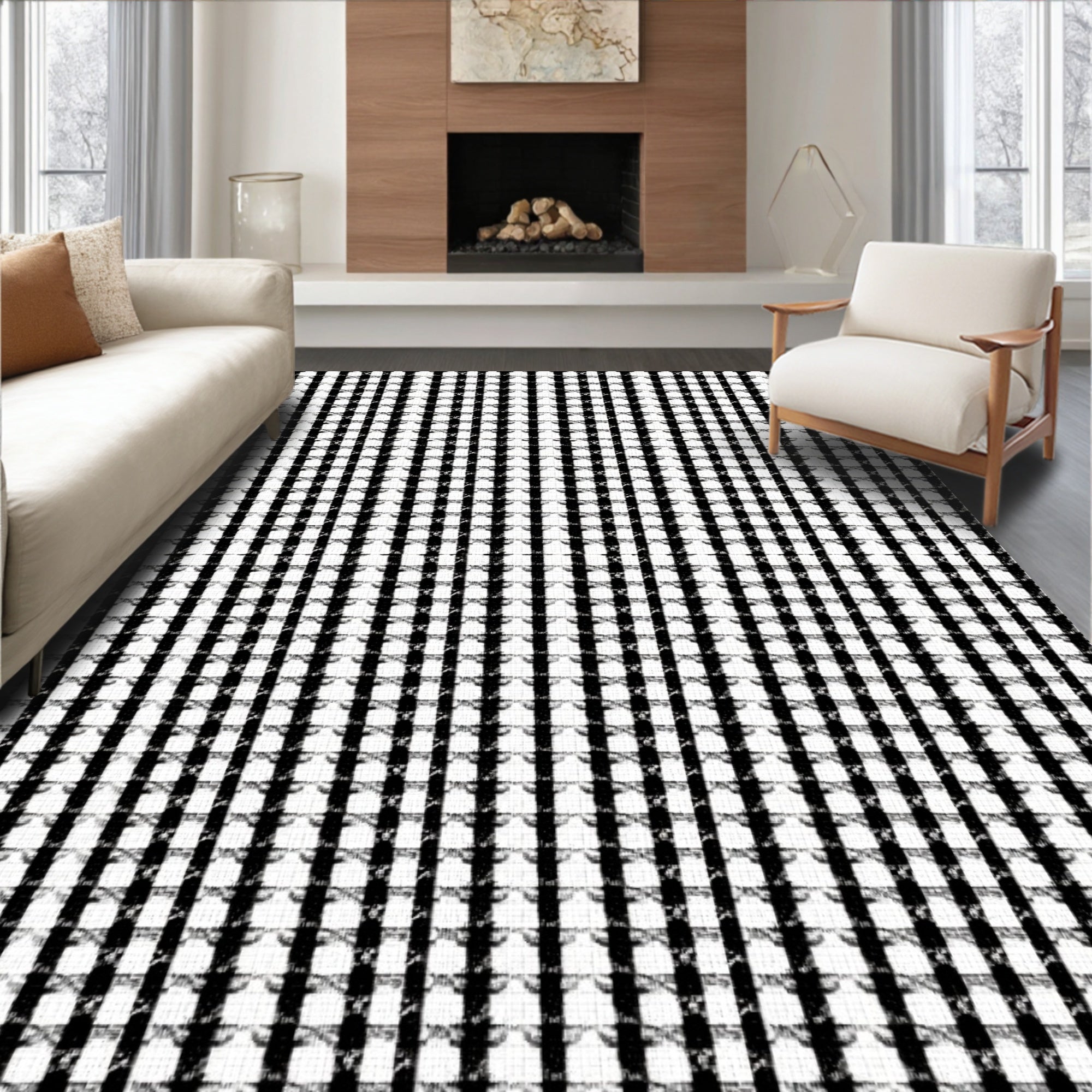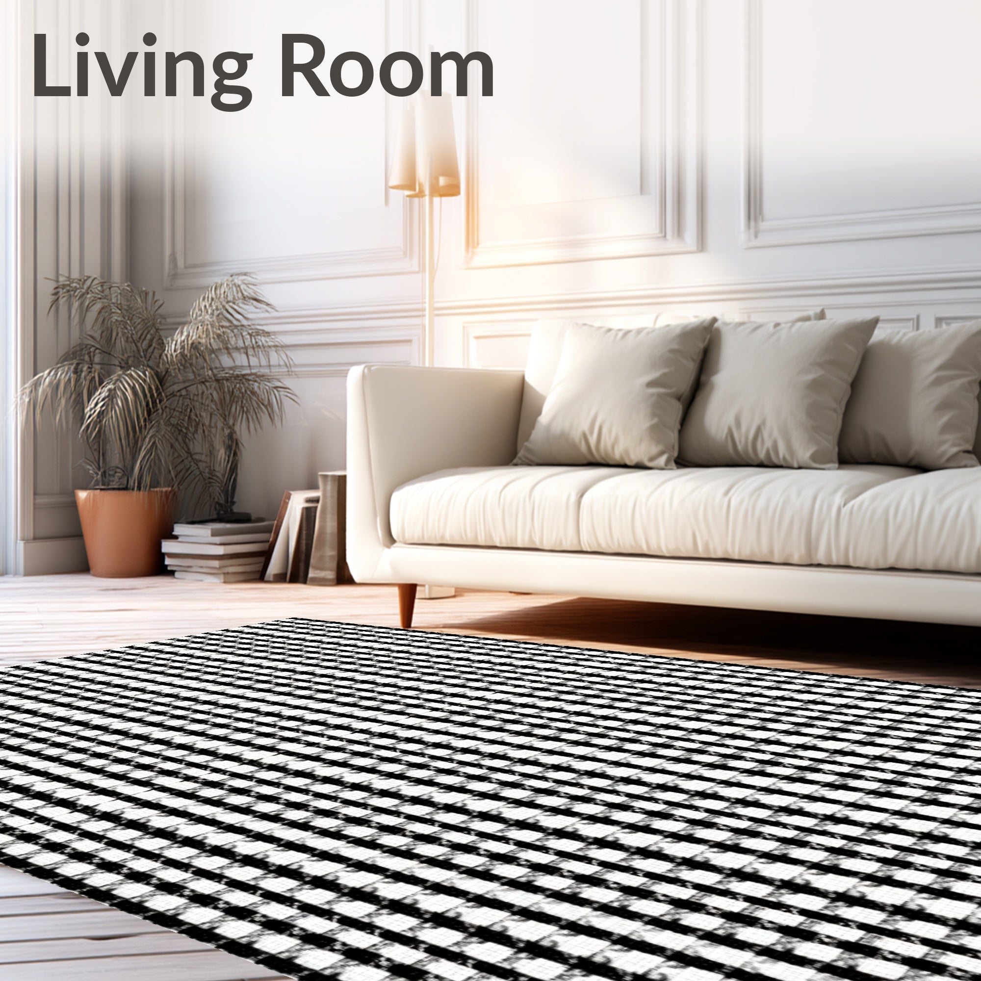 Ultra Soft Area Rug, Non Slip, Stain Resistant, Washable Area Rugs for Living Room, Bedroom, Checkerboard Porch with Vintage Cottage Appeal(Black) Overview: