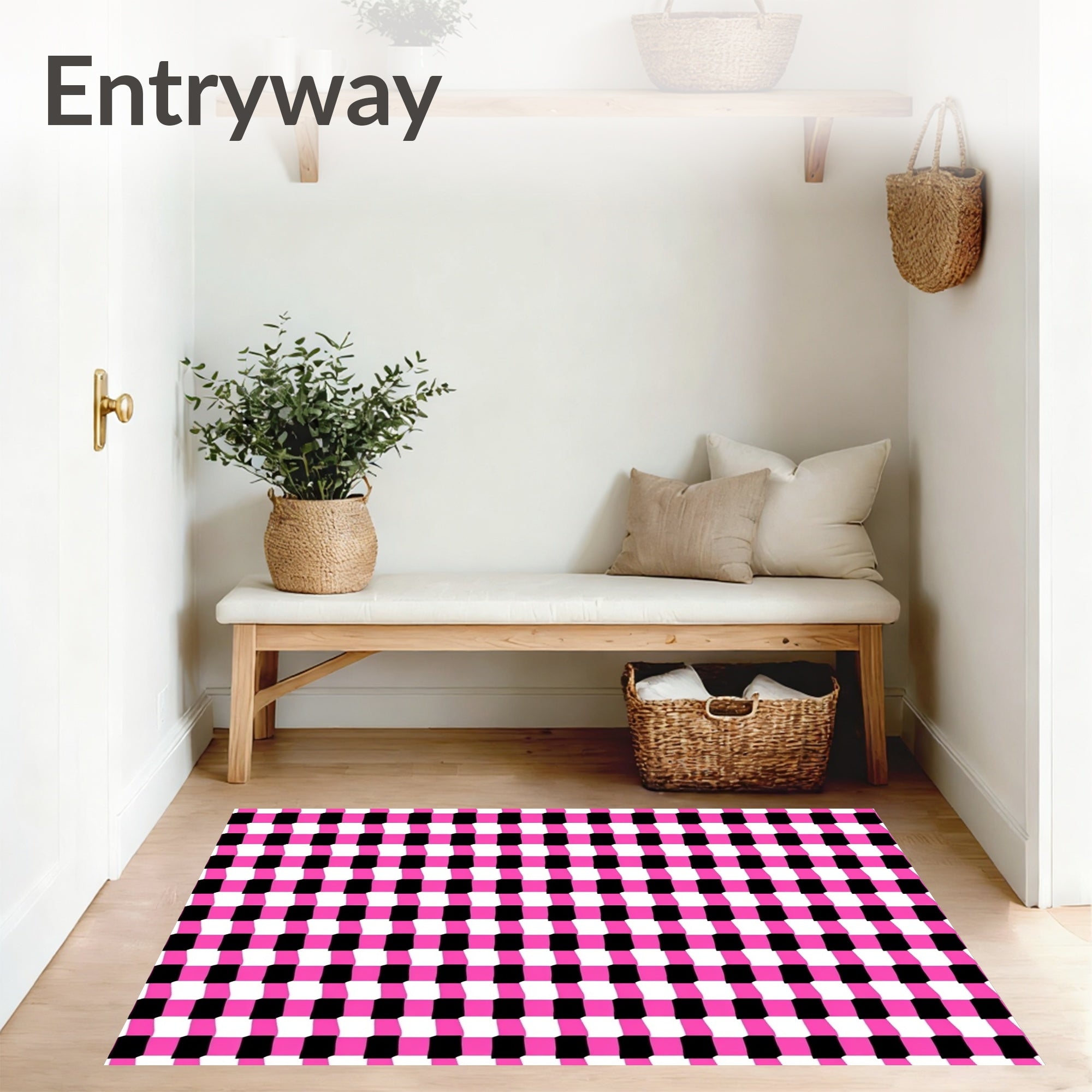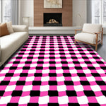 Checkered Gingham Floor Covering with Classic Grid Design(Pink)
