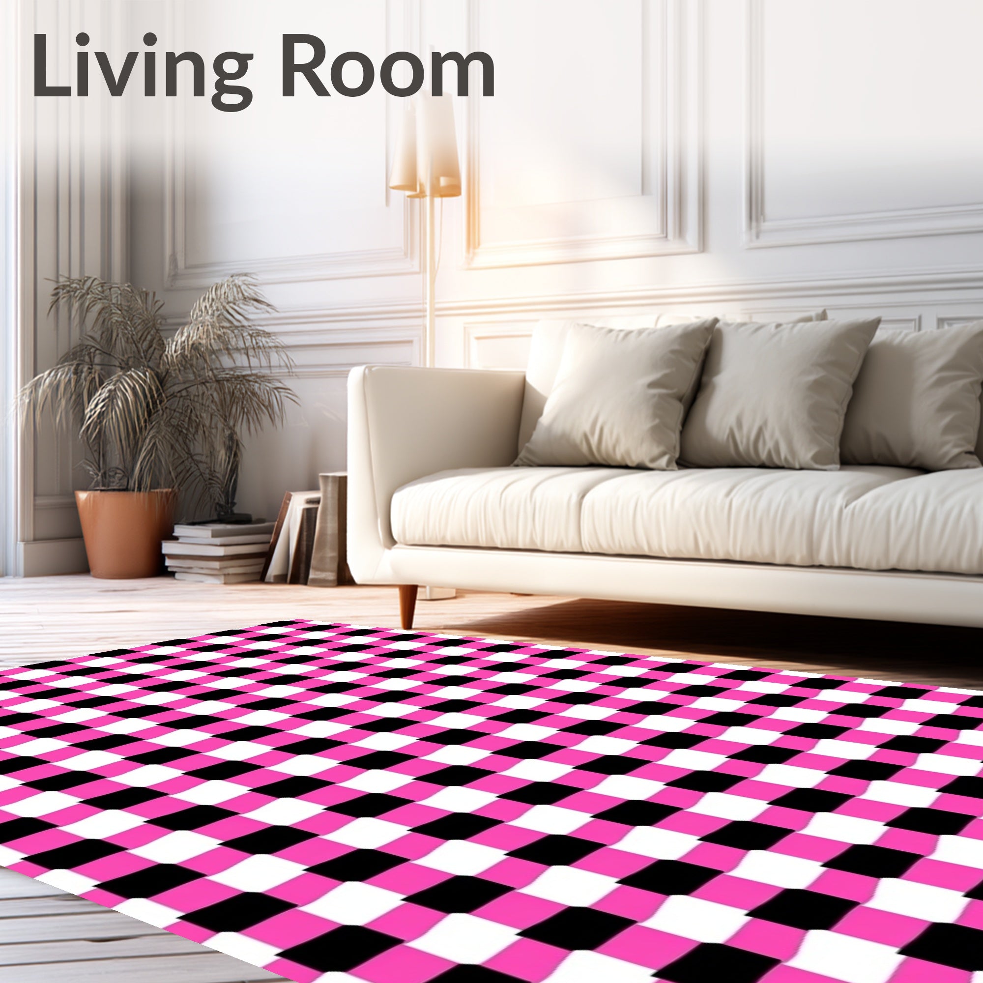 Ultra Soft Area Rug, Non Slip, Stain Resistant, Washable Area Rugs for Living Room, Bedroom, Checkered Gingham Floor Covering with Classic Grid Design(Pink) Overview: