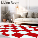 Ultra Soft Area Rug, Non Slip, Stain Resistant, Washable Area Rugs for Living Room, Bedroom, Checkered Gingham Reversible Design Plaid Textile(Red) Overview: