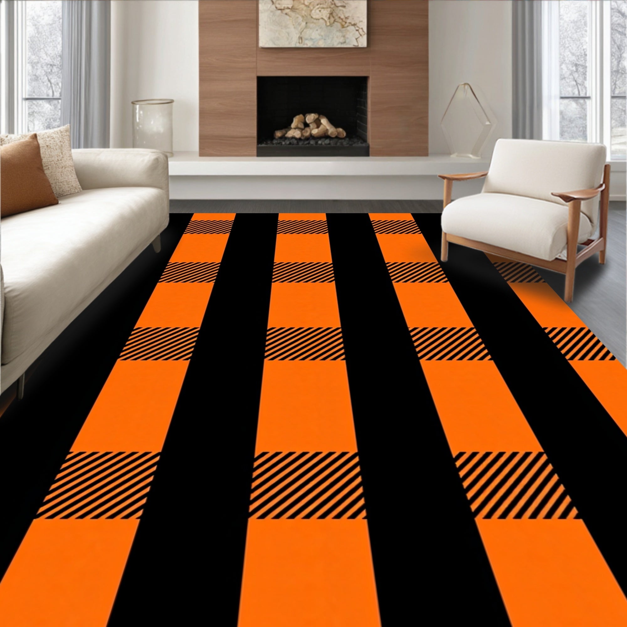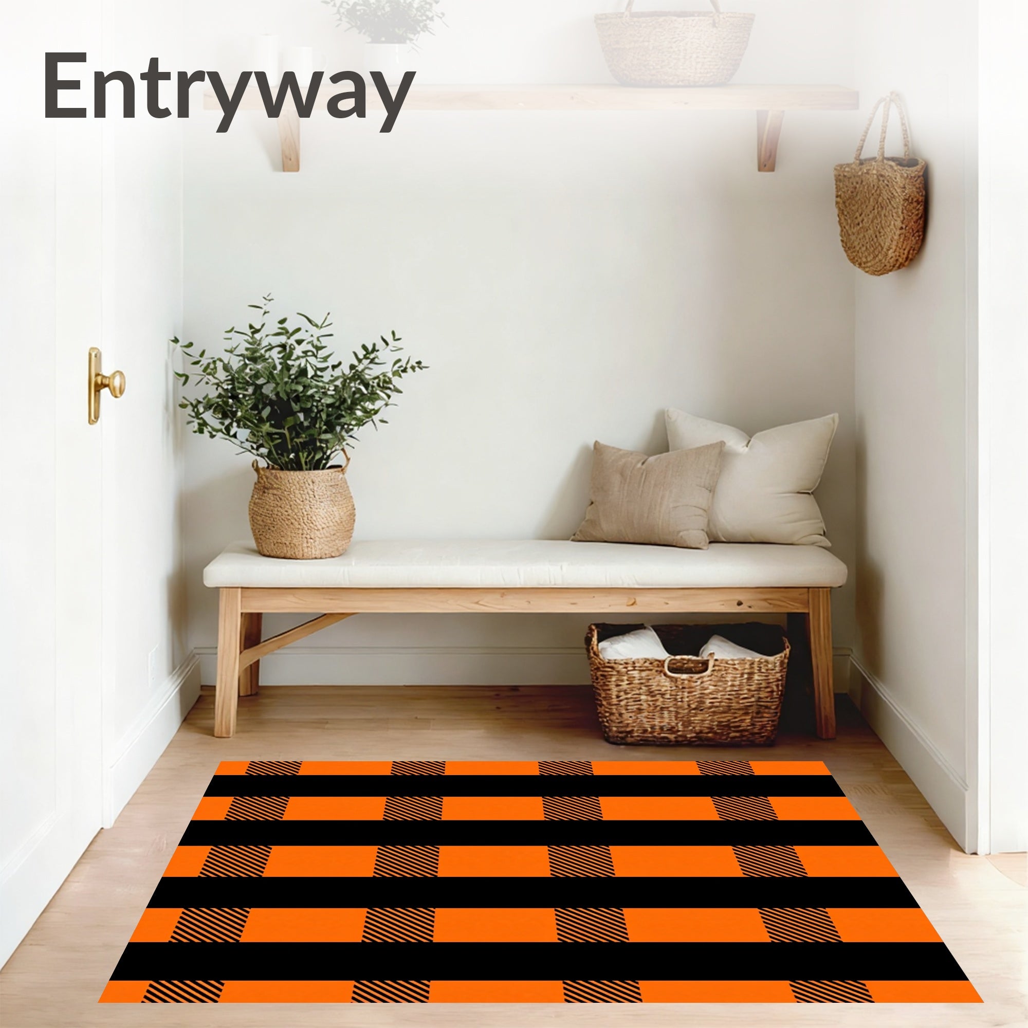Ultra Soft Area Rug, Non Slip, Stain Resistant, Washable Area Rugs for Living Room, Bedroom, Checkered Plaid Reversible Farmhouse Style Decorative(Black) Overview: