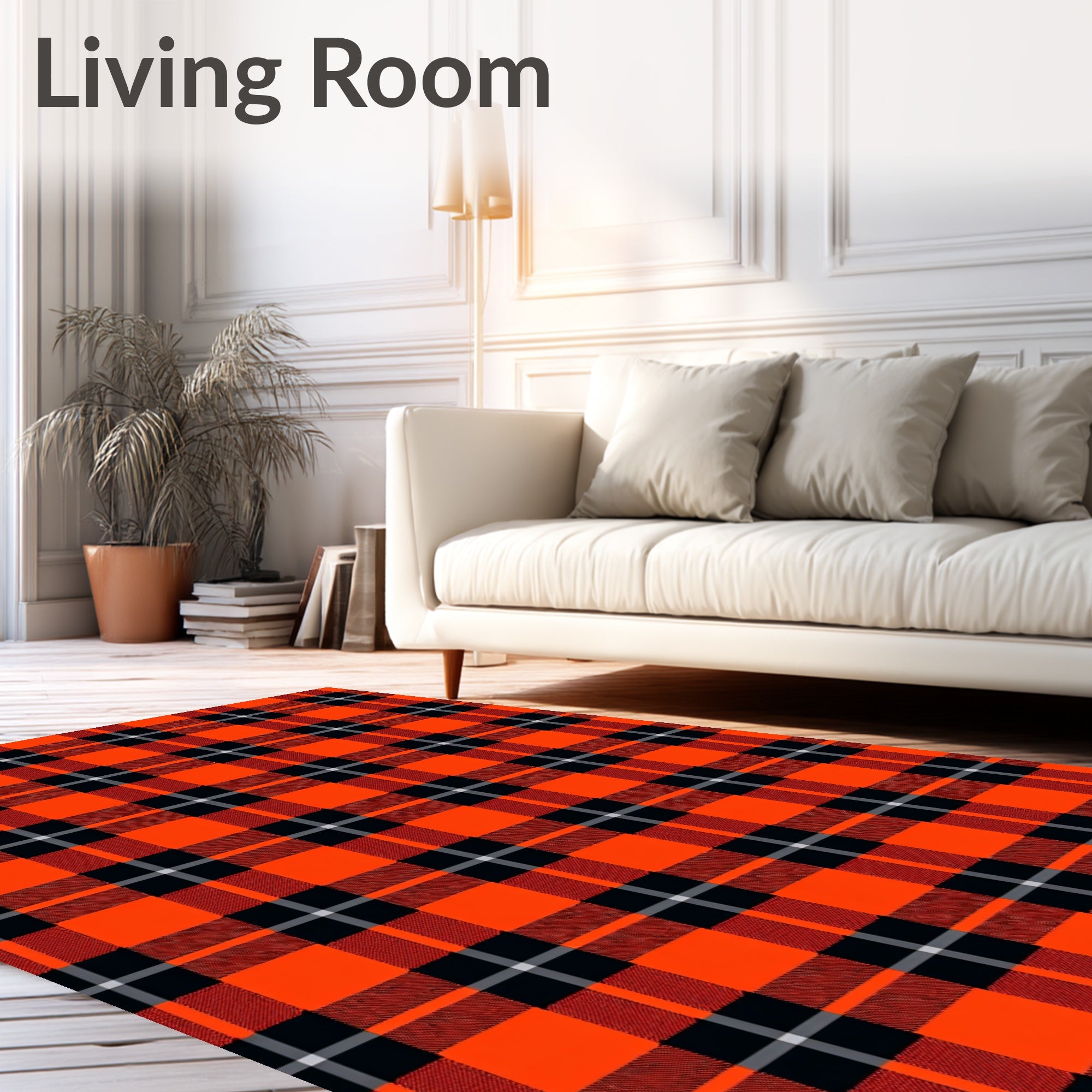 Ultra Soft Area Rug, Non Slip, Stain Resistant, Washable Area Rugs for Living Room, Bedroom, Checkered Plaid with Bold Contrasting Grid Design(Orange) Overview: