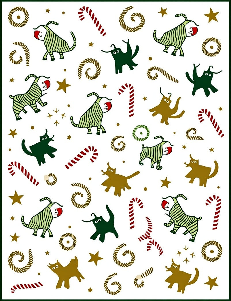 Cheerful Lighted Kitty Parade with Interlocking Christmas Icons(Green)