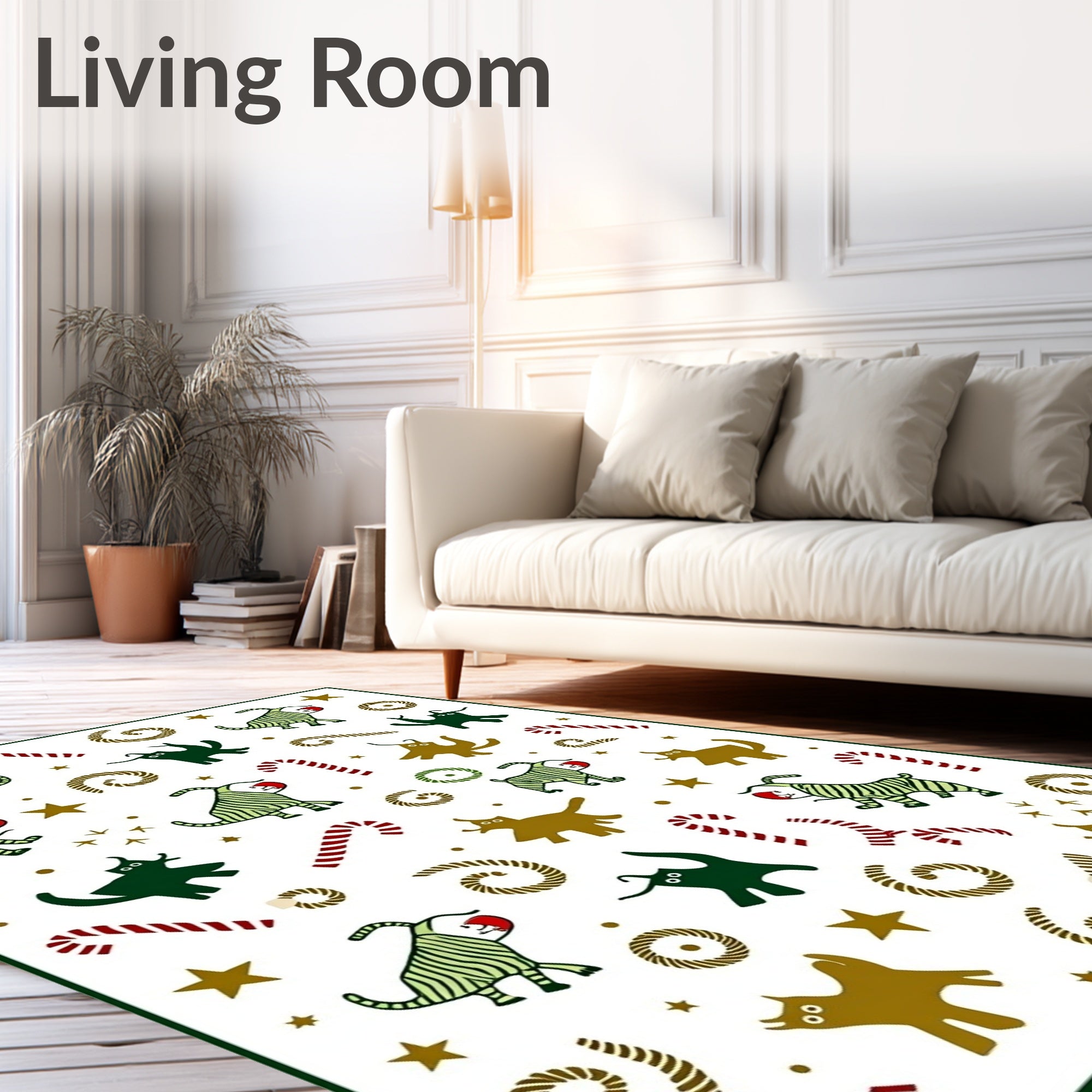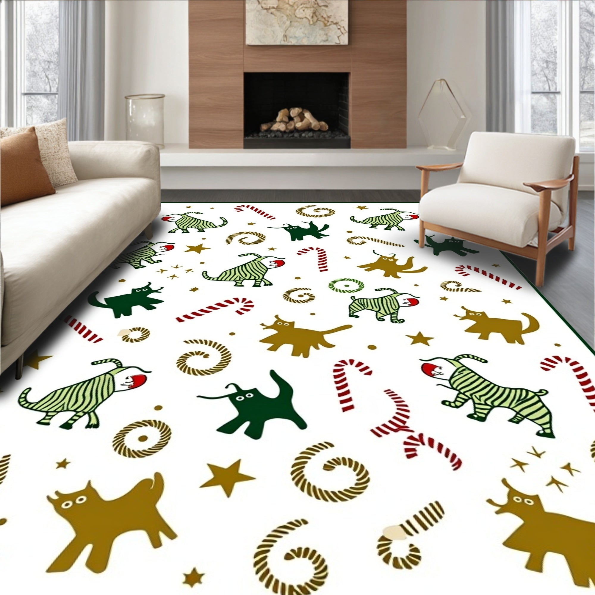 Ultra Soft Area Rug, Non Slip, Stain Resistant, Washable Area Rugs for Living Room, Bedroom, Cheerful Lighted Kitty Parade with Interlocking Christmas Icons(Green) Overview: