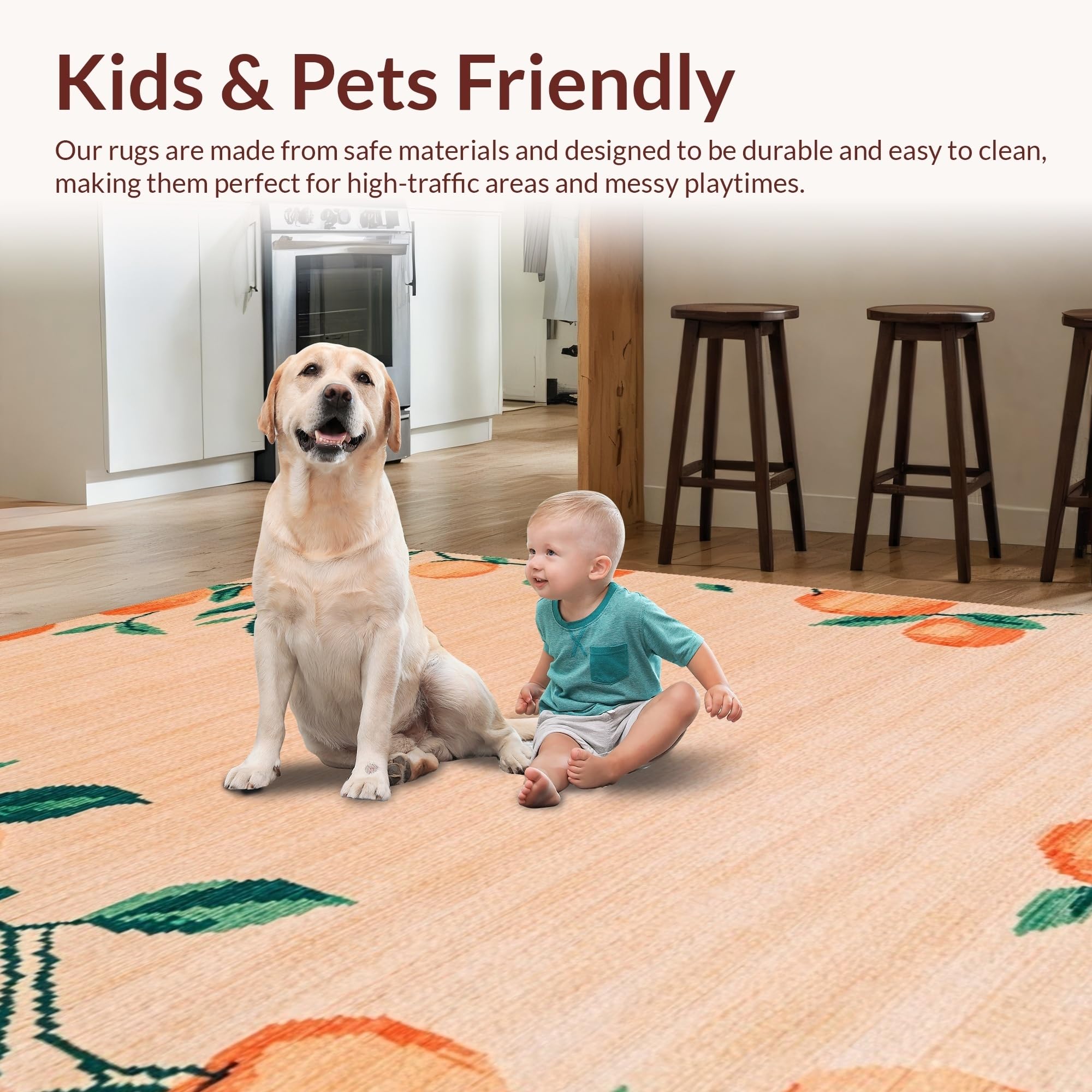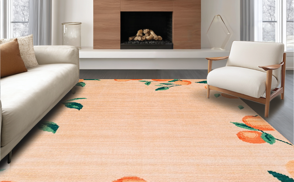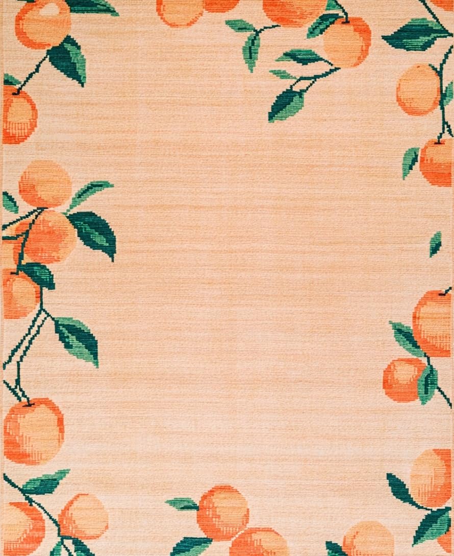 Ultra Soft Area Rug, Non Slip, Stain Resistant, Washable Area Rugs for Living Room, Bedroom, Cheerful Pastel Peach Artwork(Pink) Overview: