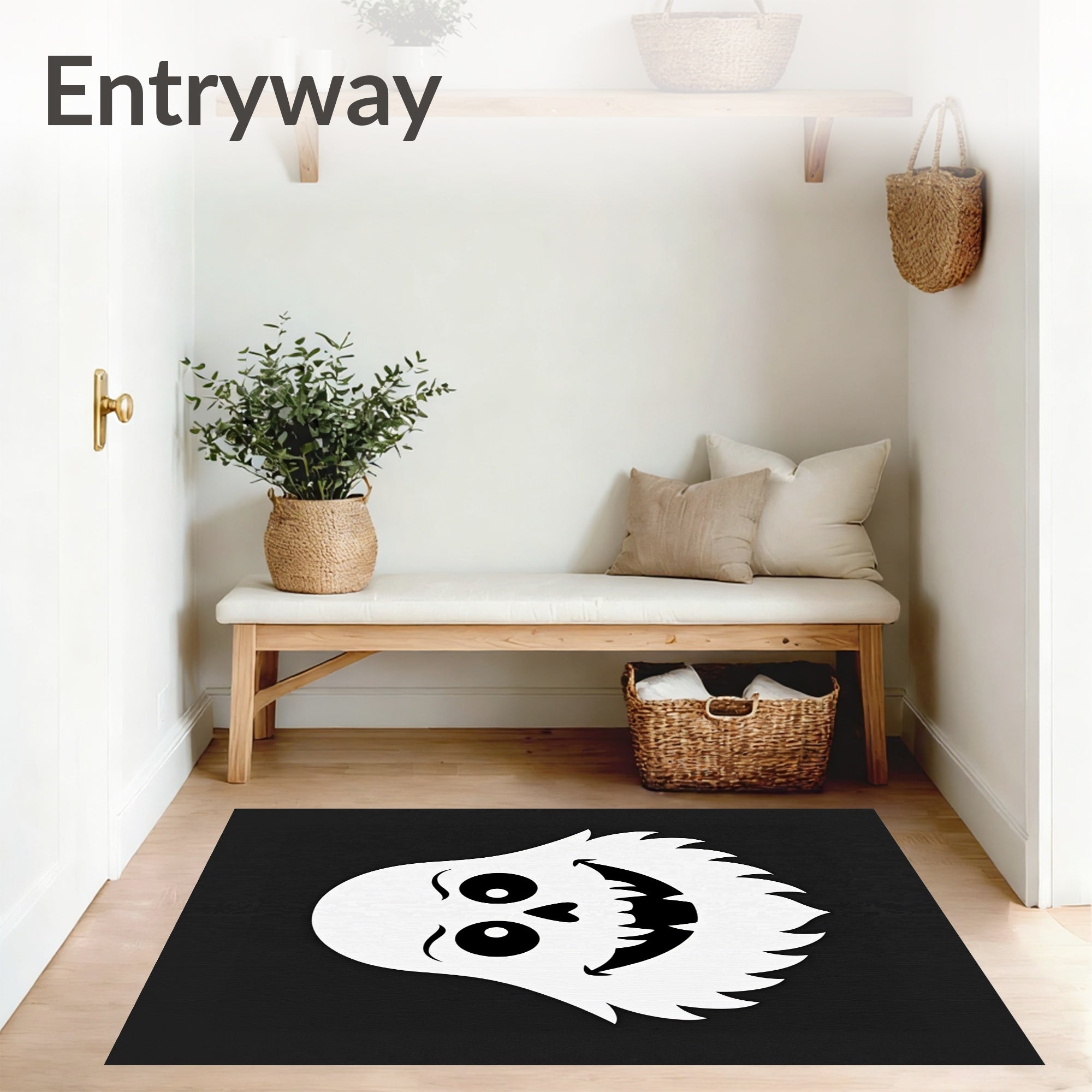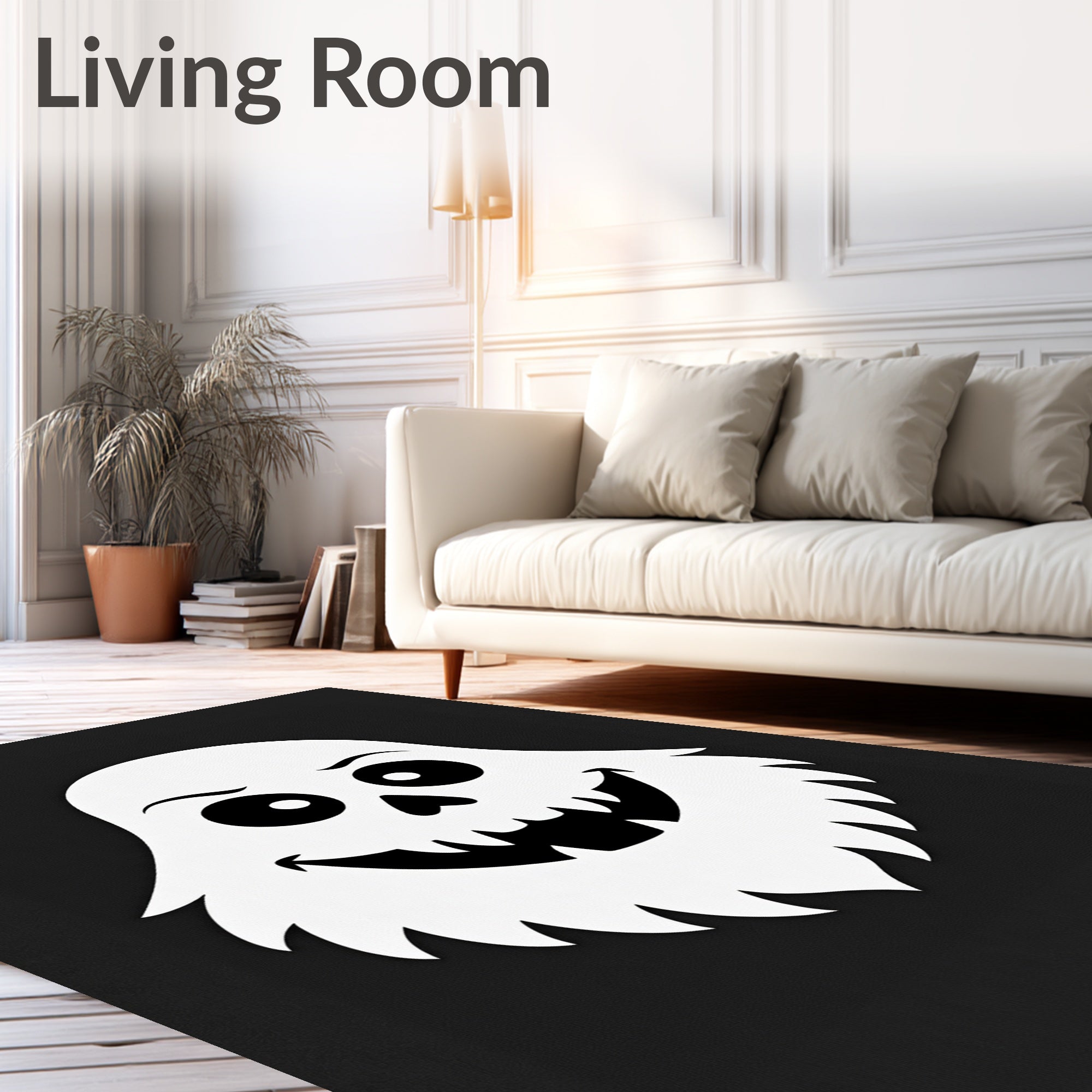 Ultra Soft Area Rug, Non Slip, Stain Resistant, Washable Area Rugs for Living Room, Bedroom, Cheerful Spectral Face Haunted Accent(Black) Overview: