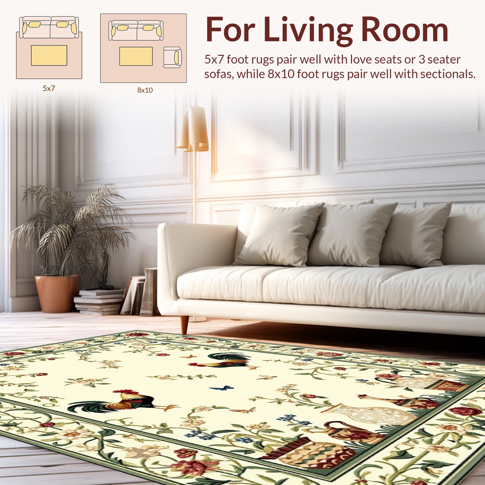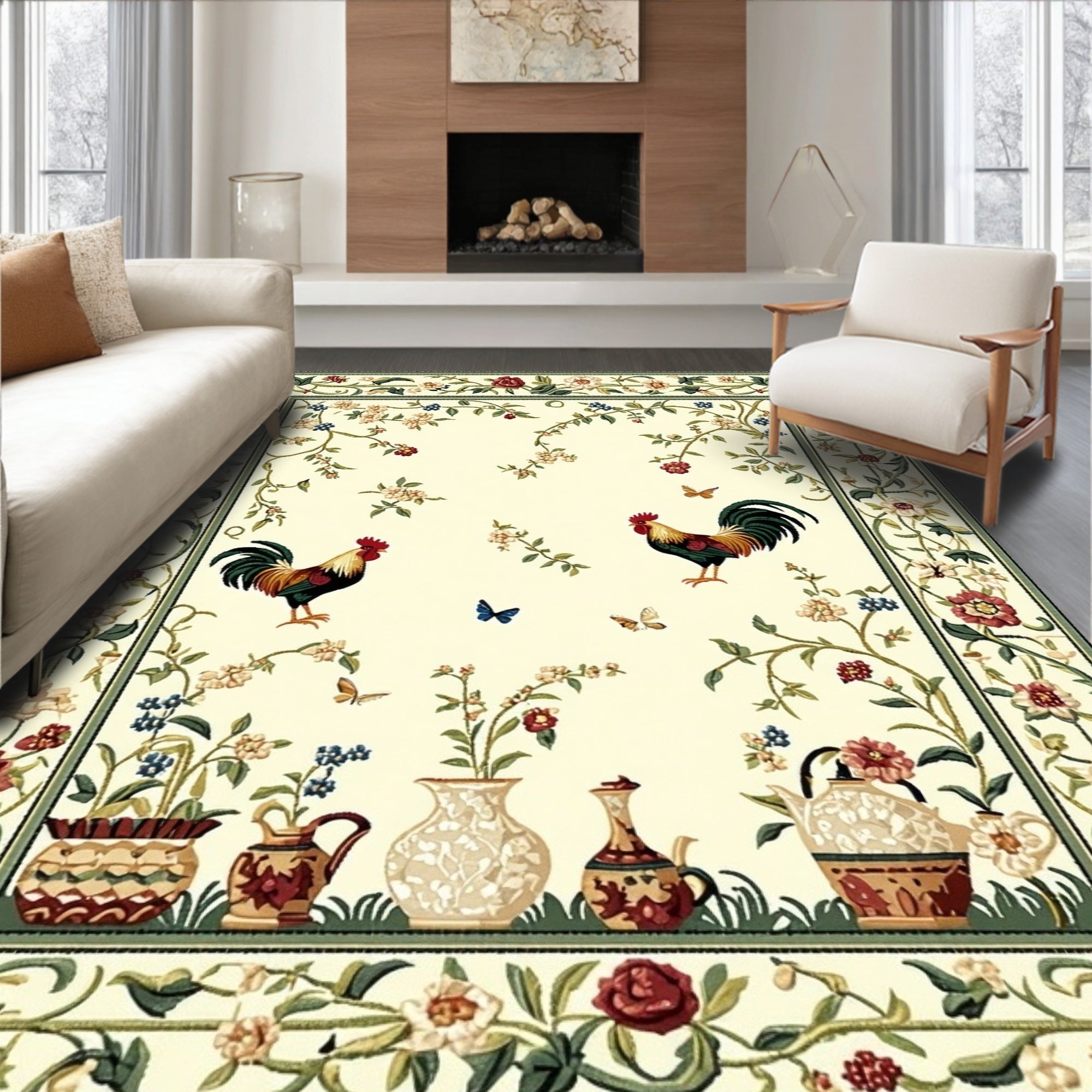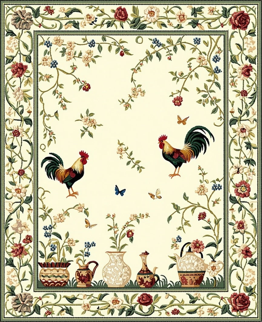 Ultra Soft Area Rug, Non Slip, Stain Resistant, Washable Area Rugs for Living Room, Bedroom, Chelsea Pastoral Rooster Hand Hooked Heritage Collection(Beige) Overview: