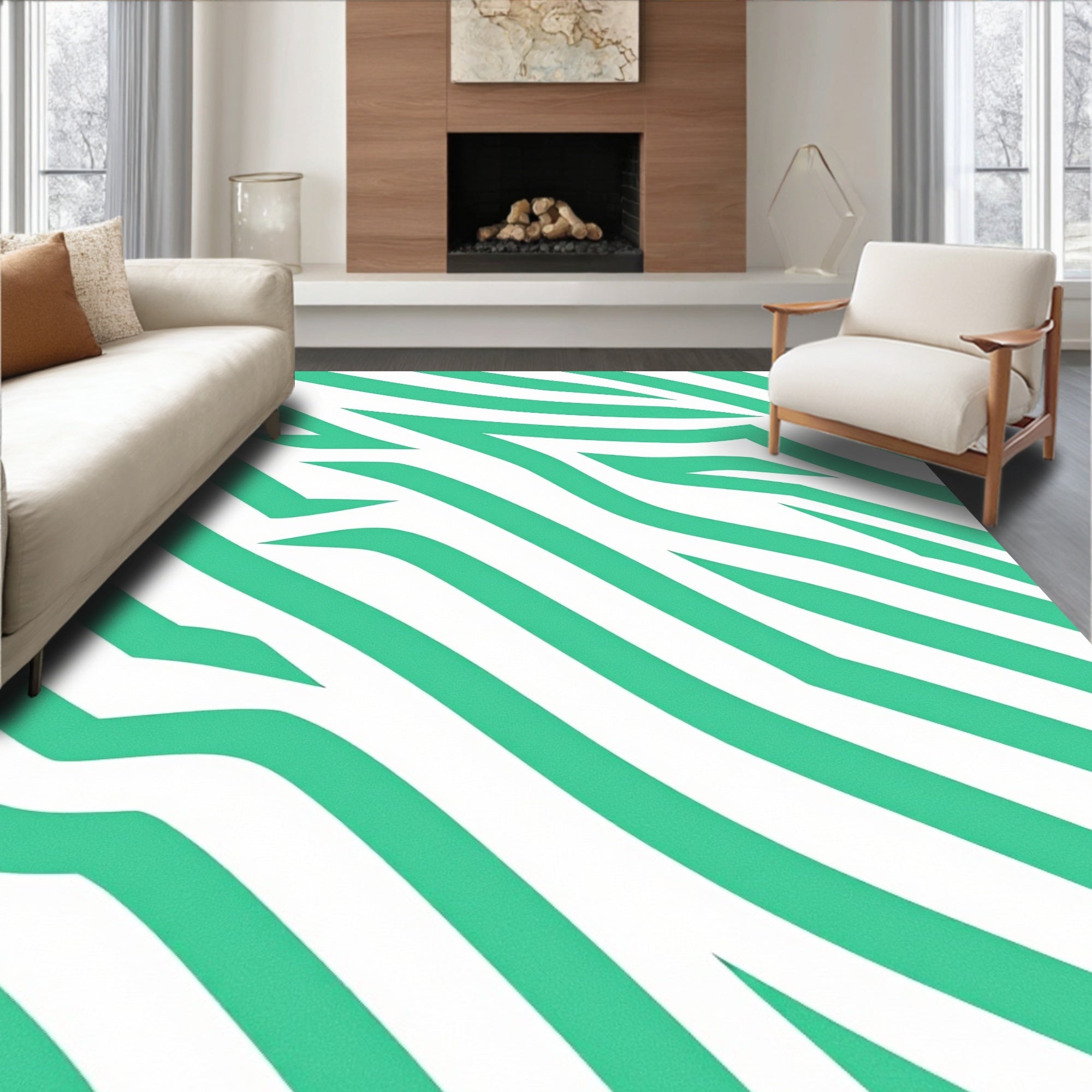 Ultra Soft Area Rug, Non Slip, Stain Resistant, Washable Area Rugs for Living Room, Bedroom, Chevron Striped Shag with Zigzag Design(White) Overview: