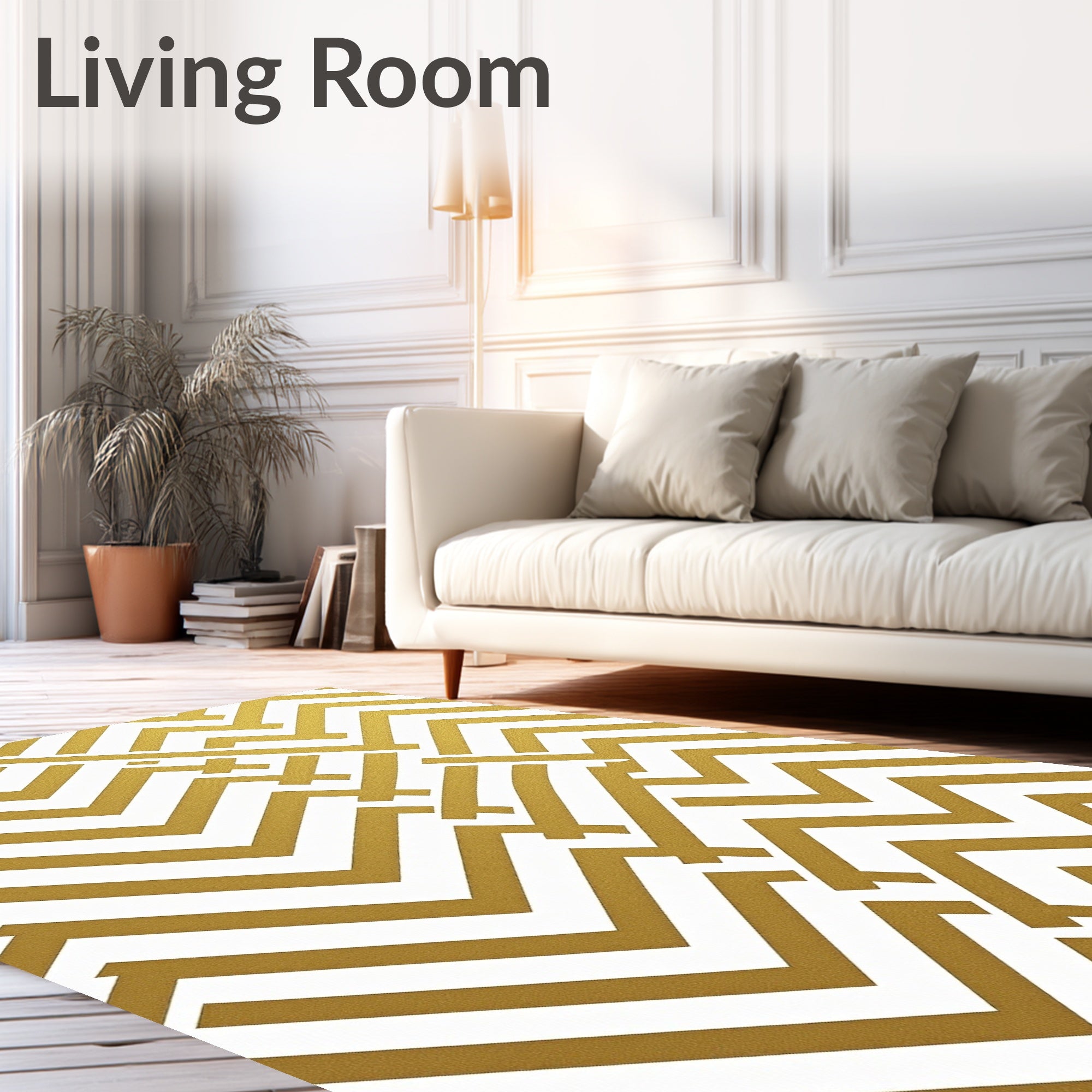 Ultra Soft Area Rug, Non Slip, Stain Resistant, Washable Area Rugs for Living Room, Bedroom, Chevron Zigzag Hallway with Point Details(Gold) Overview:
