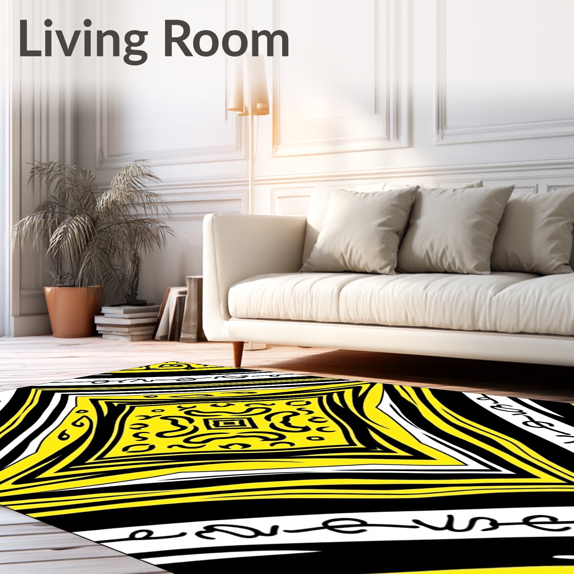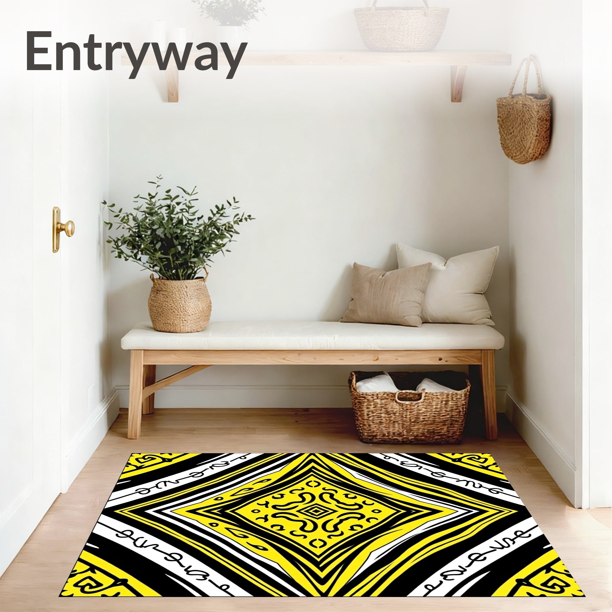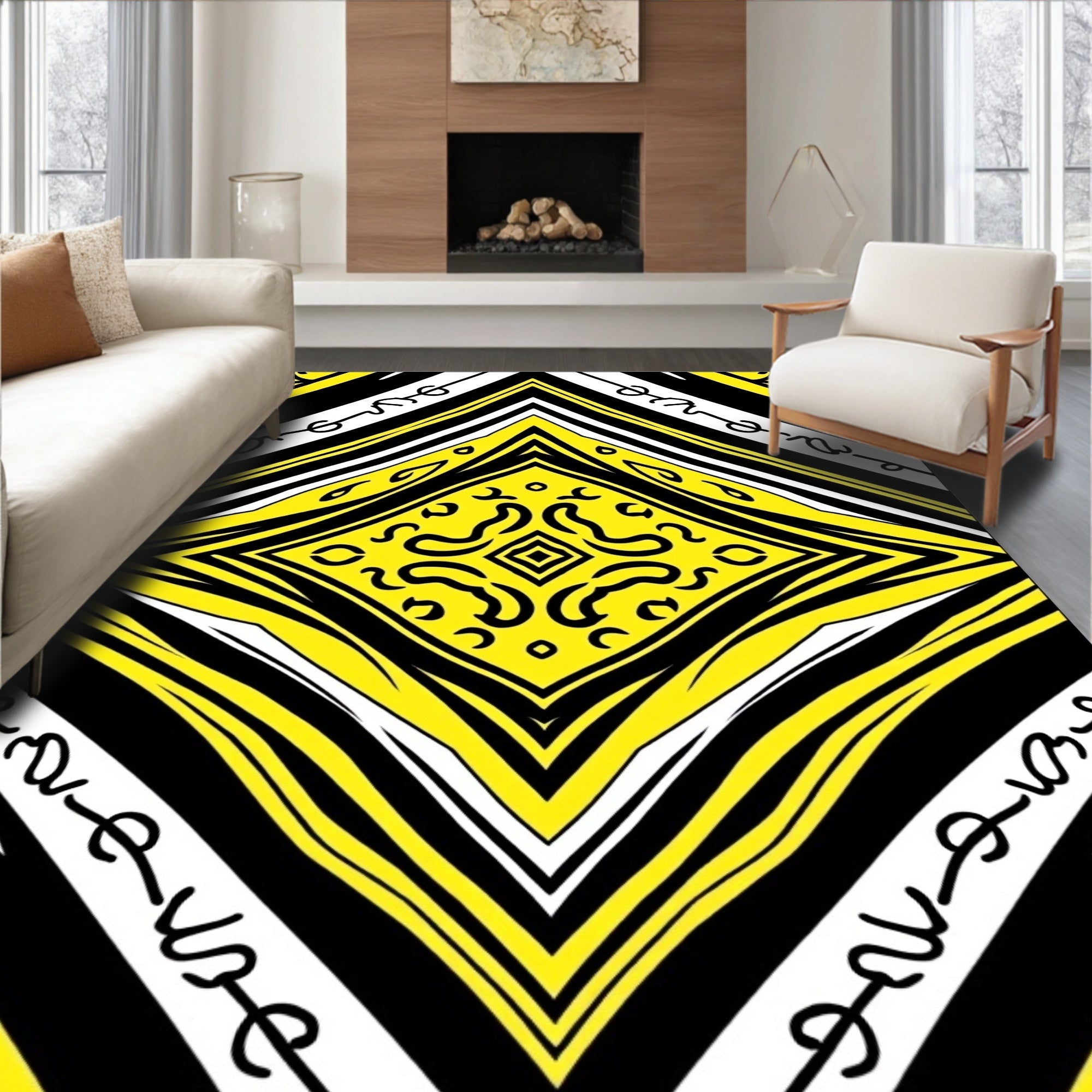 Ultra Soft Area Rug, Non Slip, Stain Resistant, Washable Area Rugs for Living Room, Bedroom, Chevron Zigzag Shag with Boho Motifs(Yellow) Overview: