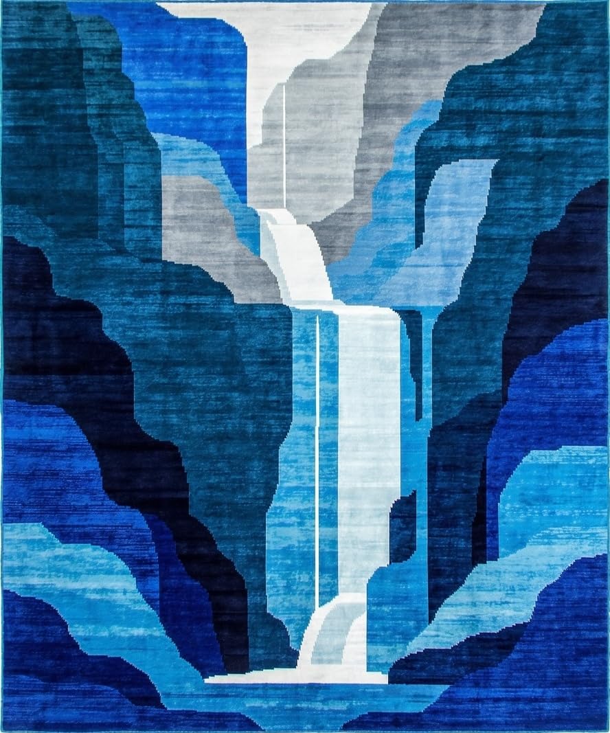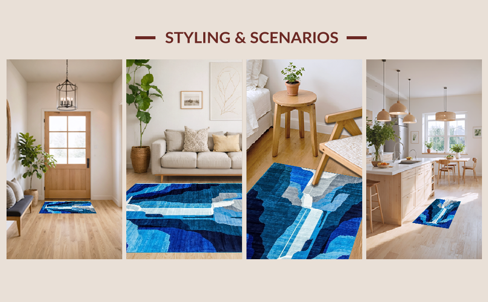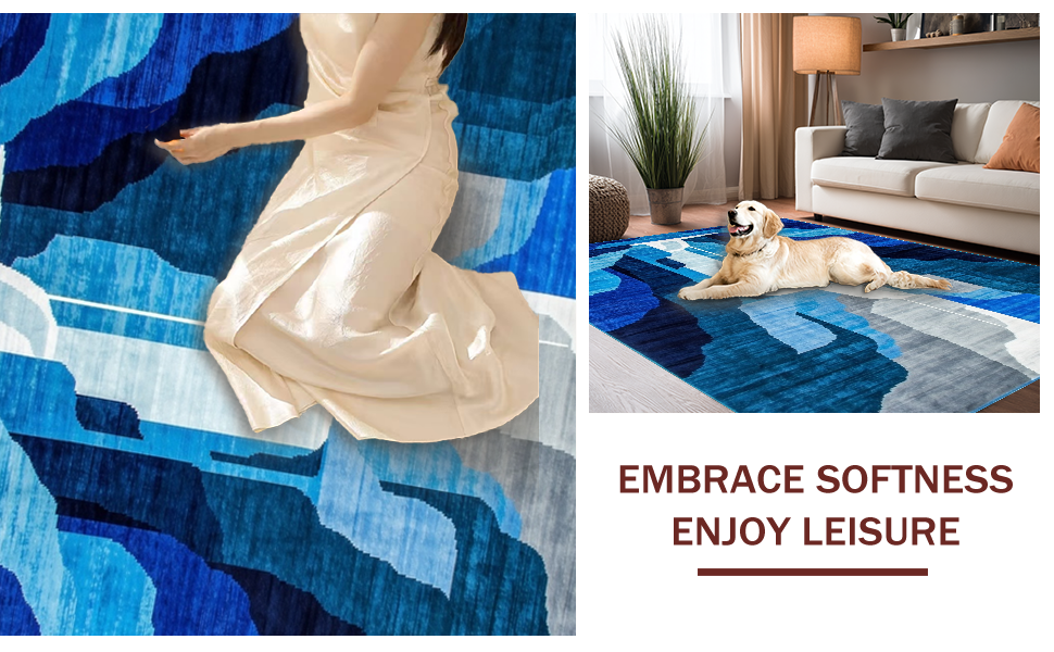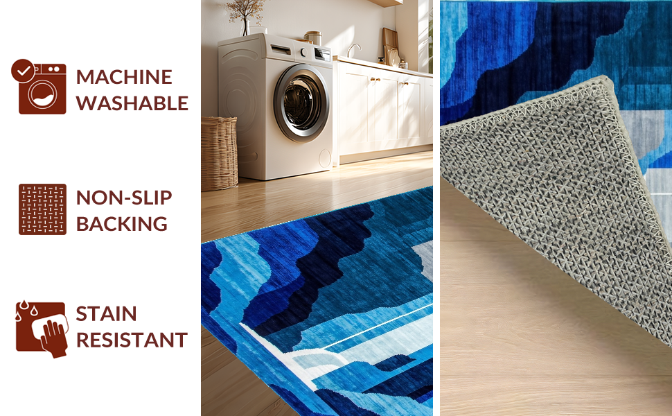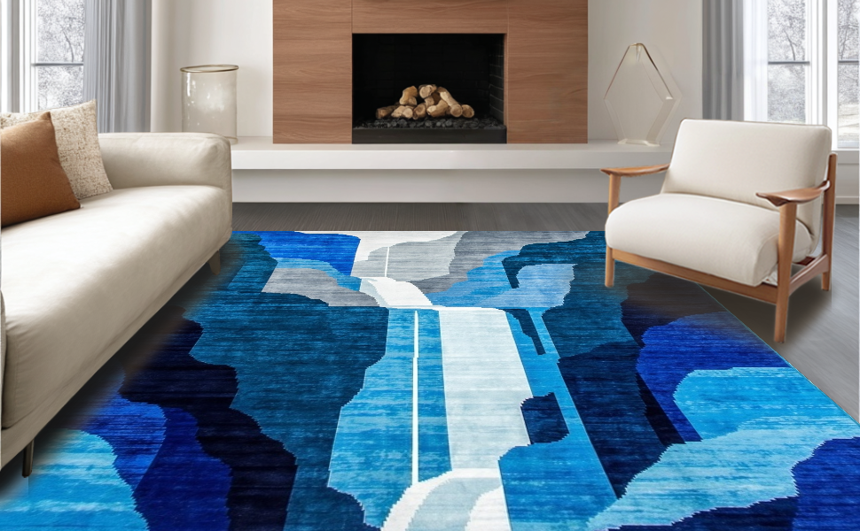 Ultra Soft Area Rug, Non Slip, Stain Resistant, Washable Area Rugs for Living Room, Bedroom, Chic Abstract Cascade Design(Blue) Overview: