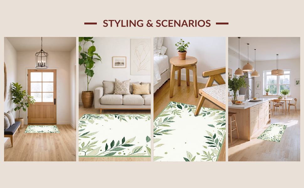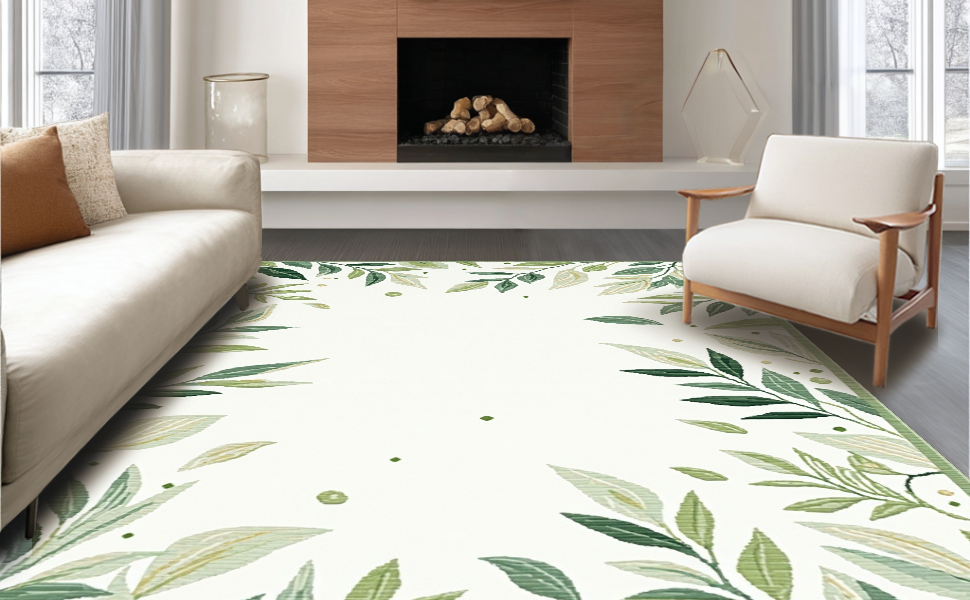 Ultra Soft Area Rug, Non Slip, Stain Resistant, Washable Area Rugs for Living Room, Bedroom, Chic Abstract Greenery Pattern(Ivory) Overview: