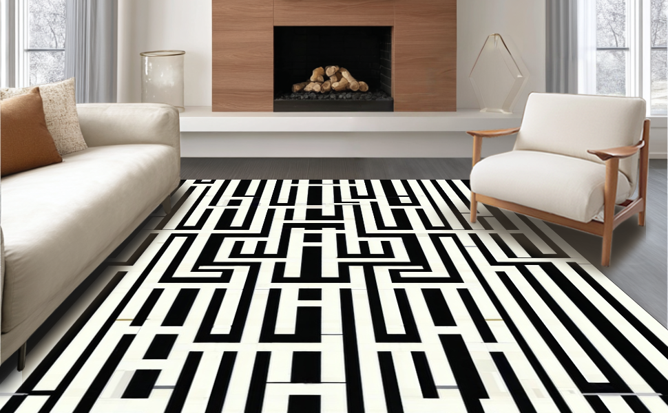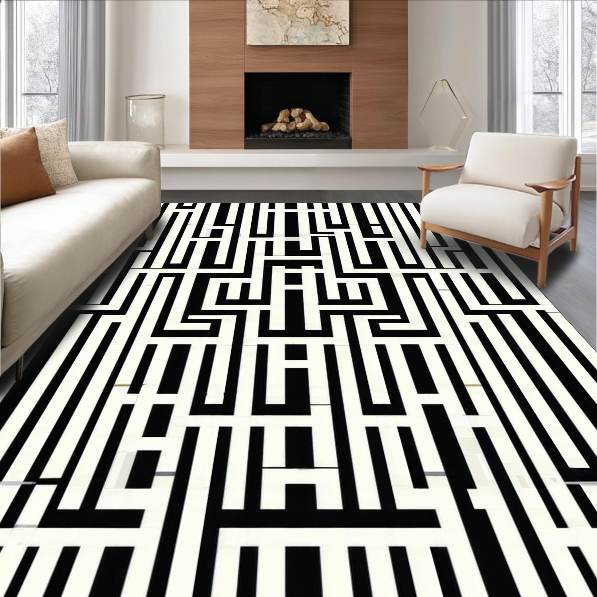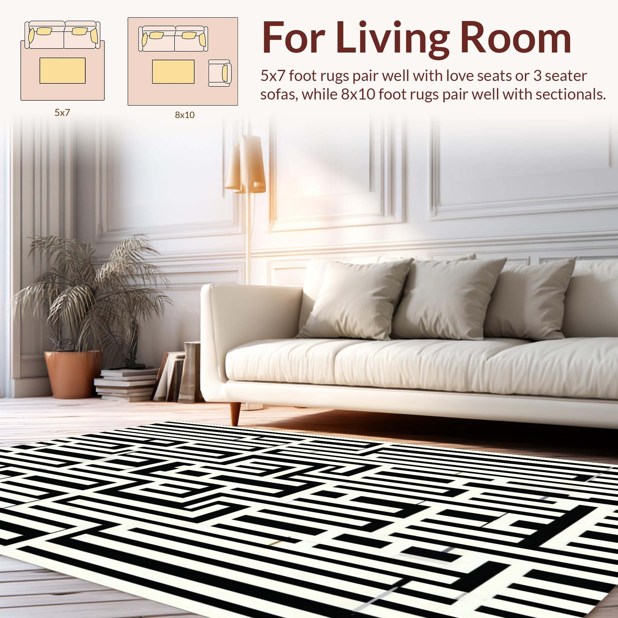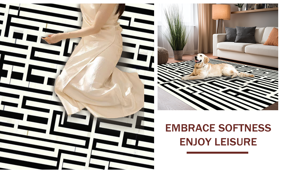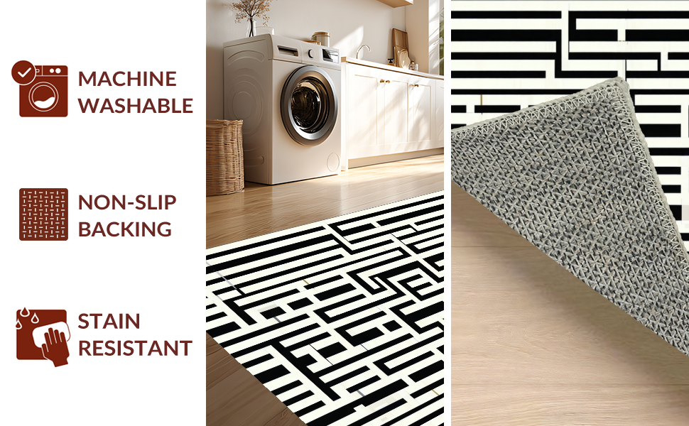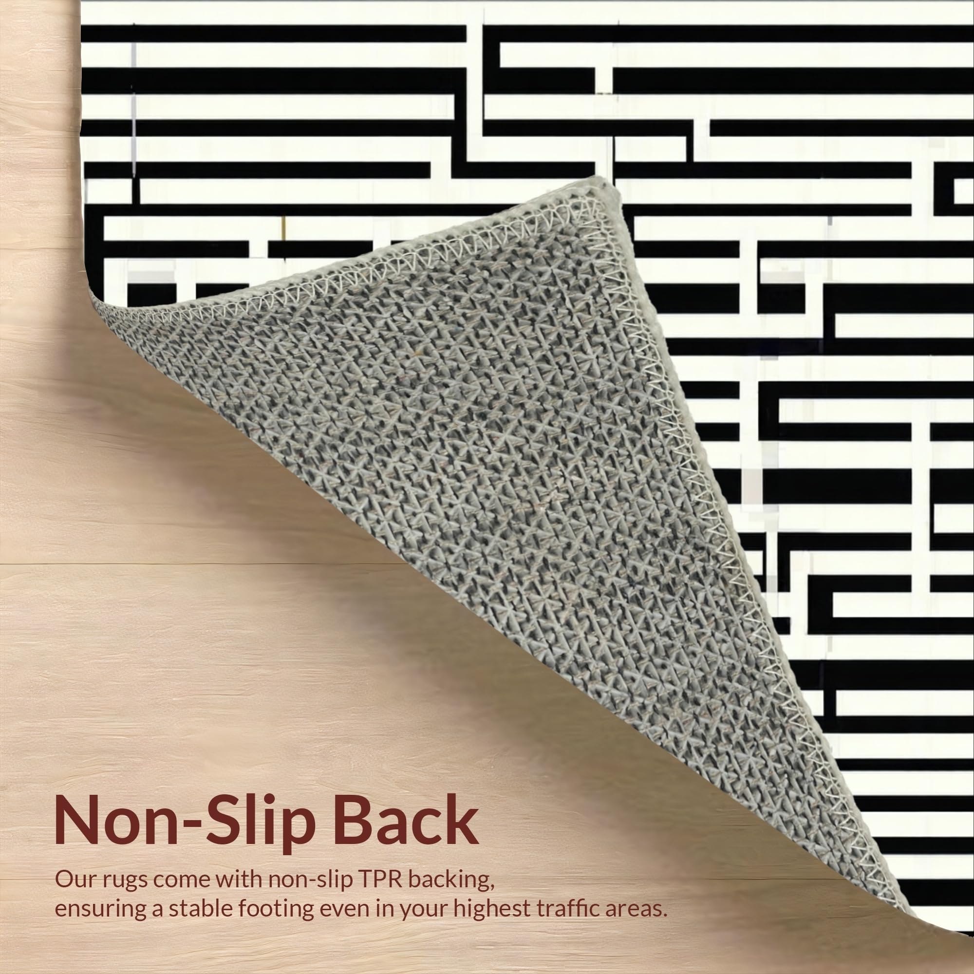 Ultra Soft Area Rug, Non Slip, Stain Resistant, Washable Area Rugs for Living Room, Bedroom, Chic Abstract Tiled Aesthetic Appeal(Black) Overview: