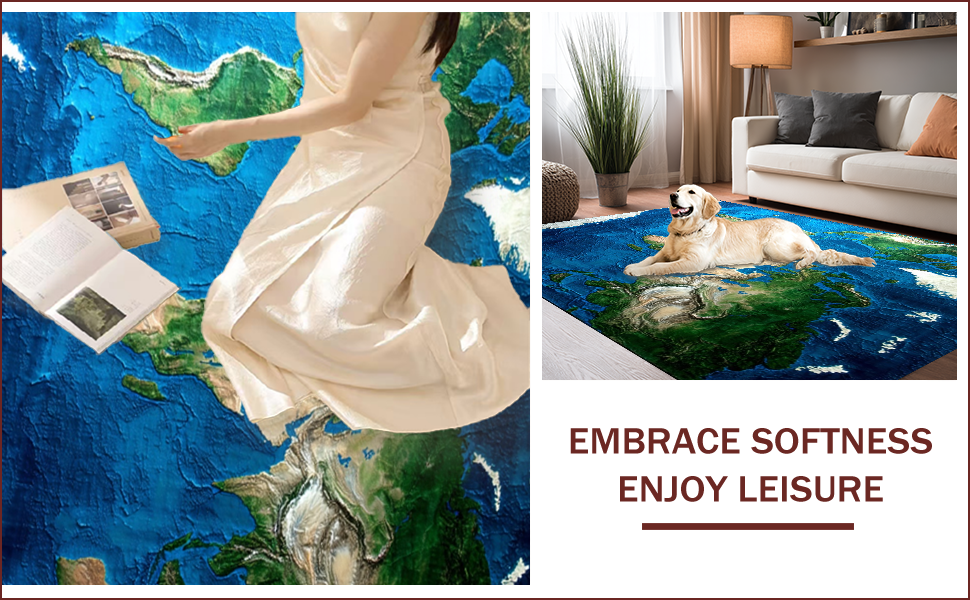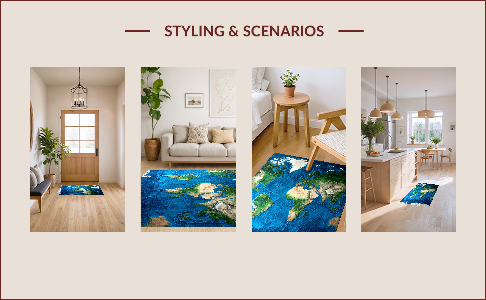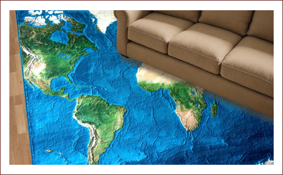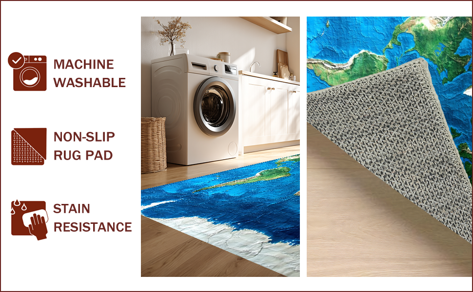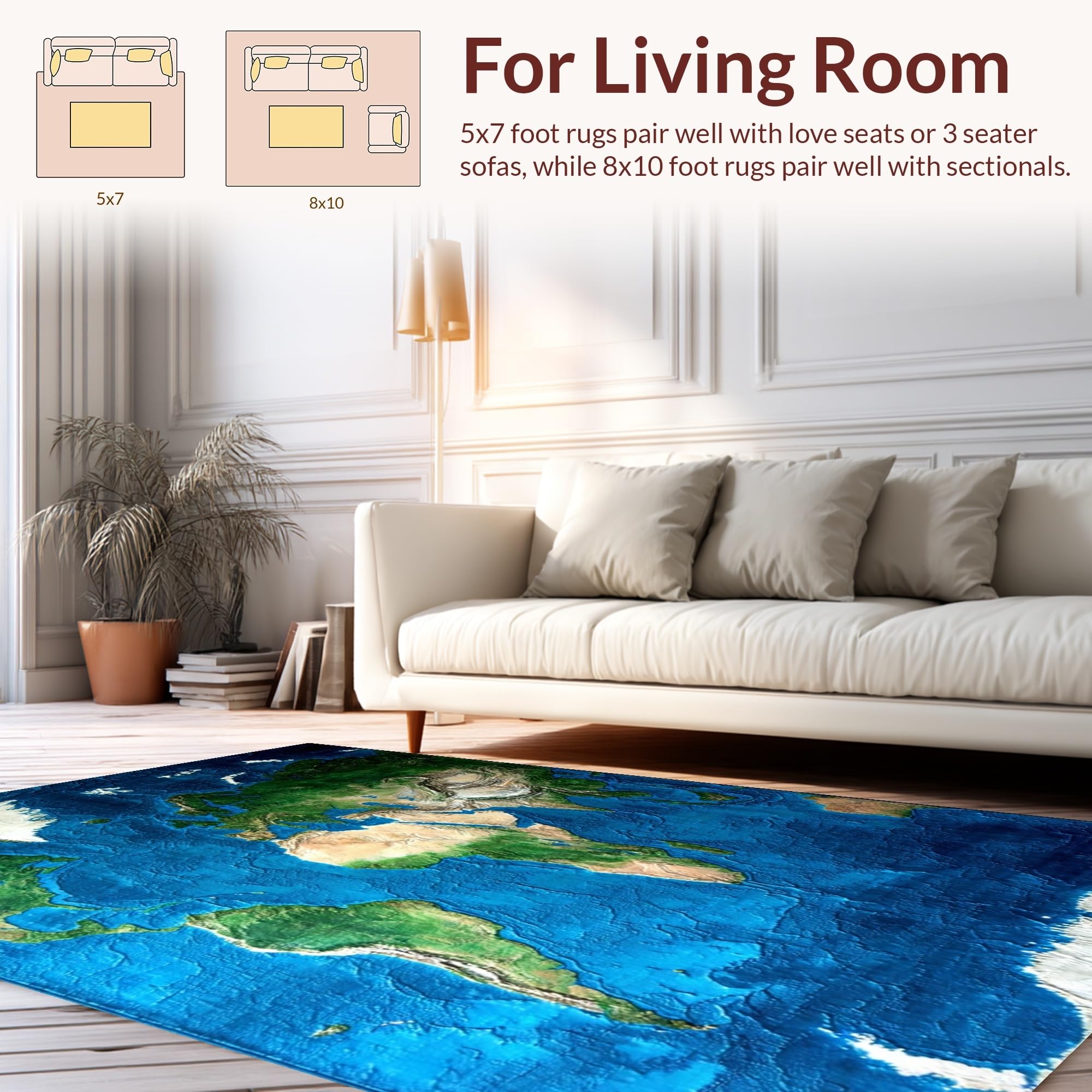 Ultra Soft Area Rug, Non Slip, Stain Resistant, Washable Area Rugs for Living Room, Bedroom, Chic Abstract World Map Aesthetic(Blue) Overview: