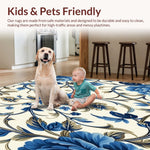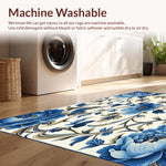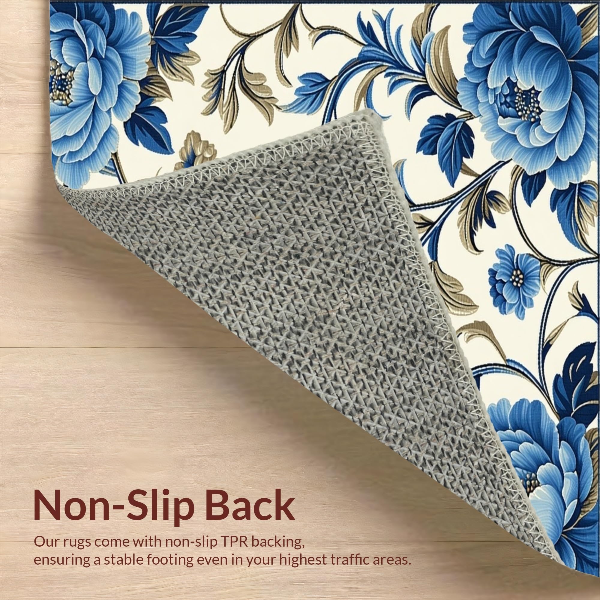 Ultra Soft Area Rug, Non Slip, Stain Resistant, Washable Area Rugs for Living Room, Bedroom, Chic Accent Featuring Navy and Beige Floral Motifs(Blue) Overview: