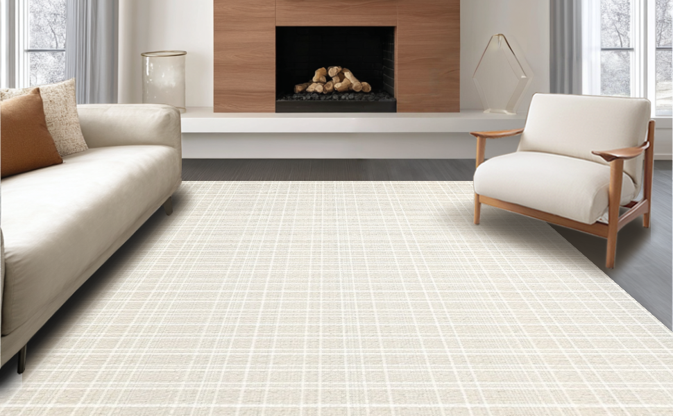 Ultra Soft Area Rug, Non Slip, Stain Resistant, Washable Area Rugs for Living Room, Bedroom, Chic Almond Textured Tiled Motif(Beige) Overview: