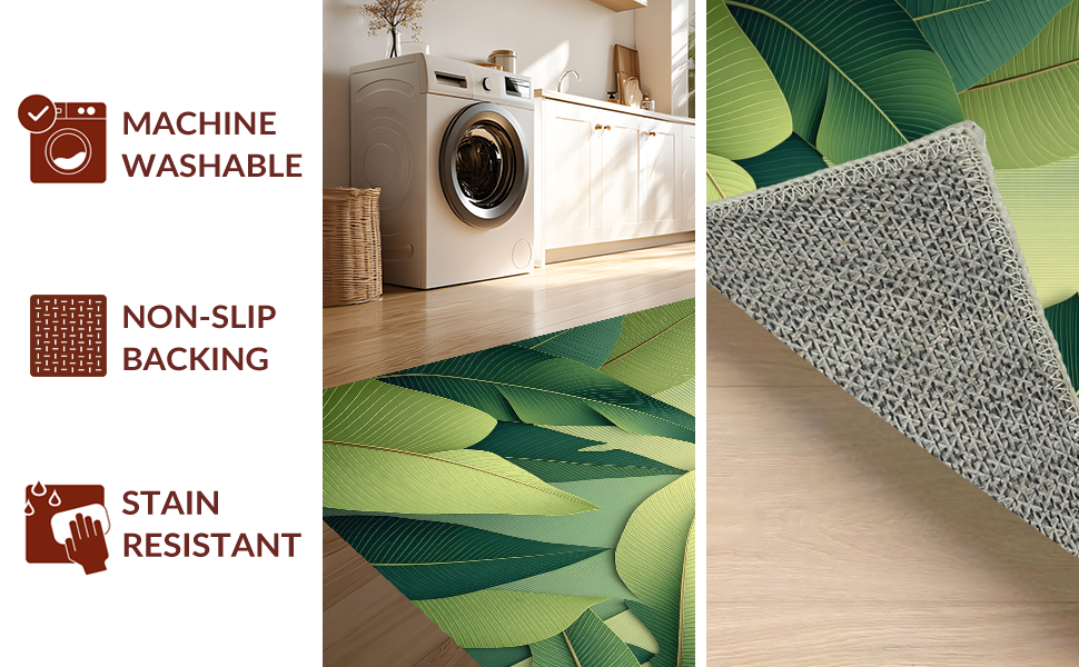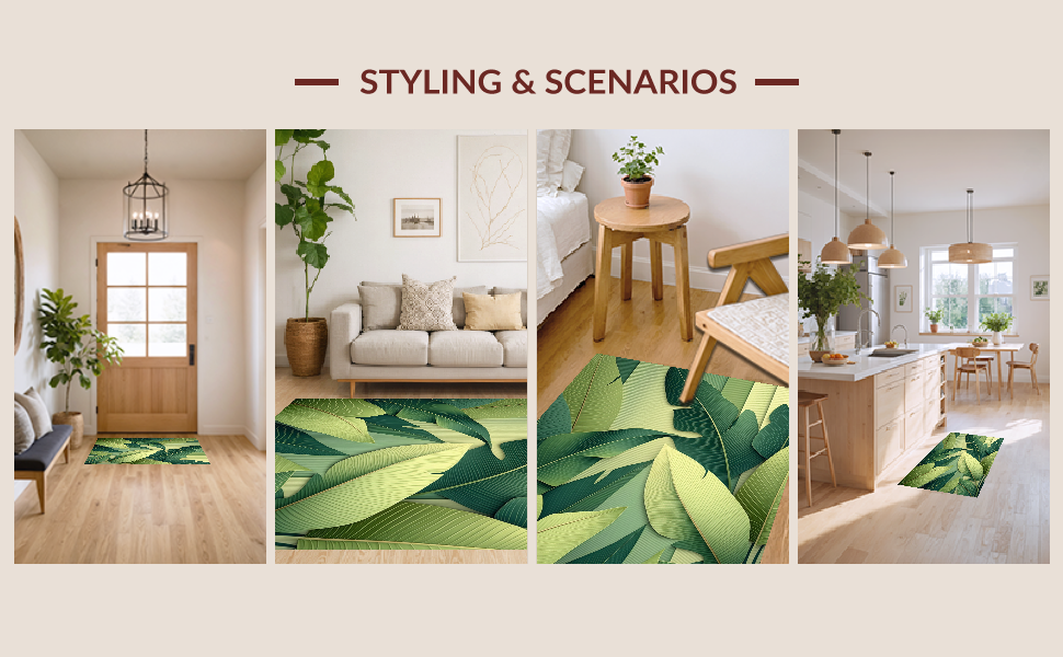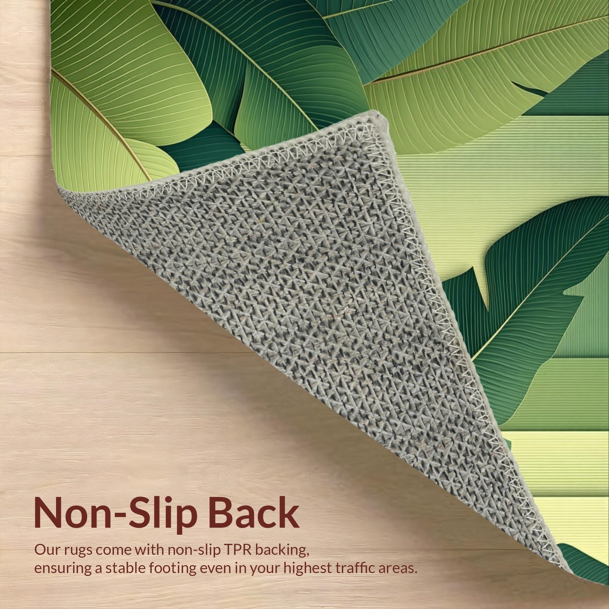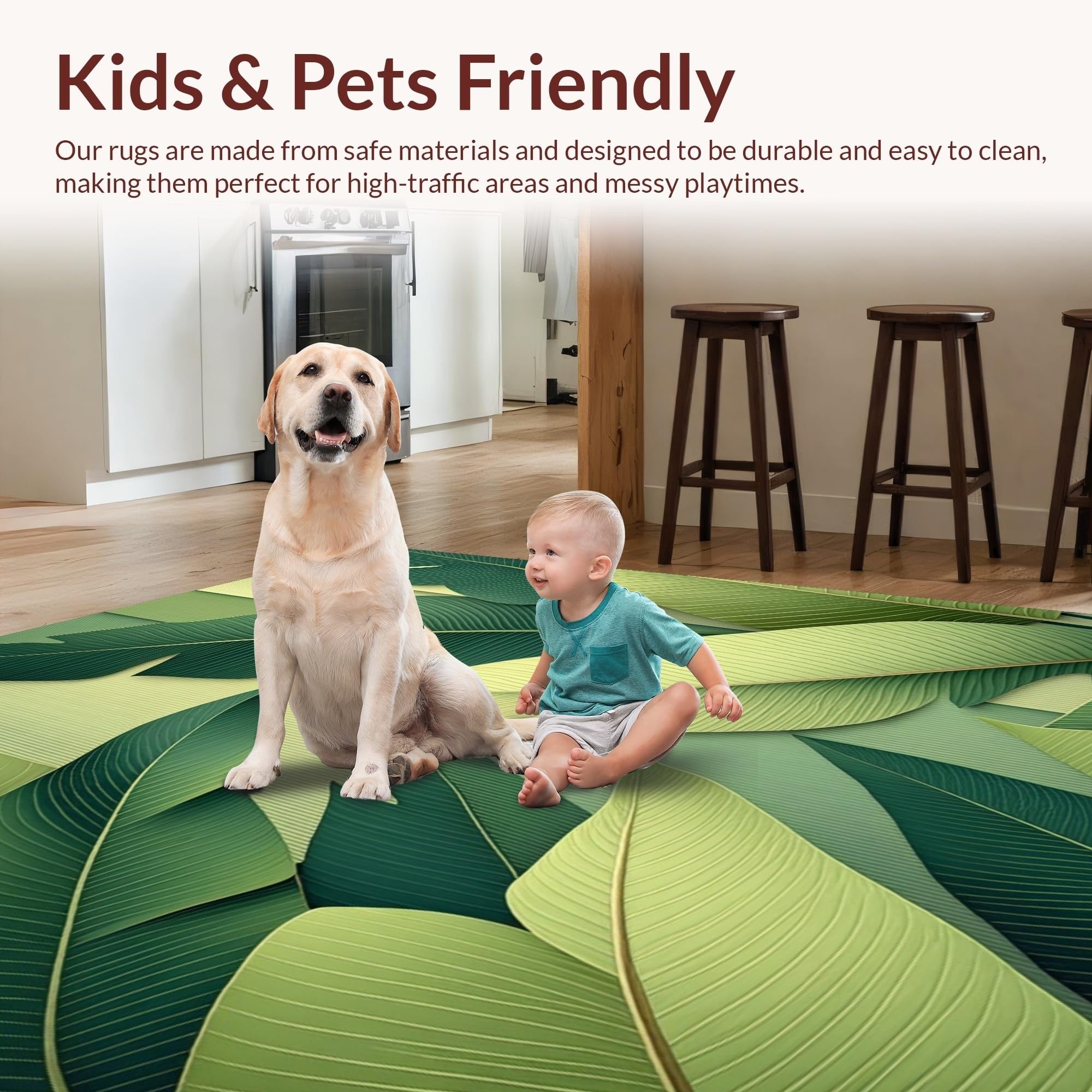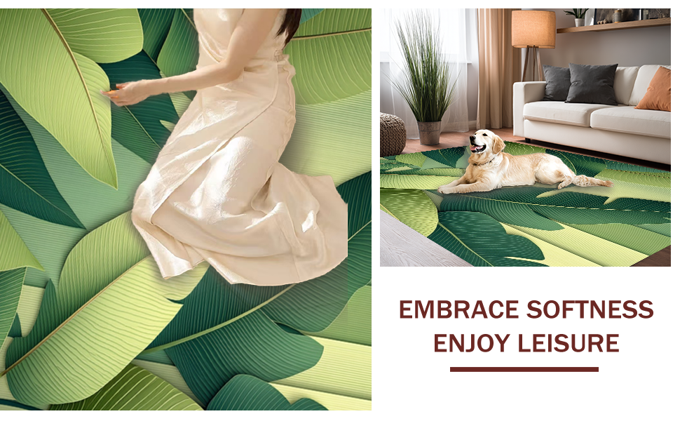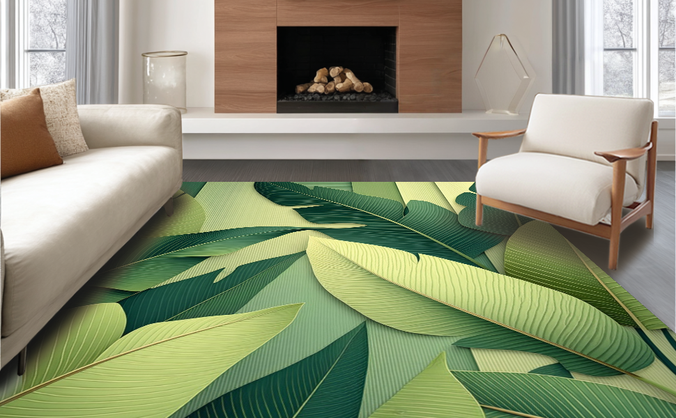 Ultra Soft Area Rug, Non Slip, Stain Resistant, Washable Area Rugs for Living Room, Bedroom, Chic Alocasia Inspired Decor(Green) Overview: