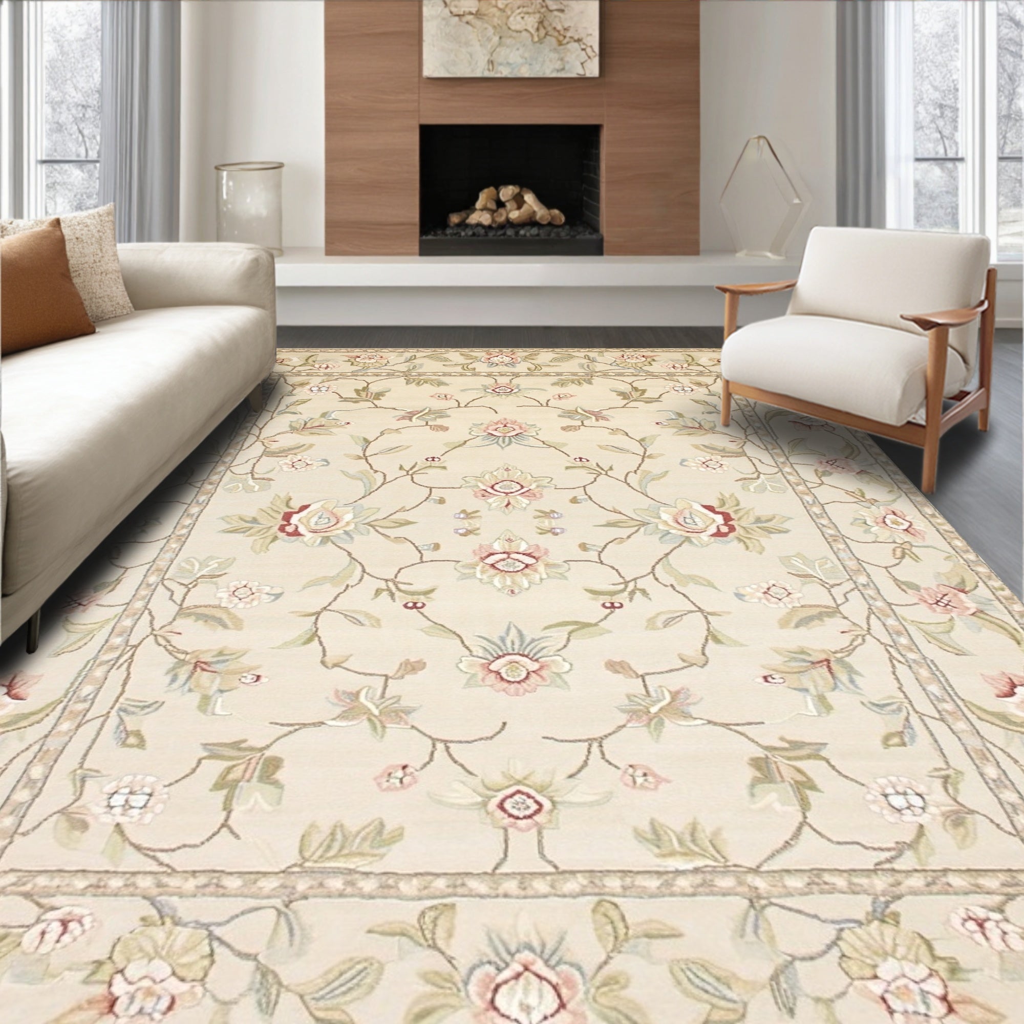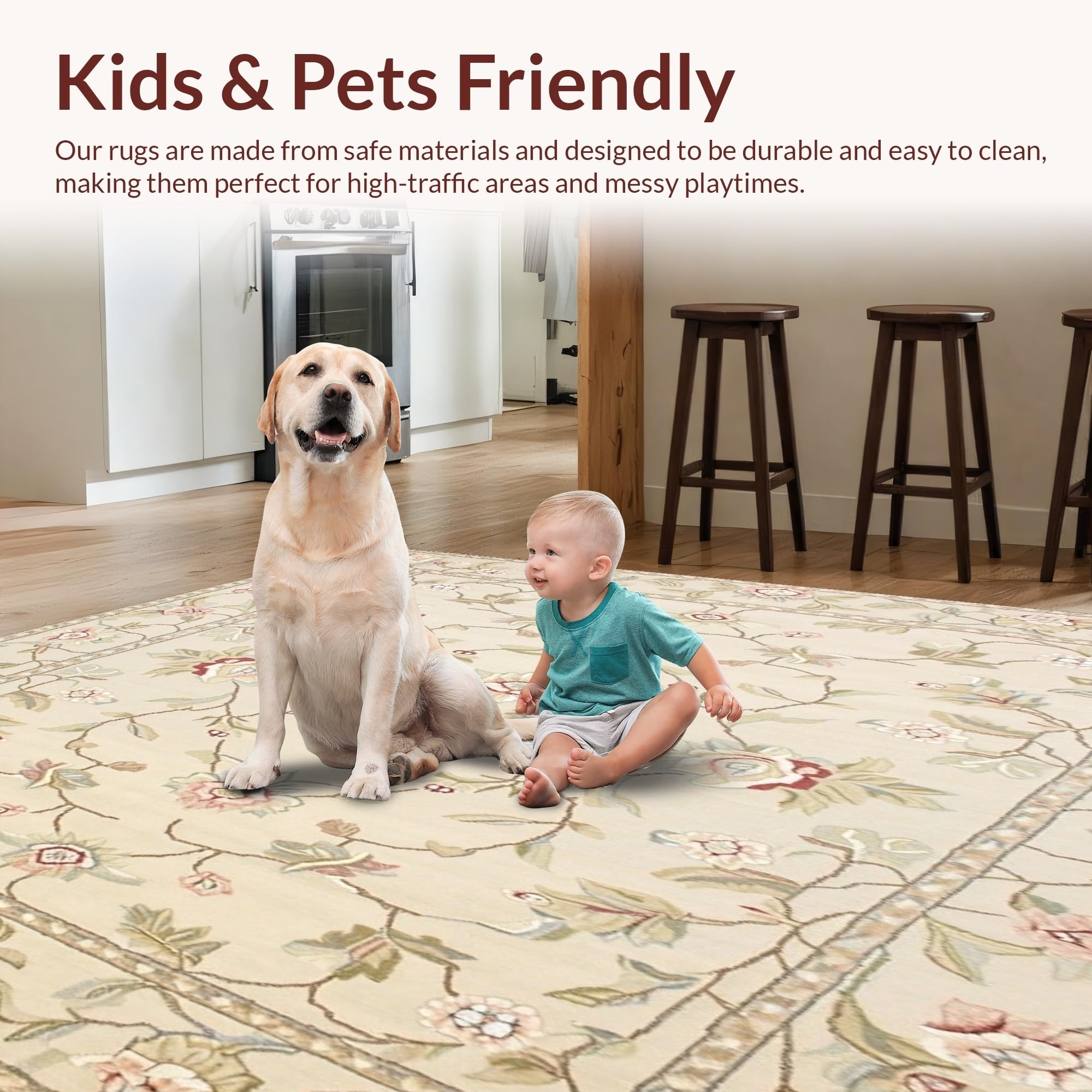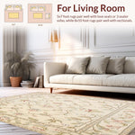 Ultra Soft Area Rug, Non Slip, Stain Resistant, Washable Area Rugs for Living Room, Bedroom, Chic and Versatile with Artistic Floral Motifs in Neutral Beige(Beige) Overview: