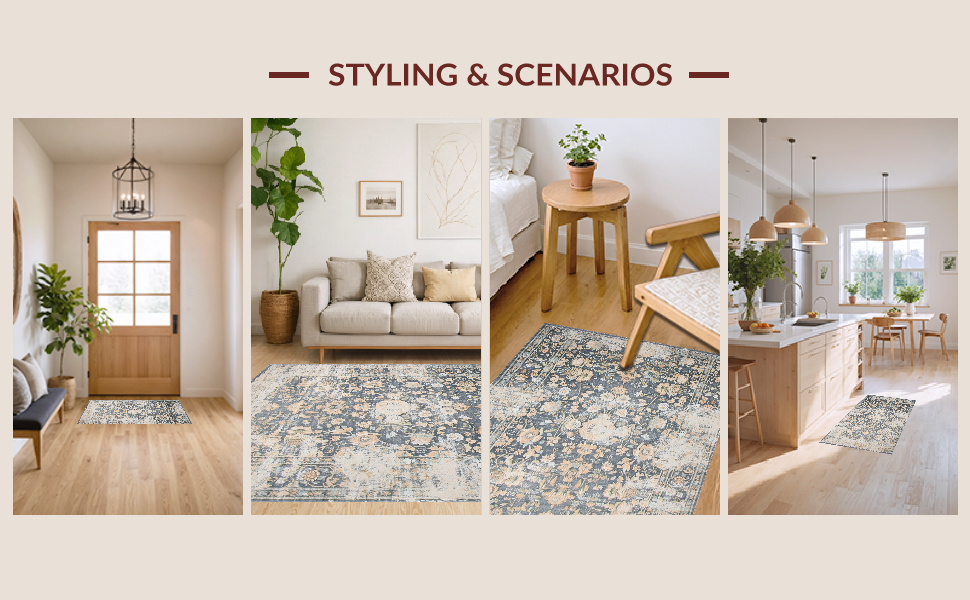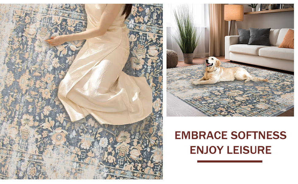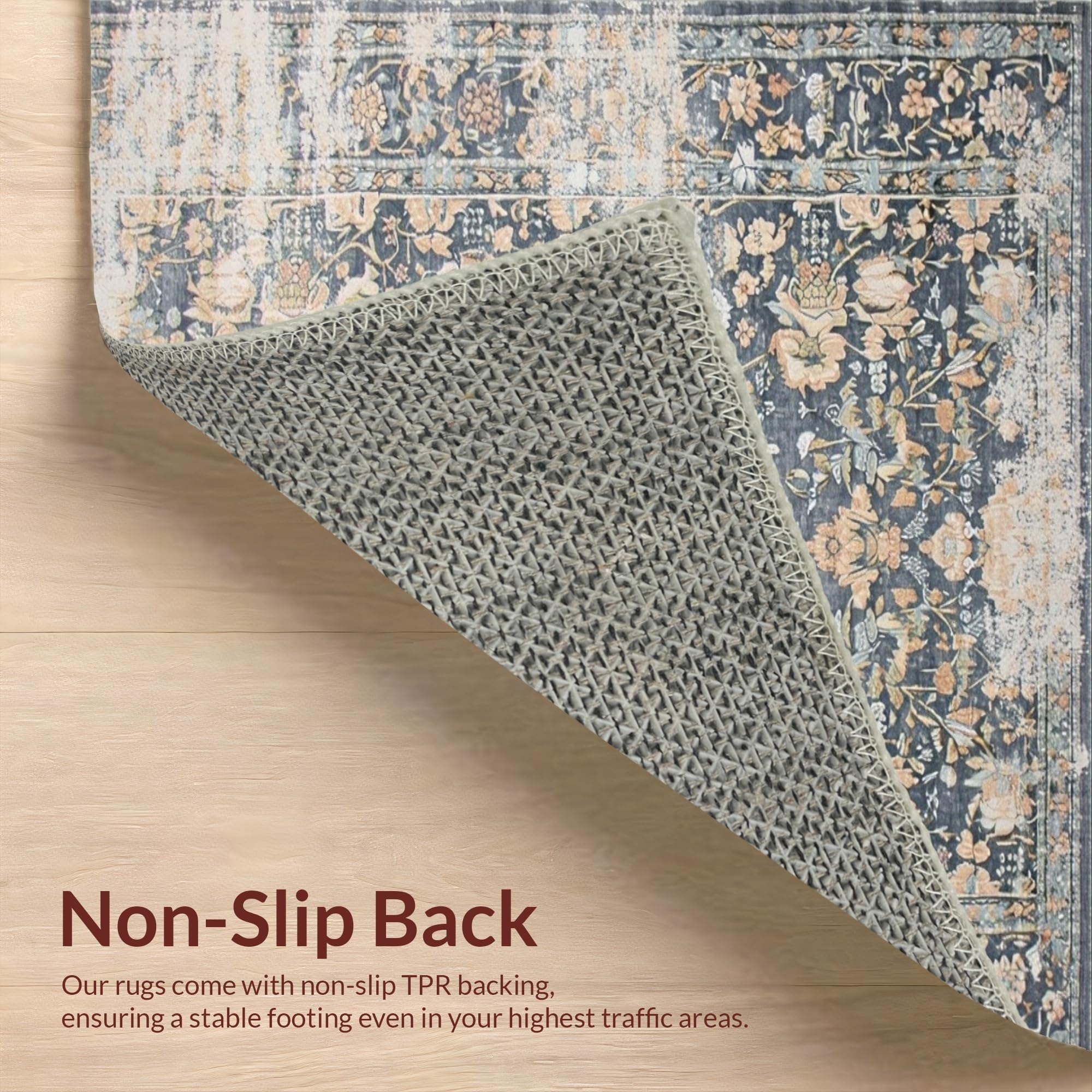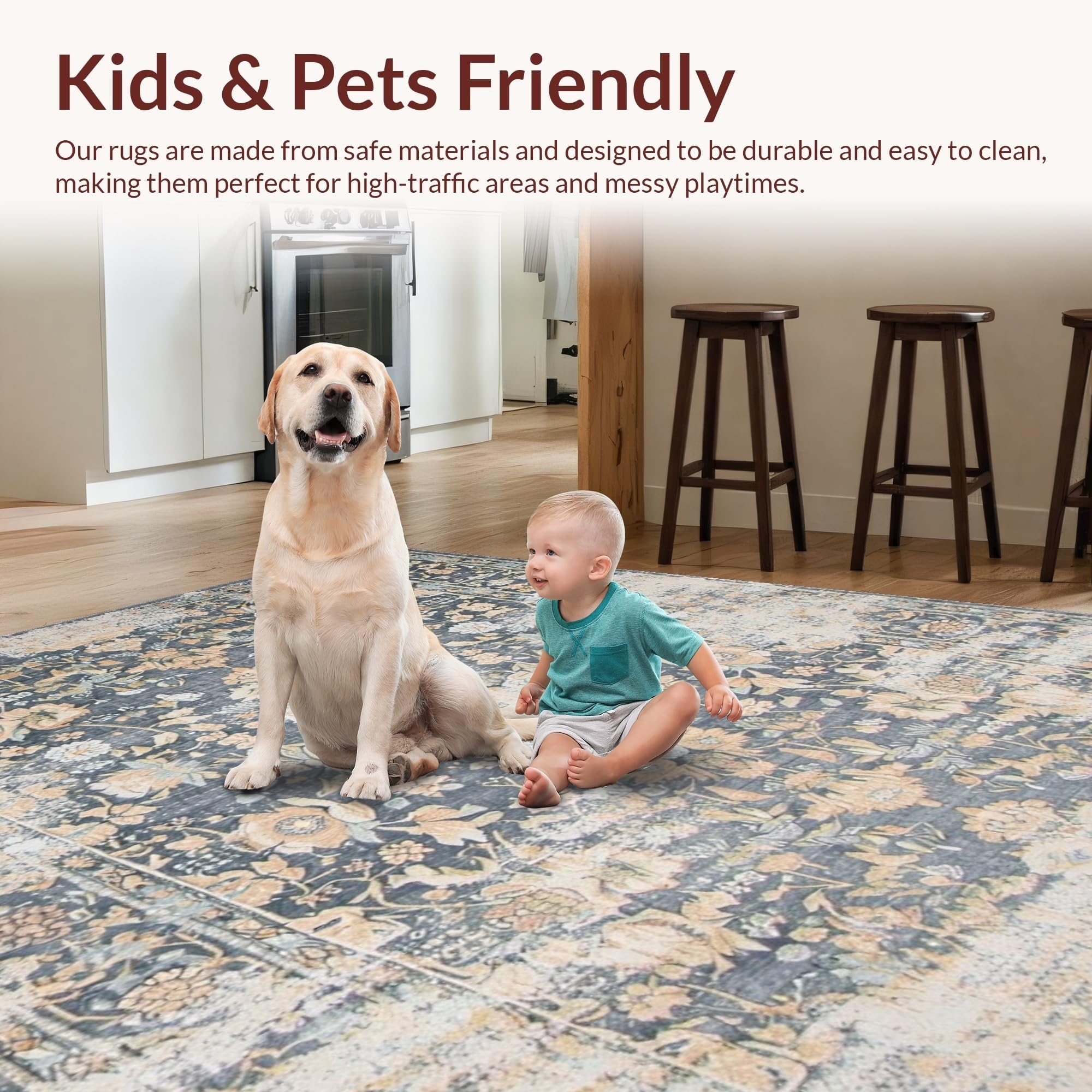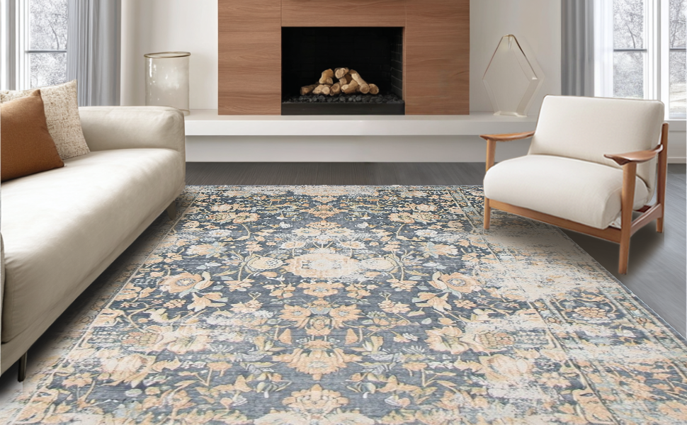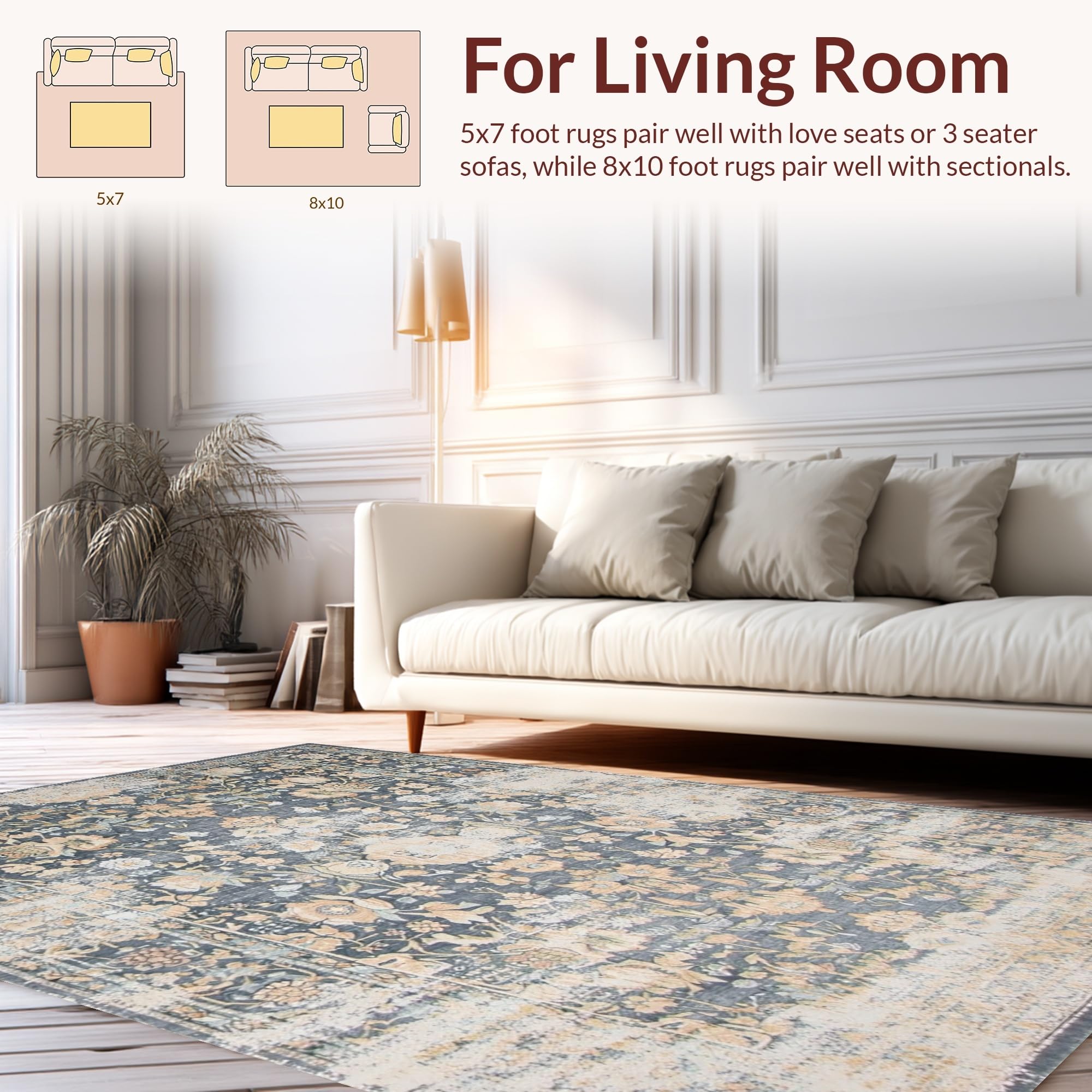 Ultra Soft Area Rug, Non Slip, Stain Resistant, Washable Area Rugs for Living Room, Bedroom, Chic Antique Medallion Aesthetic(Gray) Overview: