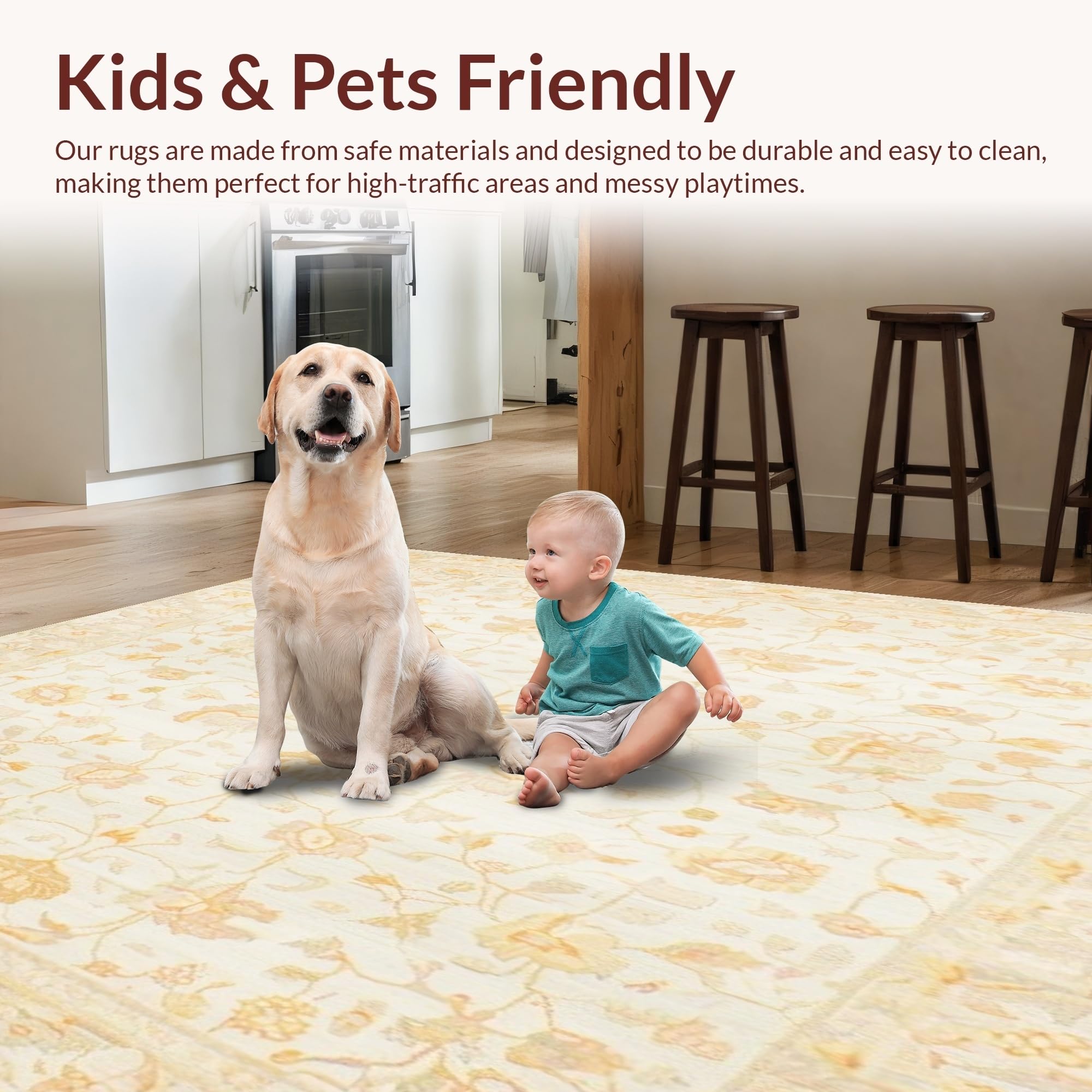 Ultra Soft Area Rug, Non Slip, Stain Resistant, Washable Area Rugs for Living Room, Bedroom, Chic Area with Abstract Floral Motifs in Light Tan and Ivory Hues(Ivory) Overview: