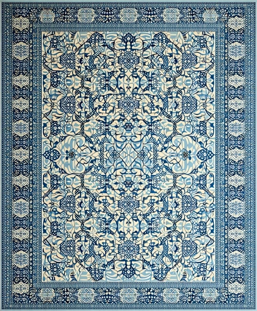 Chic Area with Striking Blue and Beige Abstract Motifs for Spaces(Blue)