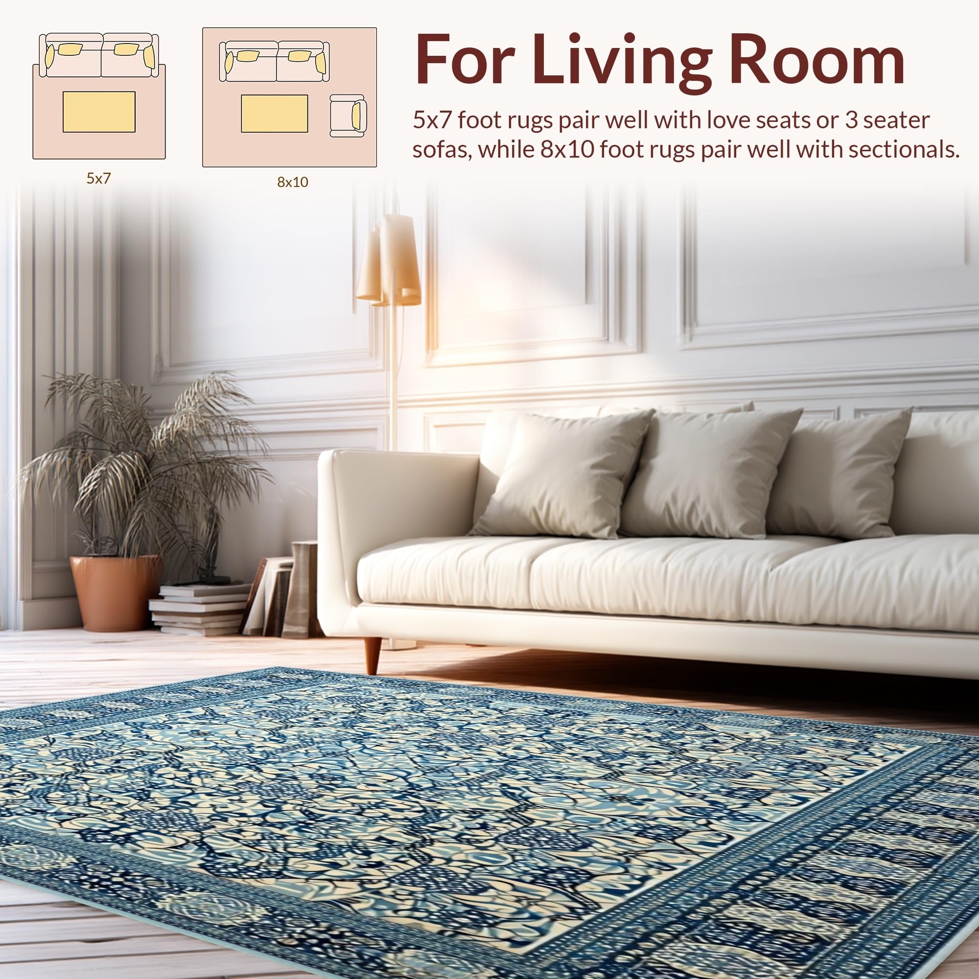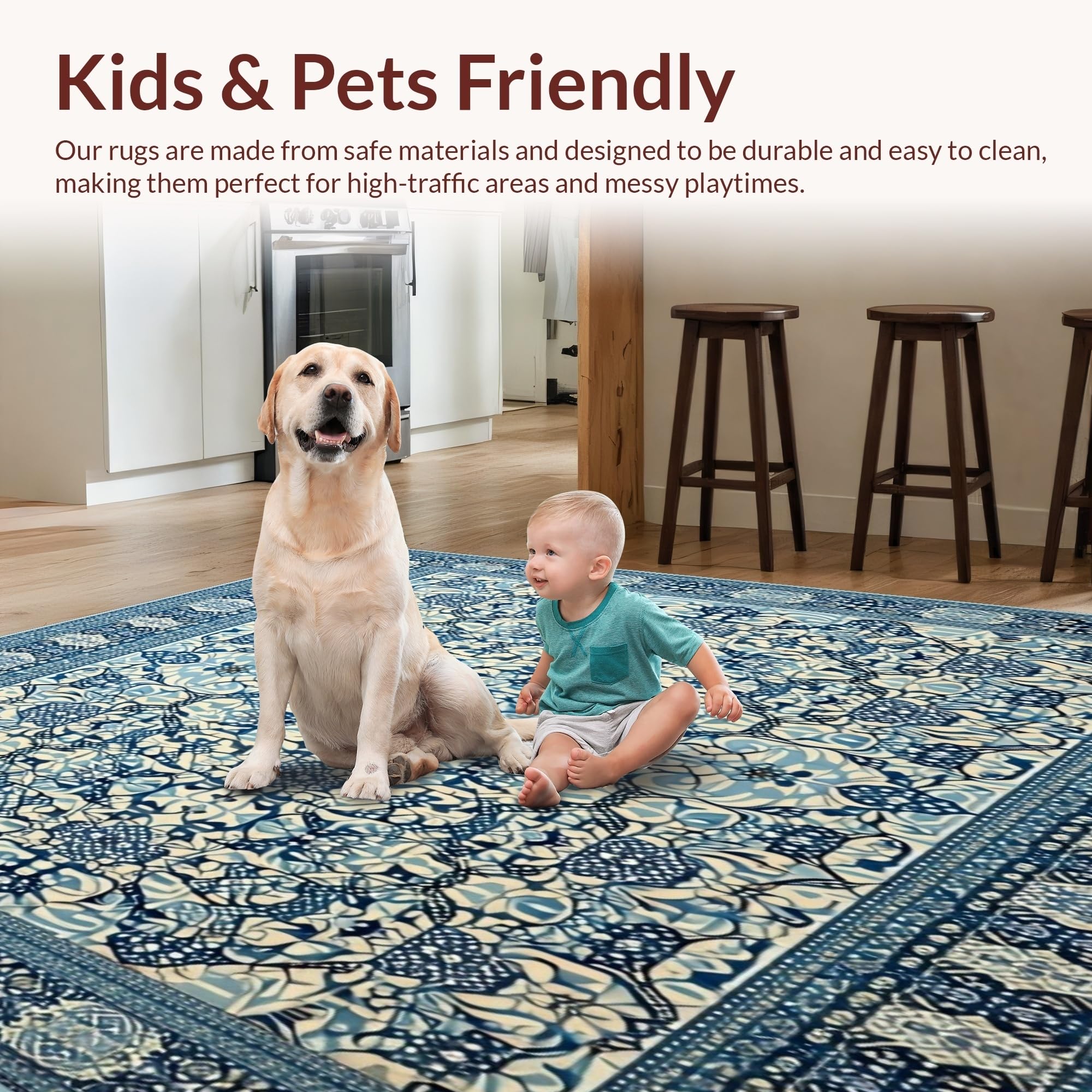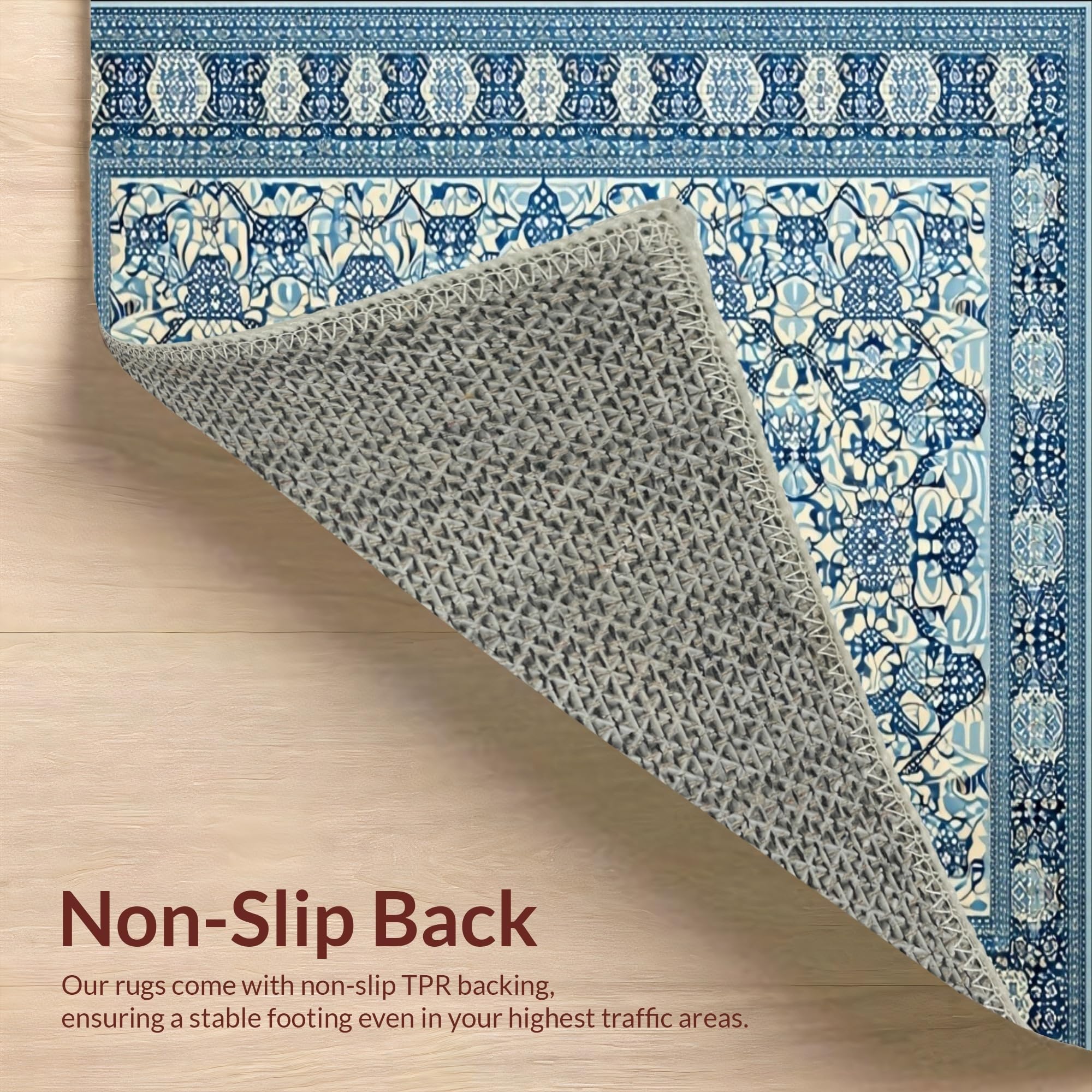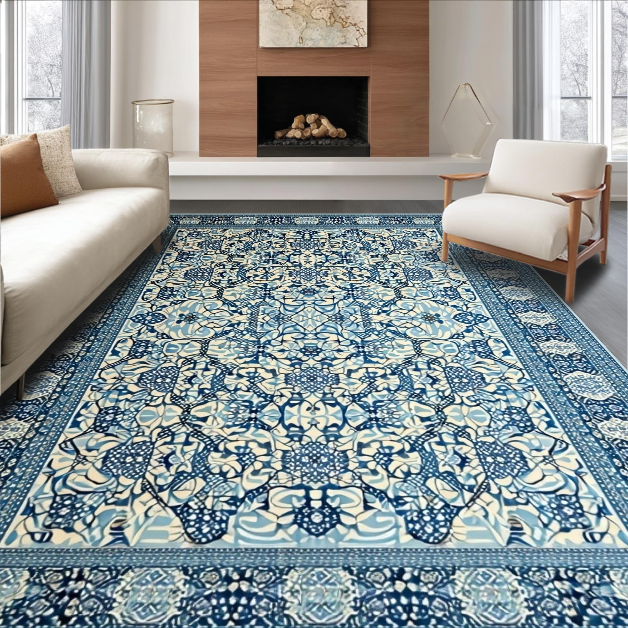 Ultra Soft Area Rug, Non Slip, Stain Resistant, Washable Area Rugs for Living Room, Bedroom, Chic Area with Striking Blue and Beige Abstract Motifs for Spaces(Blue) Overview:
