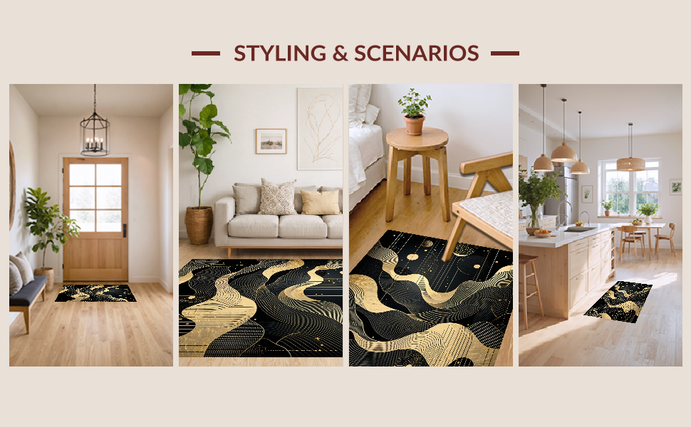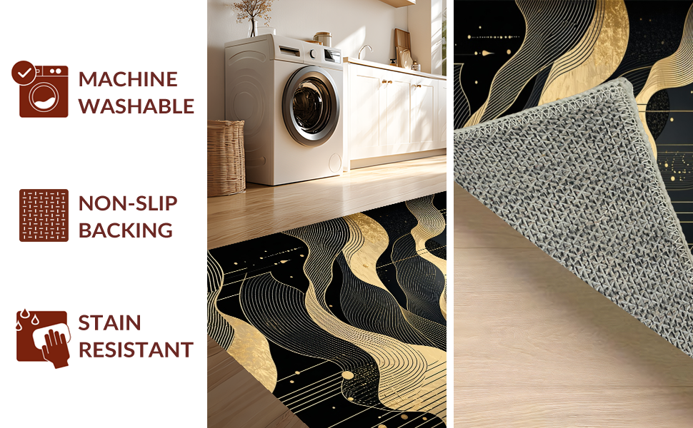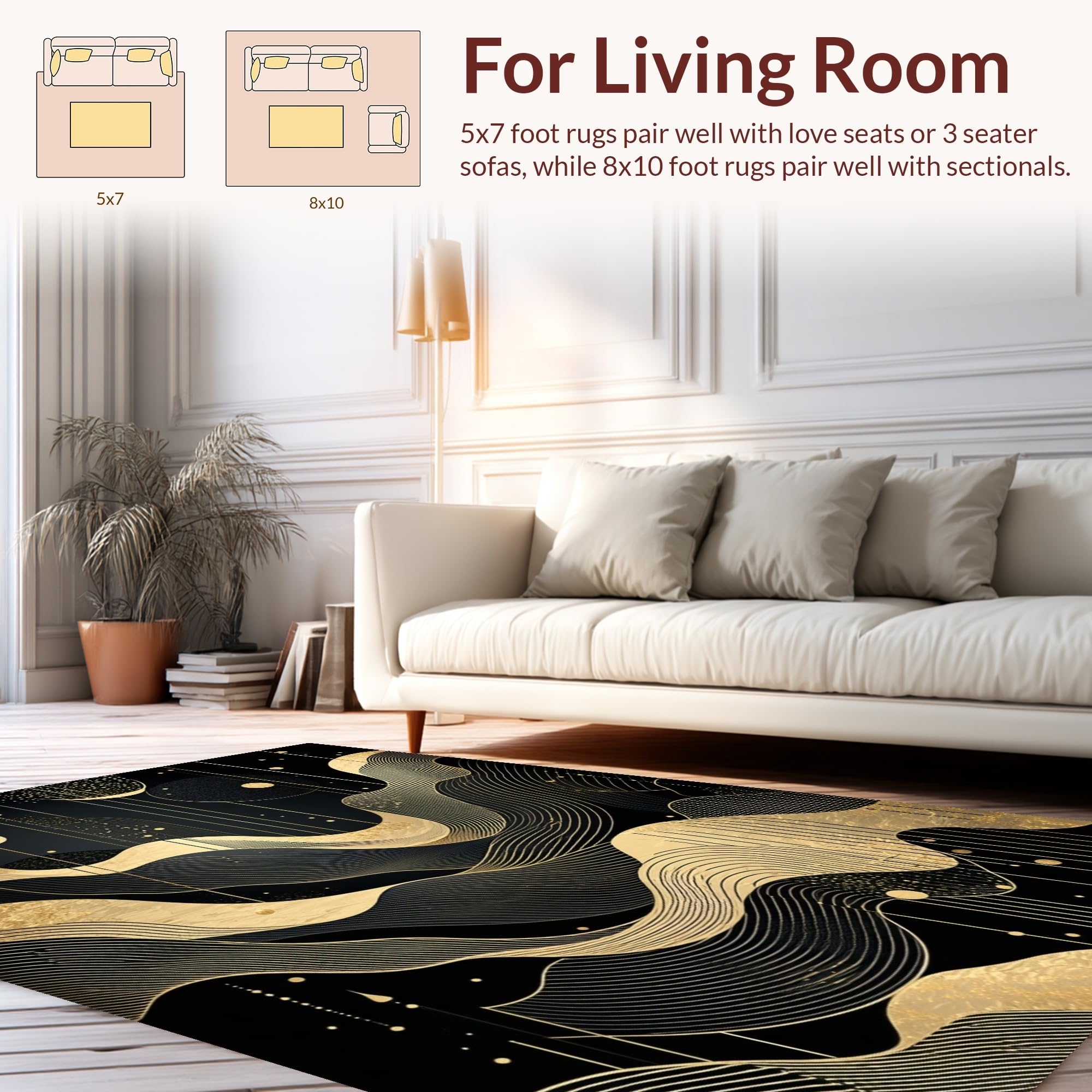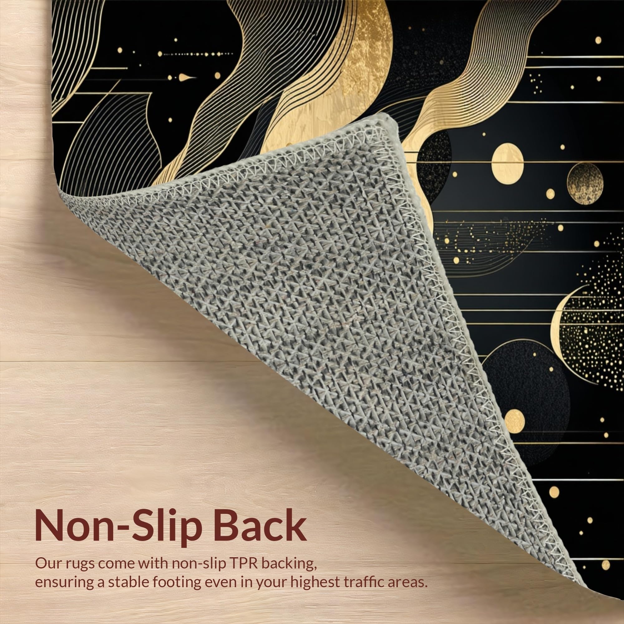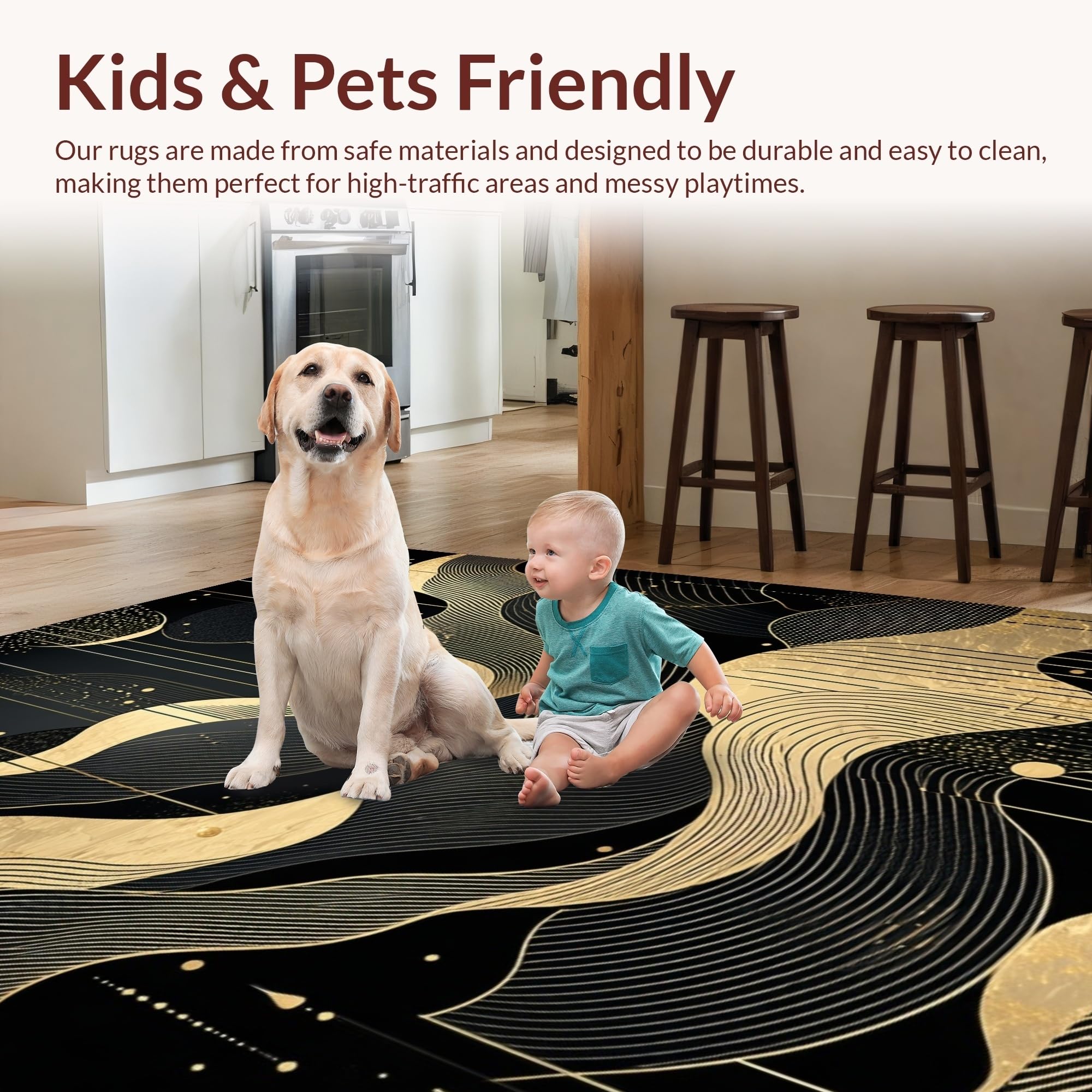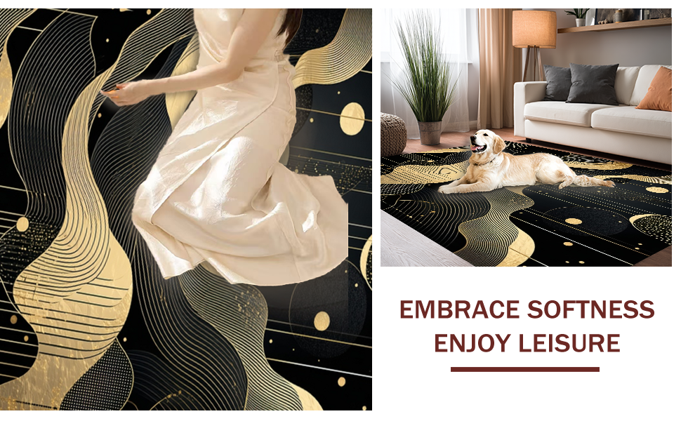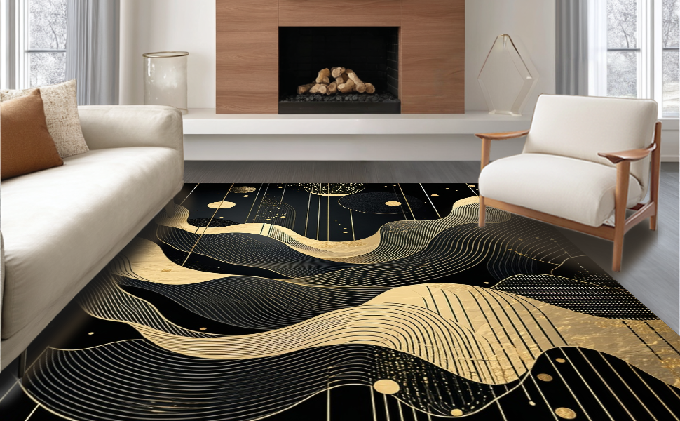 Ultra Soft Area Rug, Non Slip, Stain Resistant, Washable Area Rugs for Living Room, Bedroom, Chic Art Deco Stylized Patterns(Black) Overview:
